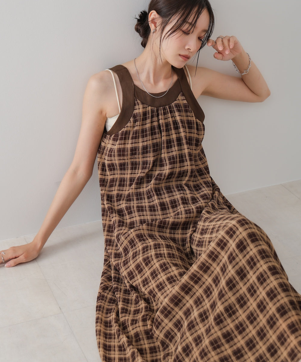 Autumn 新色!<JP> 復古可愛~細帶格紋/素色修腰雙蝴蝶結OPS* 7色入 <預購>