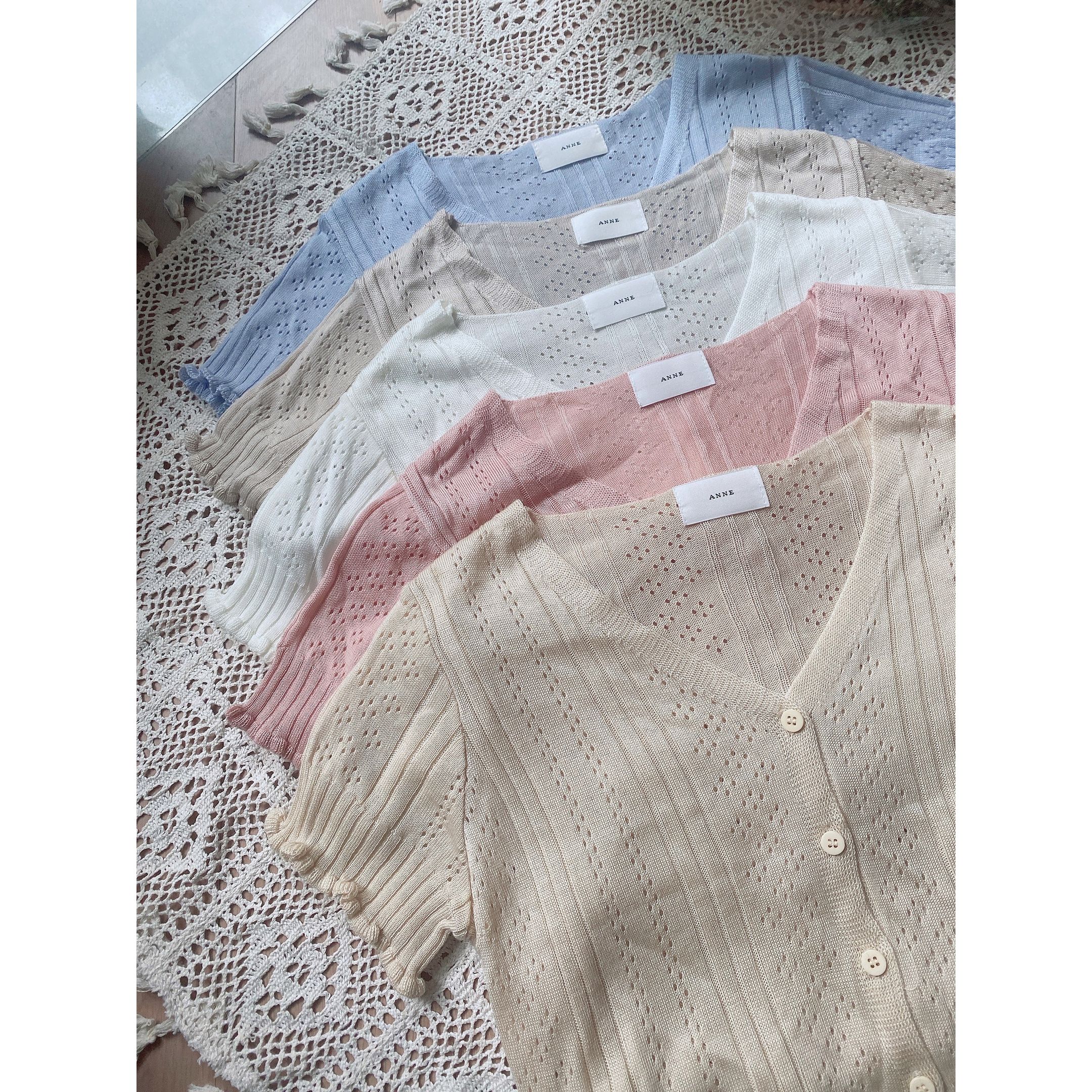 <最後現貨,售完不補♡> 🏷 Pastel捲邊鏤空排釦Top *5色入yellow/pink/cream/latte/skyblue 滿滿夏日粉色彩 + 細節感 ( ⸝⸝•ᴗ•⸝⸝ )੭⁾⁾ 質料柔軟 觸感超好~而且穿著很透氣呢!! 2way穿法:全釦鈕可以當上衣; 開胸可以當預小外套 顏值高整體很高CP!! 無論顏色還是設計都很減齡♡ 加上捲捲邊的點綴 更顯輕鬆自然~:) 日常穿搭必備!! 𝖲𝗂𝗓𝖾 𝖽𝖾𝗍𝖺𝗂𝗅𝗌. 𝖲𝗁𝗈𝗎𝗅𝖽𝖾𝗋: 39𝖼𝗆 𝖢𝗁𝖾𝗌𝗍 𝗐𝗂𝖽𝗍𝗁: 49-62𝖼𝗆 𝖲𝗅𝖾𝖾𝗏𝖾: 17𝖼𝗆 𝖫𝖾𝗇𝗀𝗍𝗁: 44𝖼𝗆 𝖬𝗈𝖽𝖾𝗅'𝗌 𝗁𝖾𝗂𝗀𝗁𝗍: 162𝖼𝗆 𝖬𝖺𝖽𝖾 𝗂𝗇 𝖪𝗈𝗋𝖾𝖺♥︎ 根據顯示器的分辨率和亮度,實物的顏色可能會有些許差距。 請拉到最後參考最接近實物顏色圖! · · · · · · · · · ✿ · · · · · · · · · *有關商品外觀 -不同電腦或電話顯示顏色不同,或有色差。加上拍攝時燈光的原因,如實物顏色有所差異屬正常情況。所有商品的顏色皆以實物為準。 -商品不會是100%完美的。我們也不能保証每一件商品都如閣下所想的完美,部份商品可能會出現輕微瑕疵,(如極小範圍染到其他布料的顏色、生產時的線頭、輕微脫線、花痕),但都不會影響使用,介意者請勿下單! -如未能接受尺寸略有誤差或輕微色差者,顧客請慎重考慮是否繼續購買。