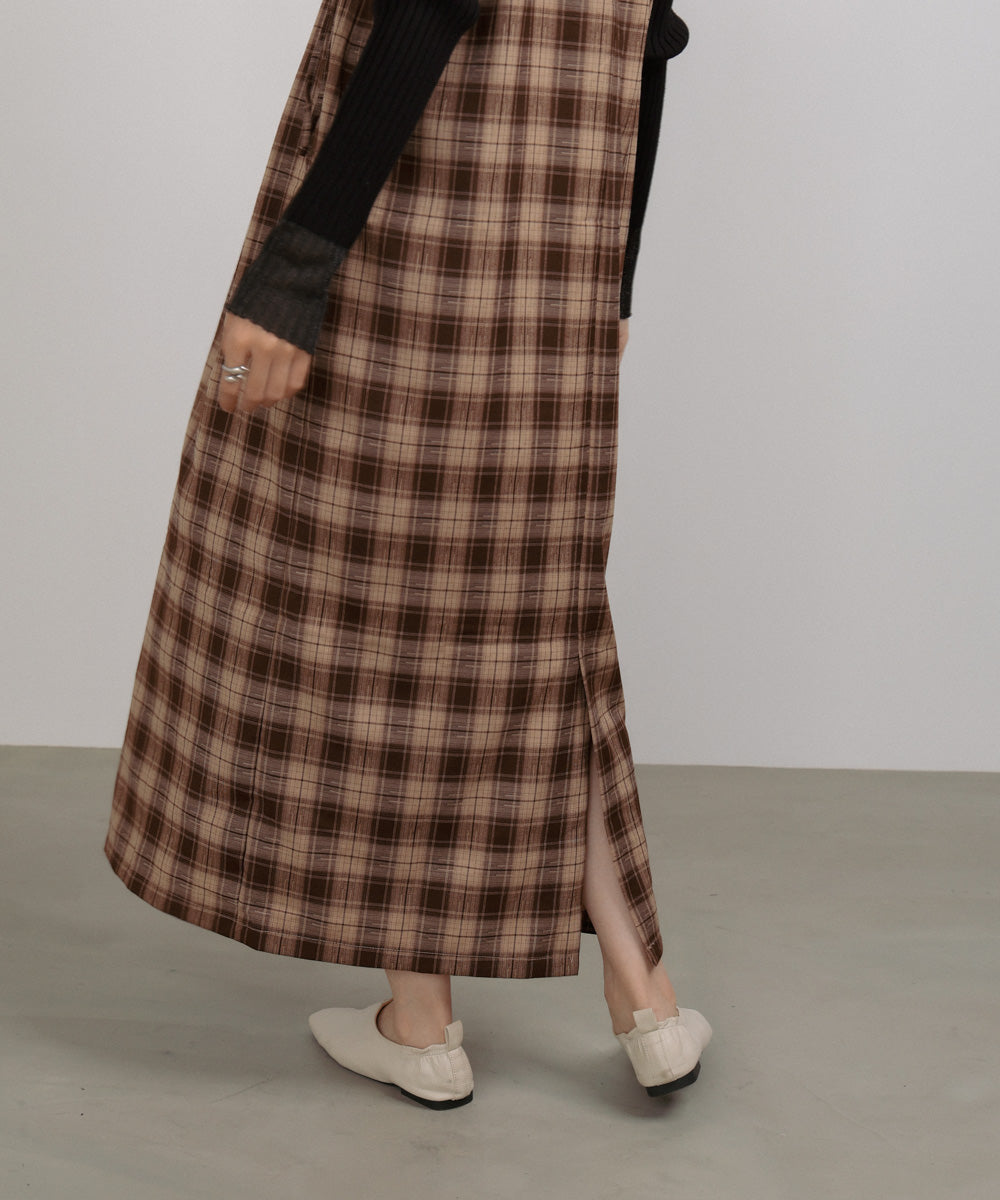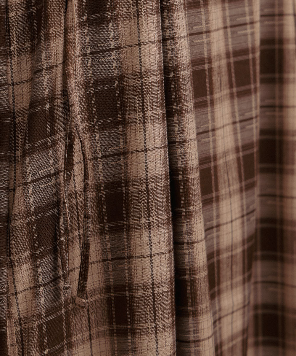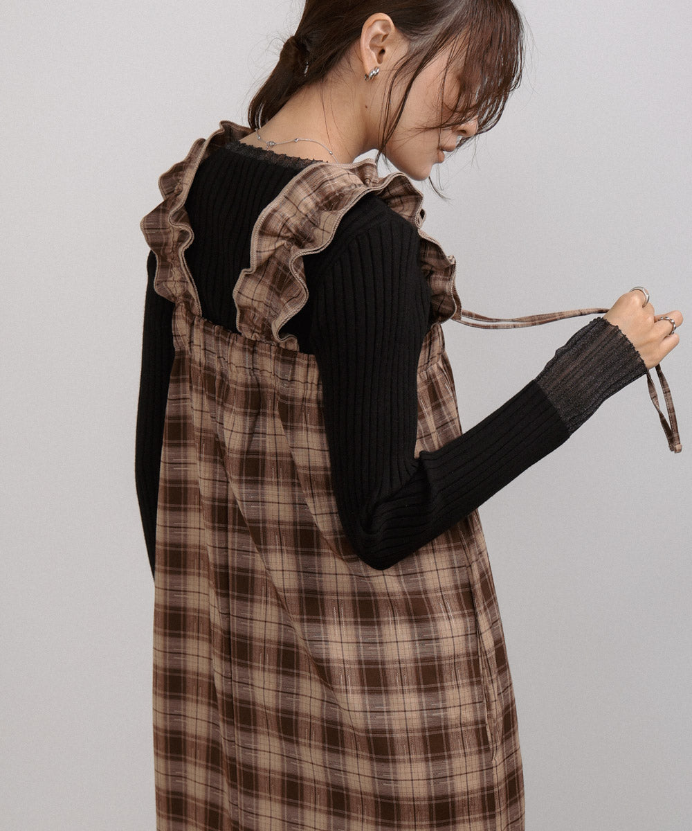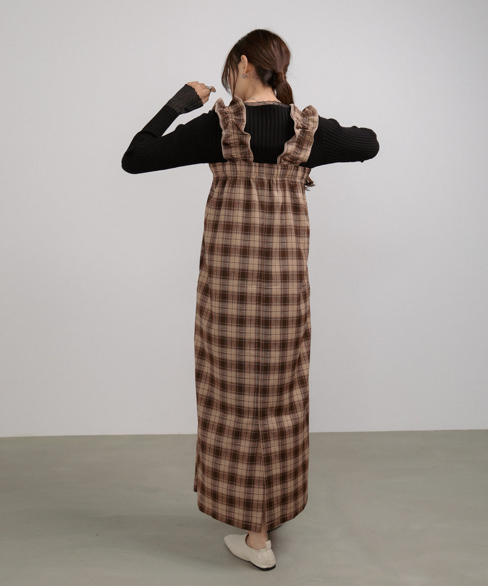 <限量現貨> 木耳邊粗肩束帶格紋OPS - brown