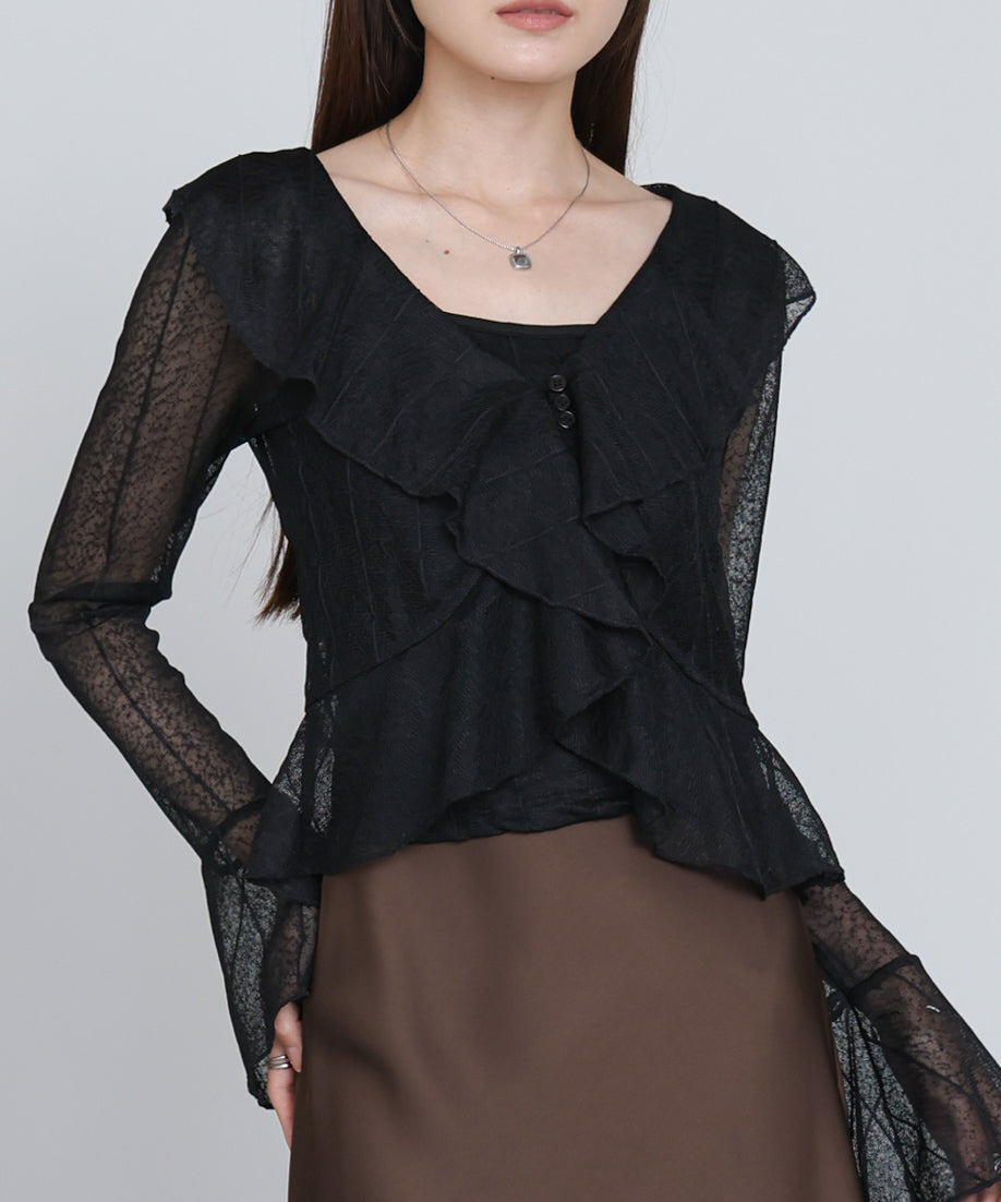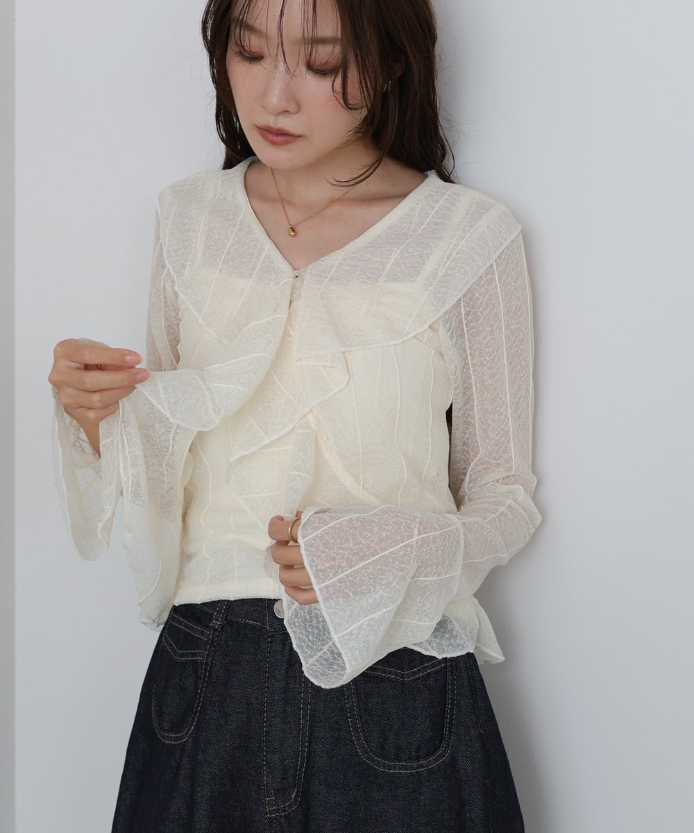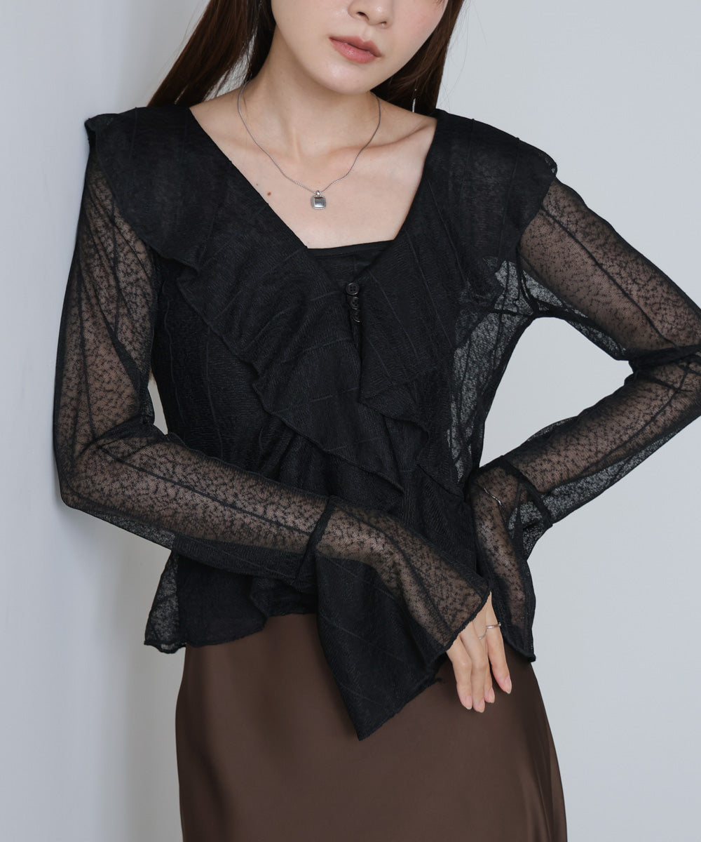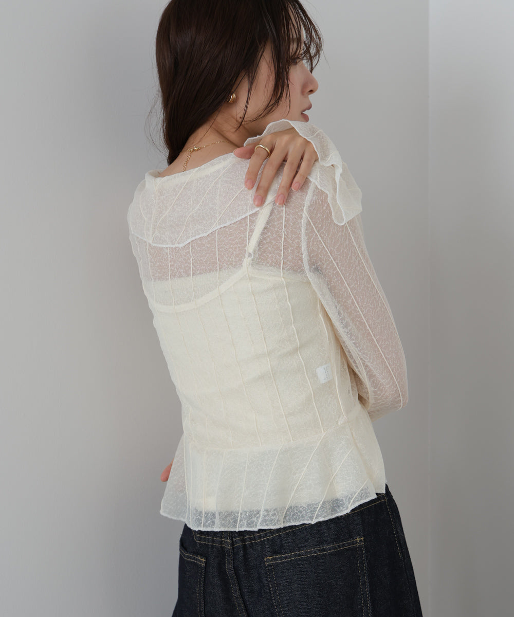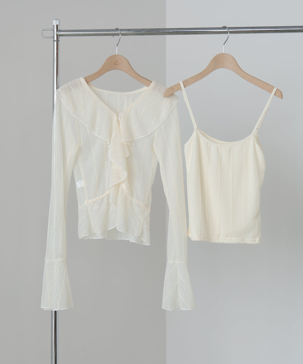 <JP>透明質感荷葉邊Blouse Set (連細帶小背心) *3色入 <預購>