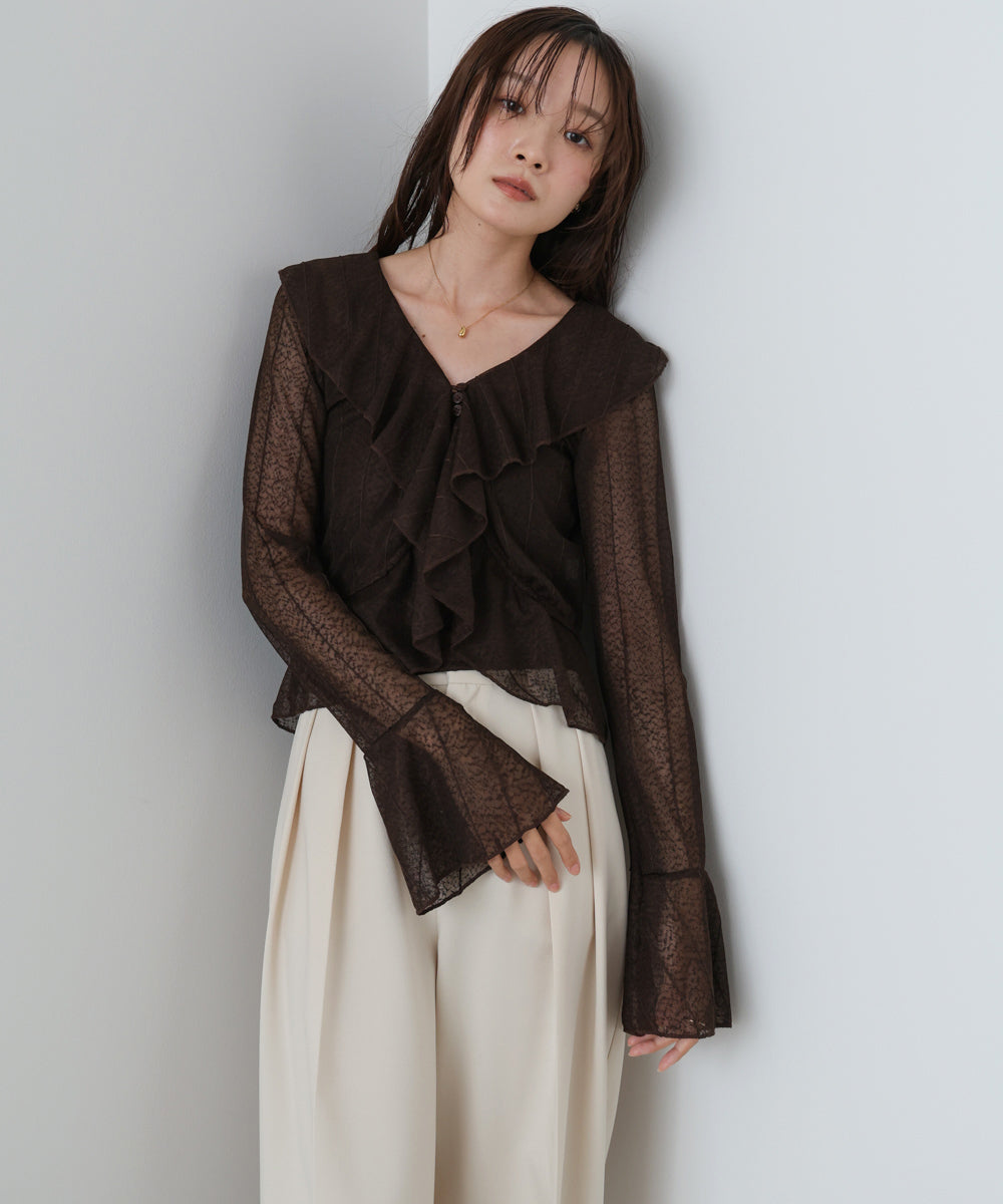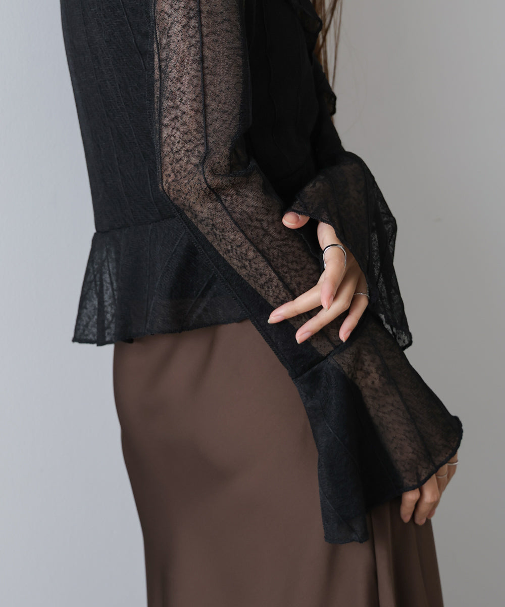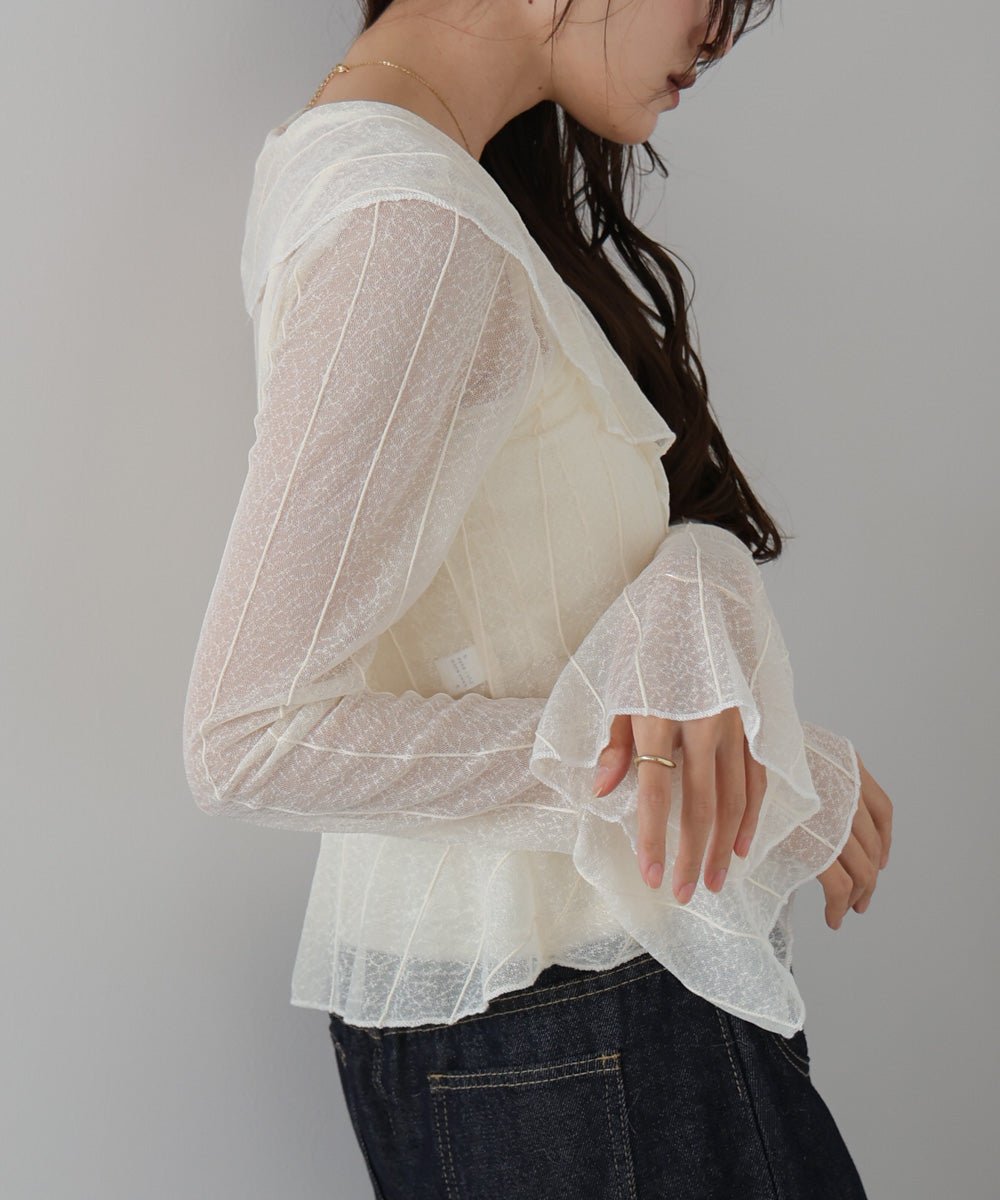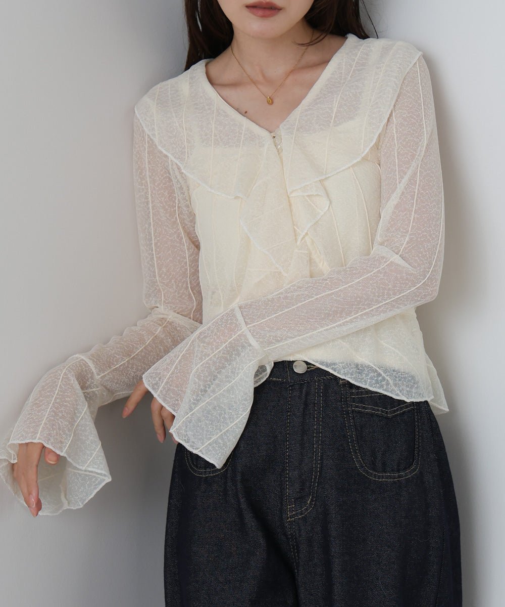 <JP>透明質感荷葉邊Blouse Set (連細帶小背心) *3色入 <預購>