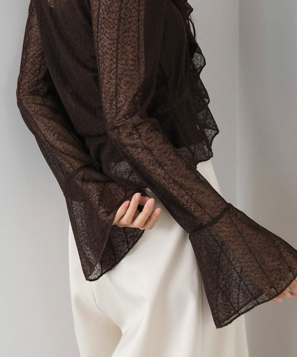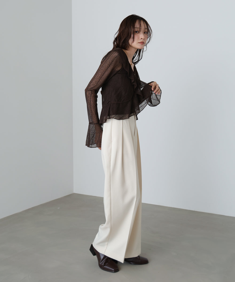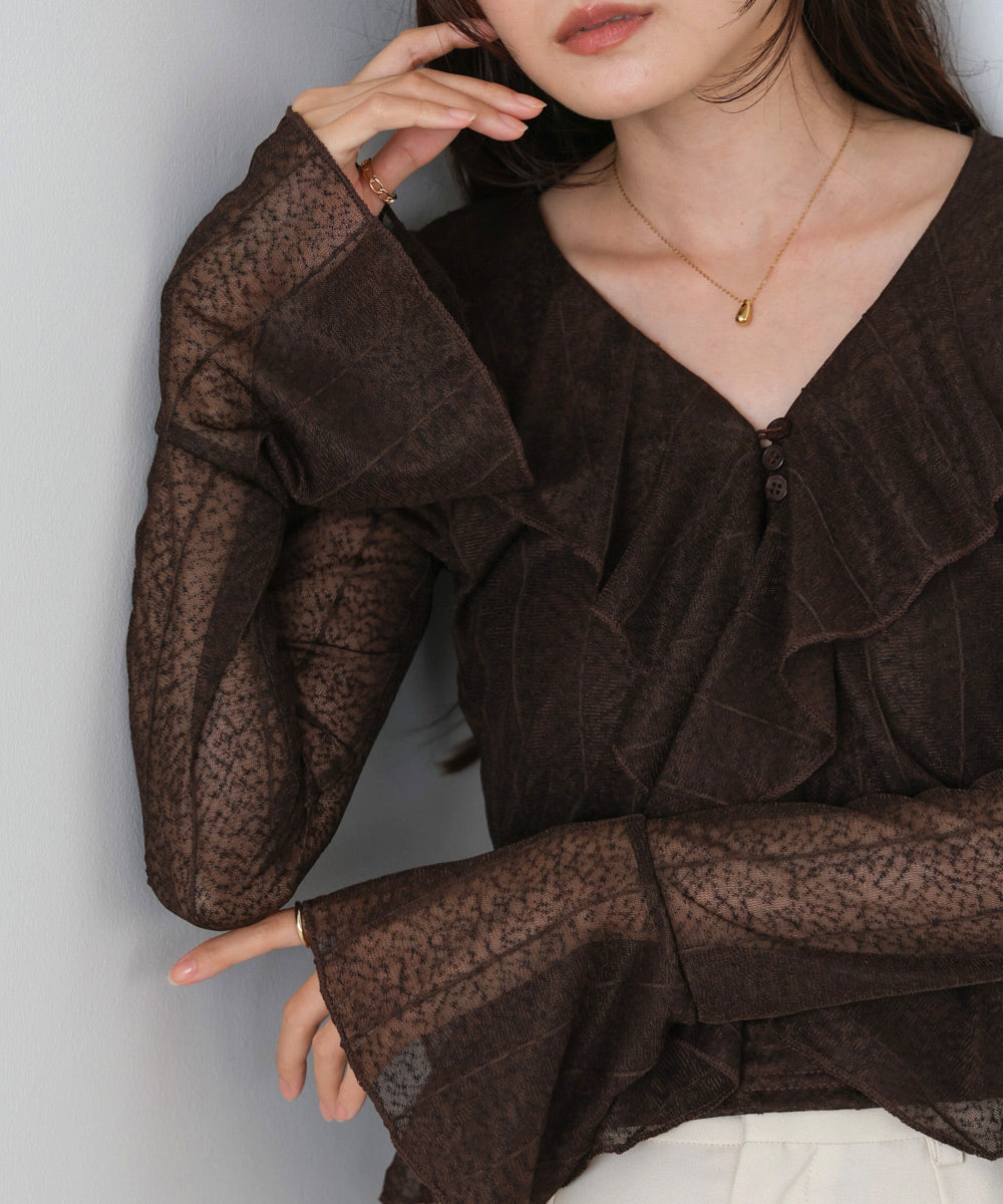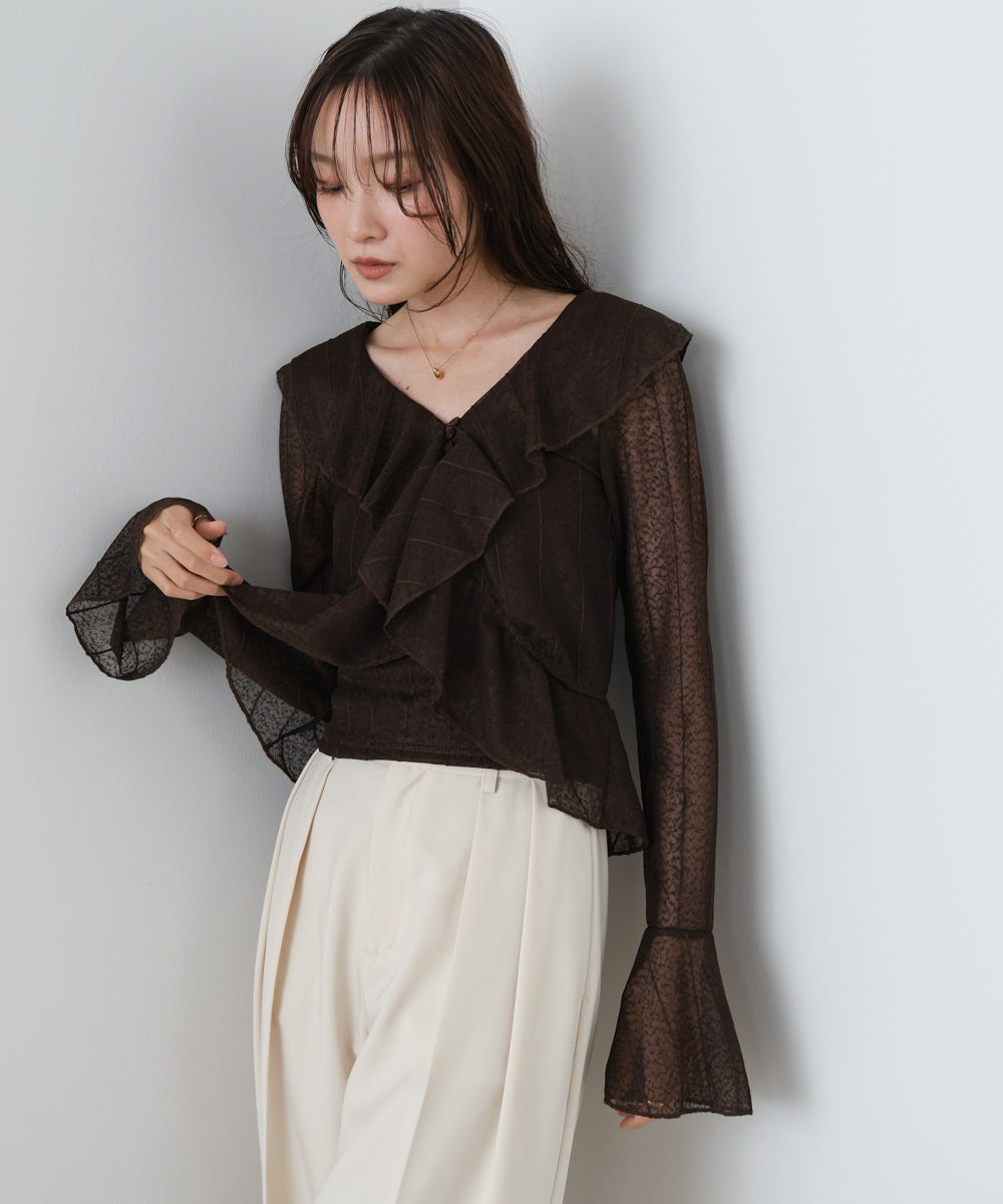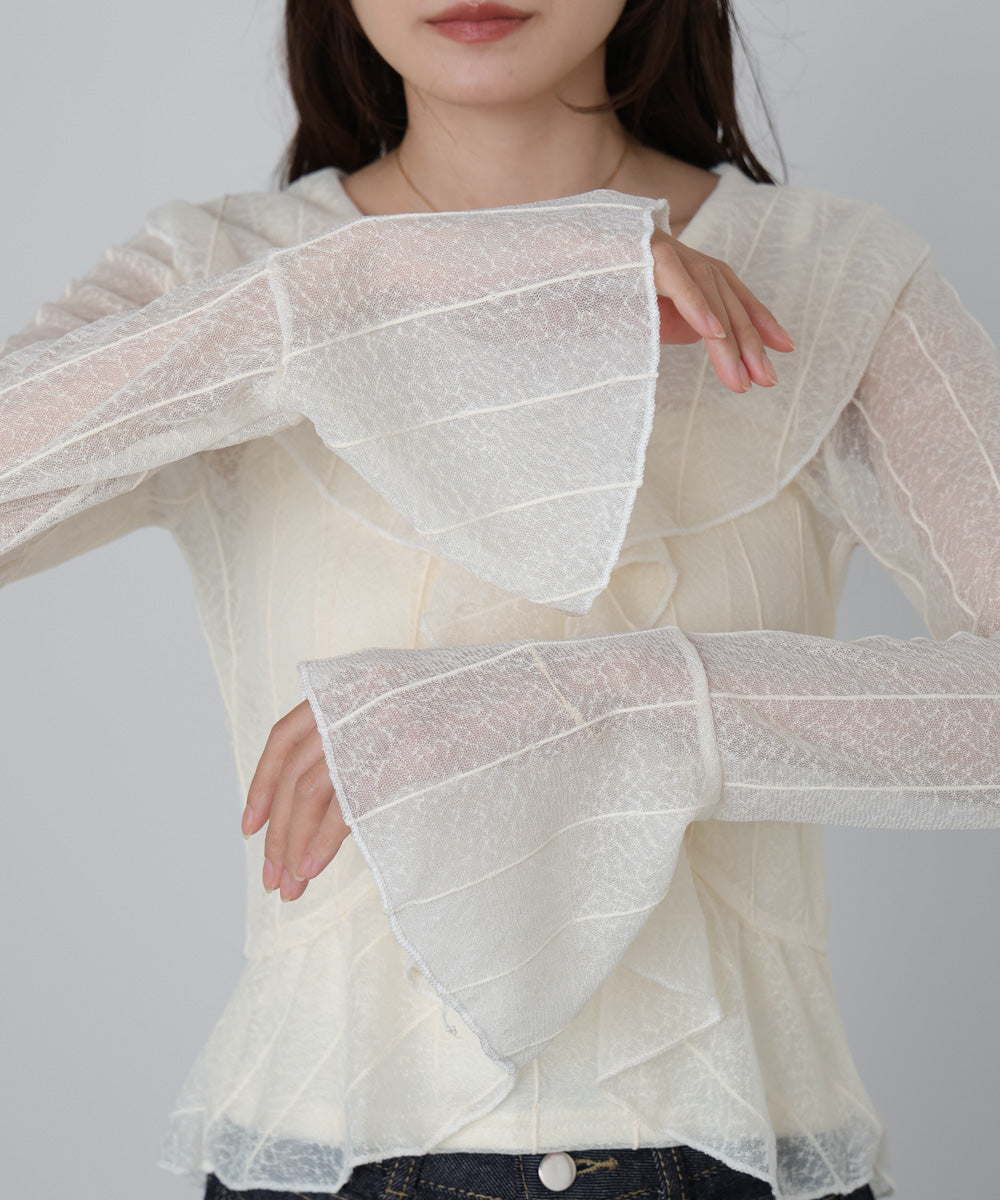 <JP>透明質感荷葉邊Blouse Set (連細帶小背心) *3色入 <預購>