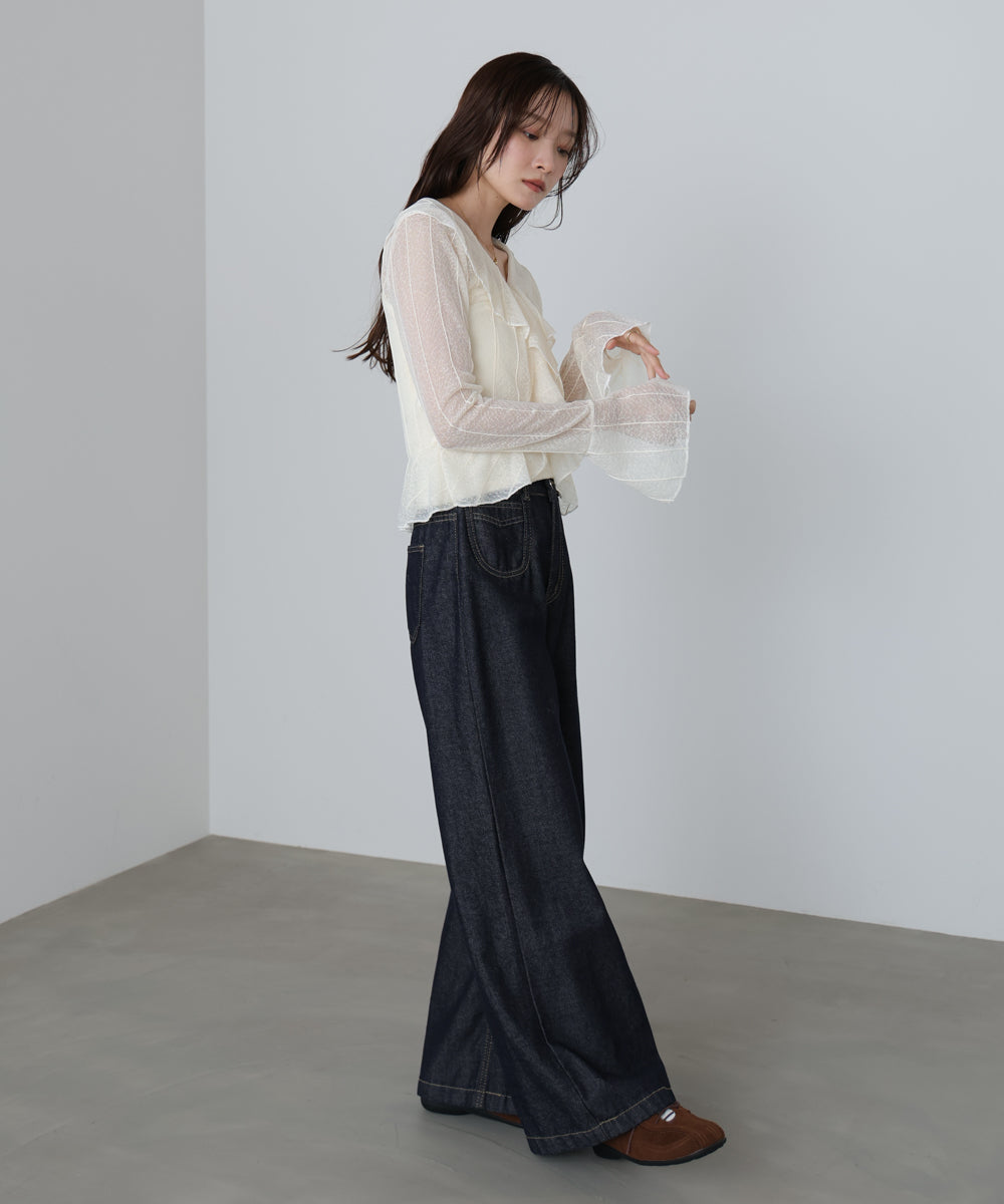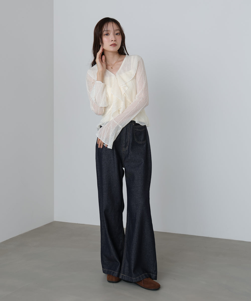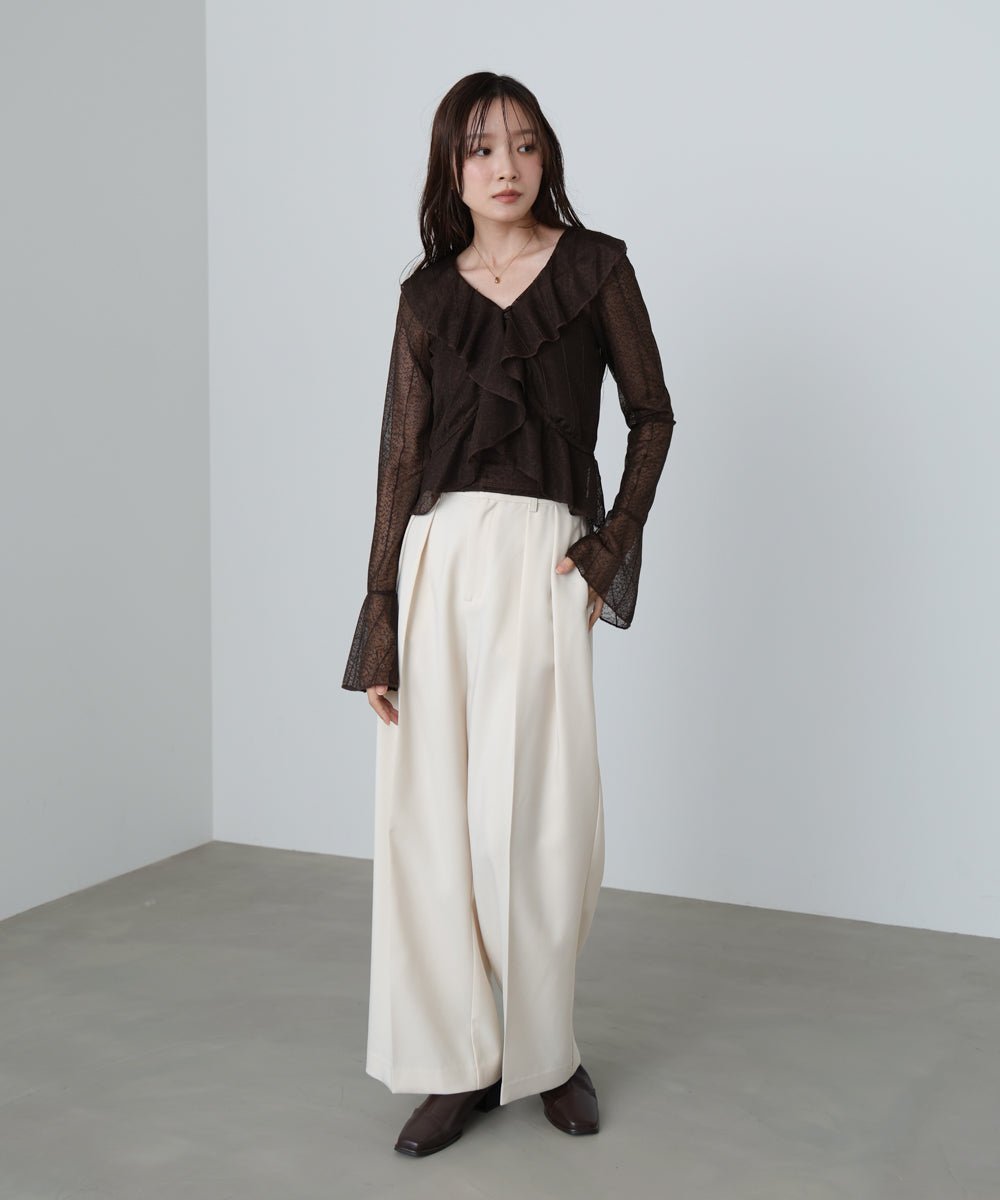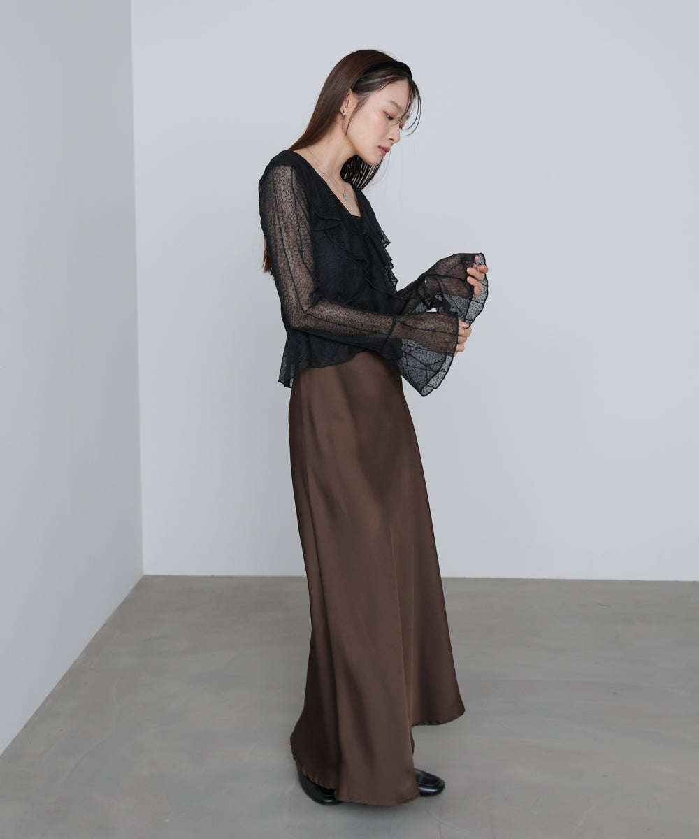 <JP>透明質感荷葉邊Blouse Set (連細帶小背心) *3色入 <預購>
