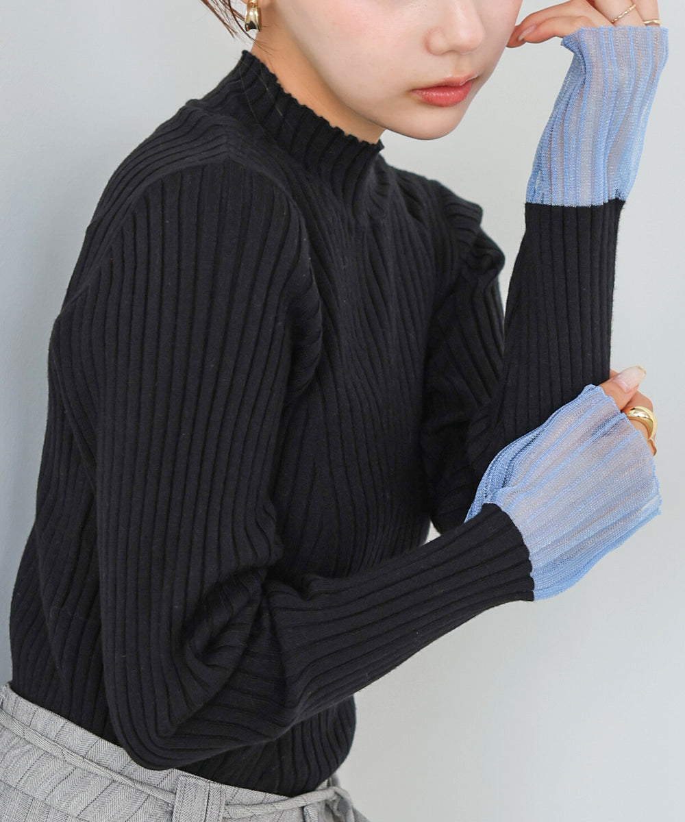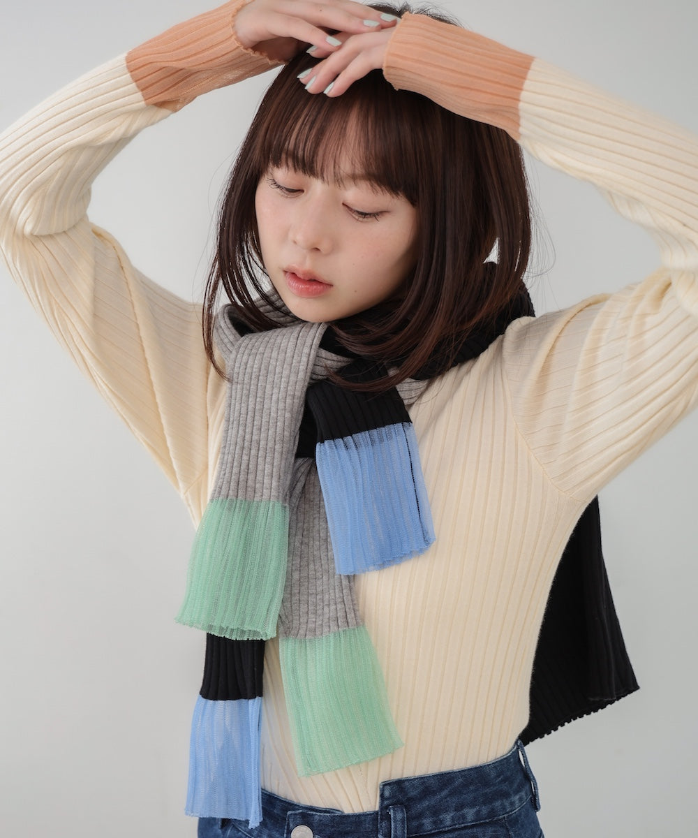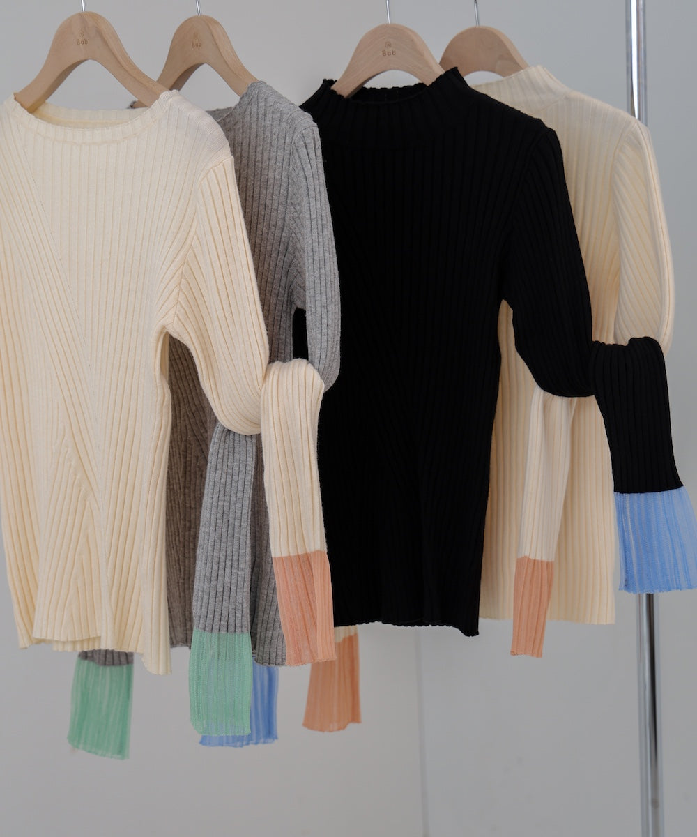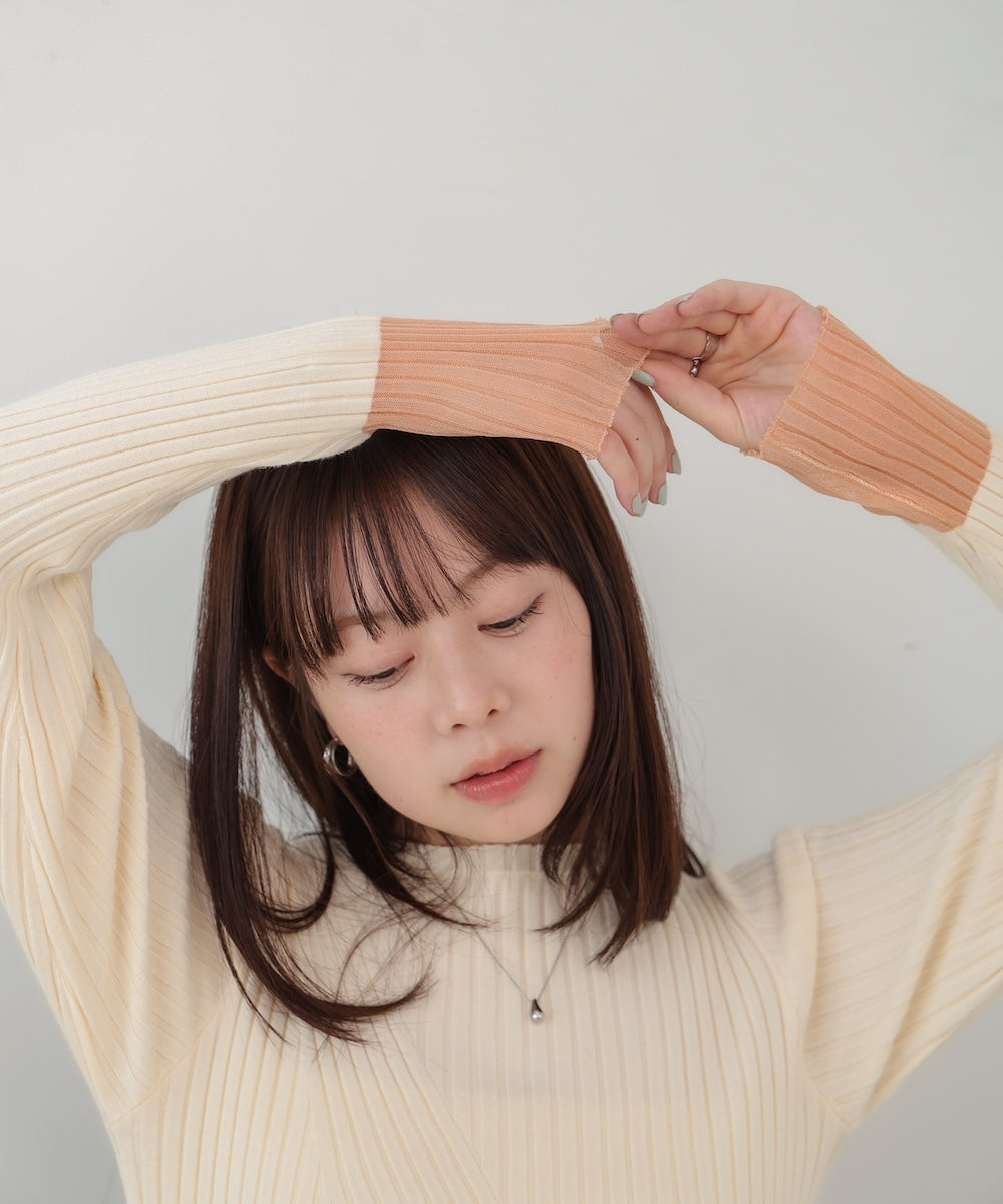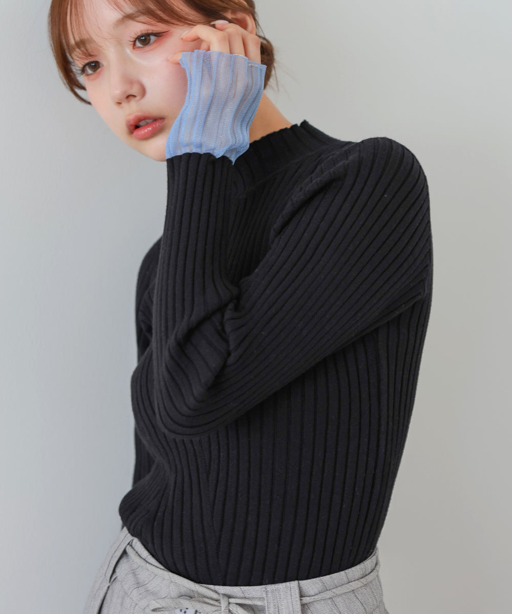 <JP> 拼色ver.! 透明感薄紗拼羅紋針織* 3色入 (圓領/高領) <預購>