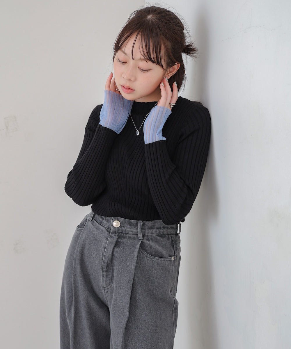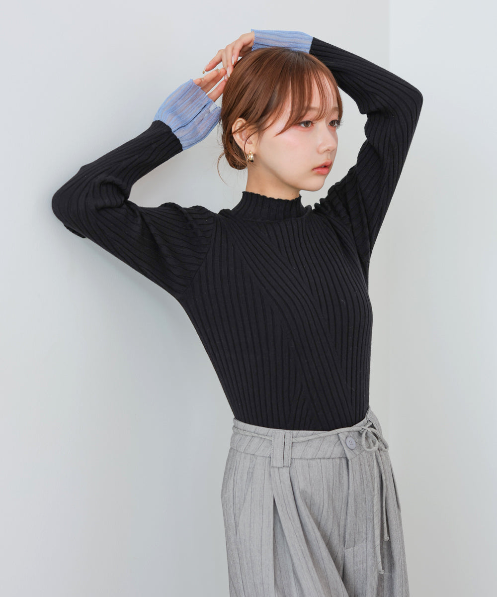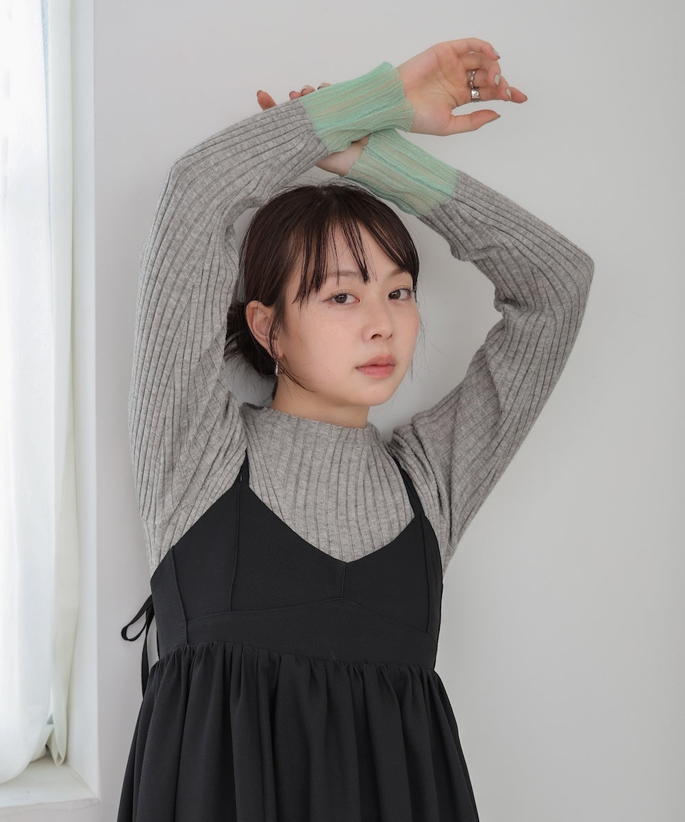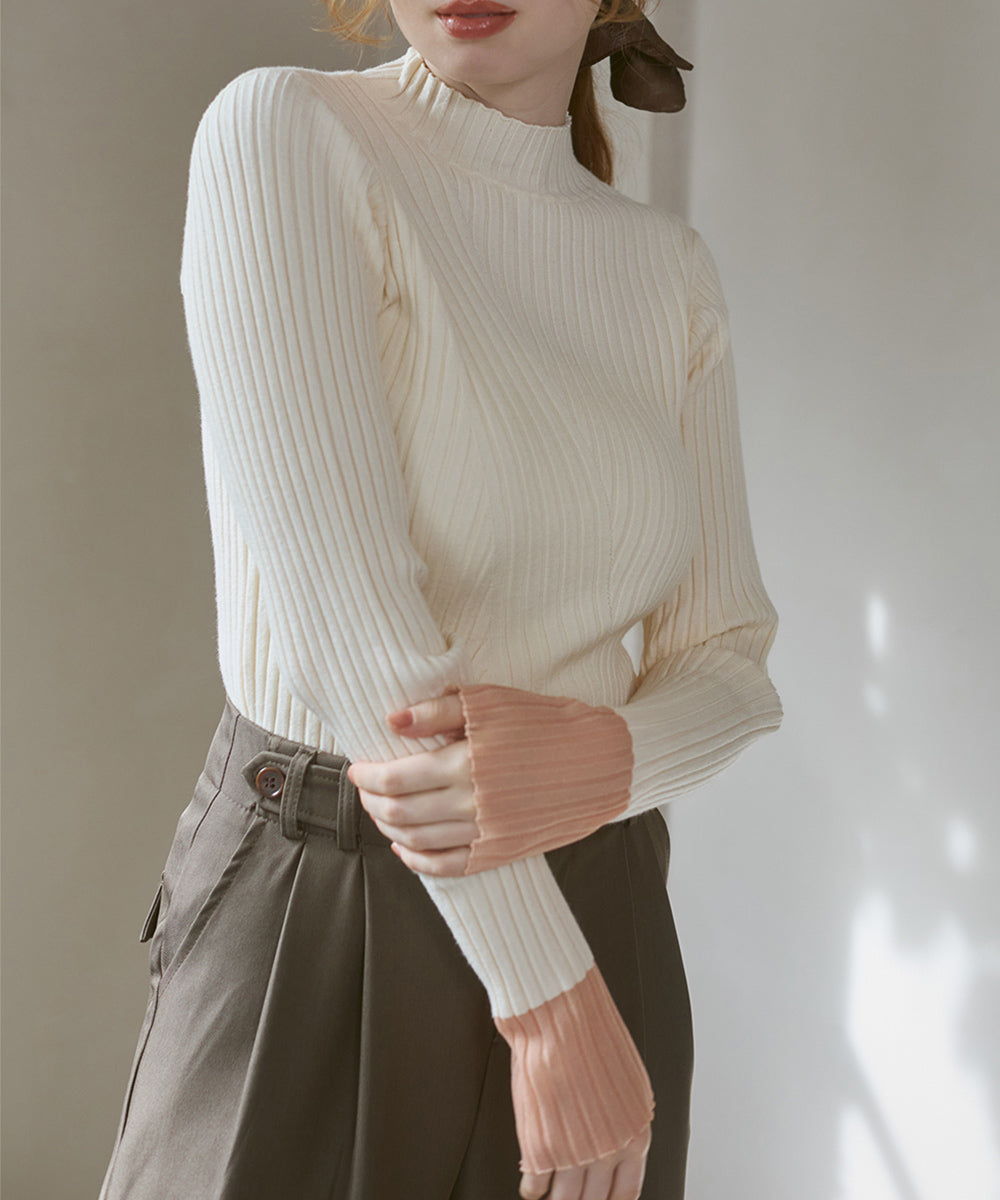 <JP> 拼色ver.! 透明感薄紗拼羅紋針織* 3色入 (圓領/高領) <預購>