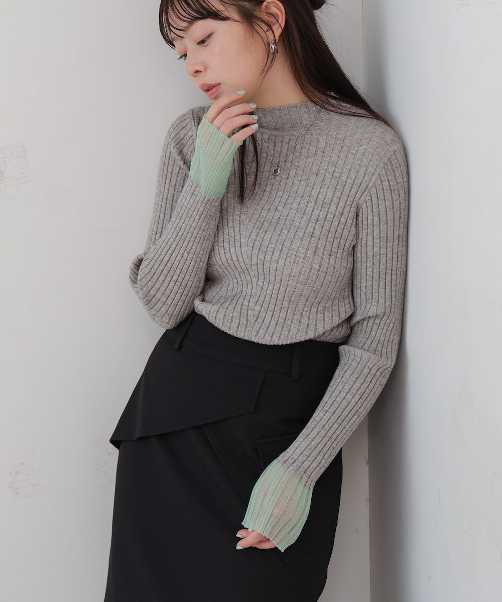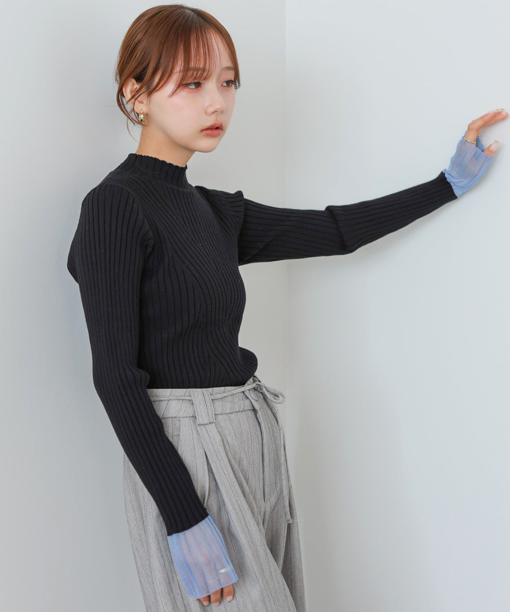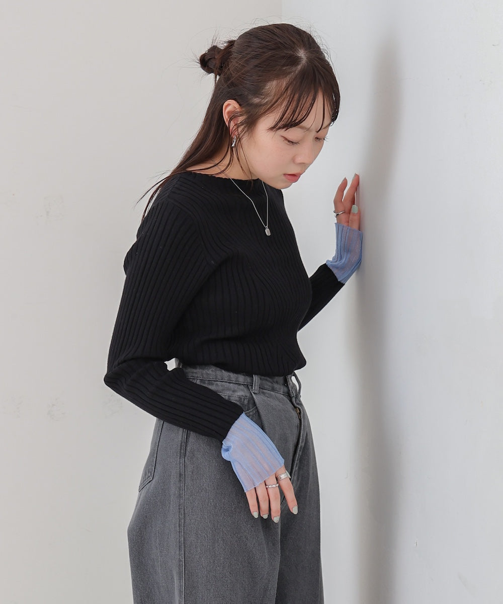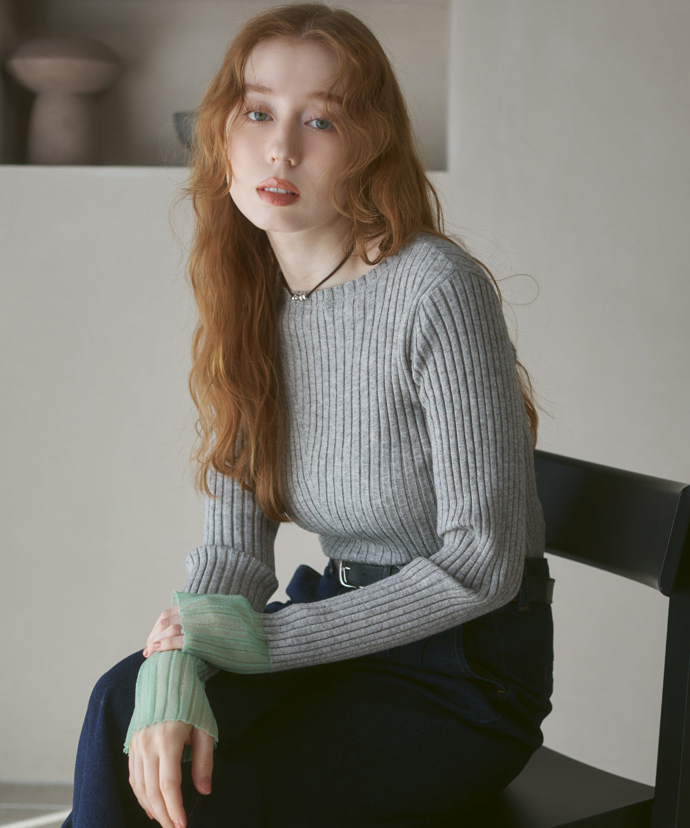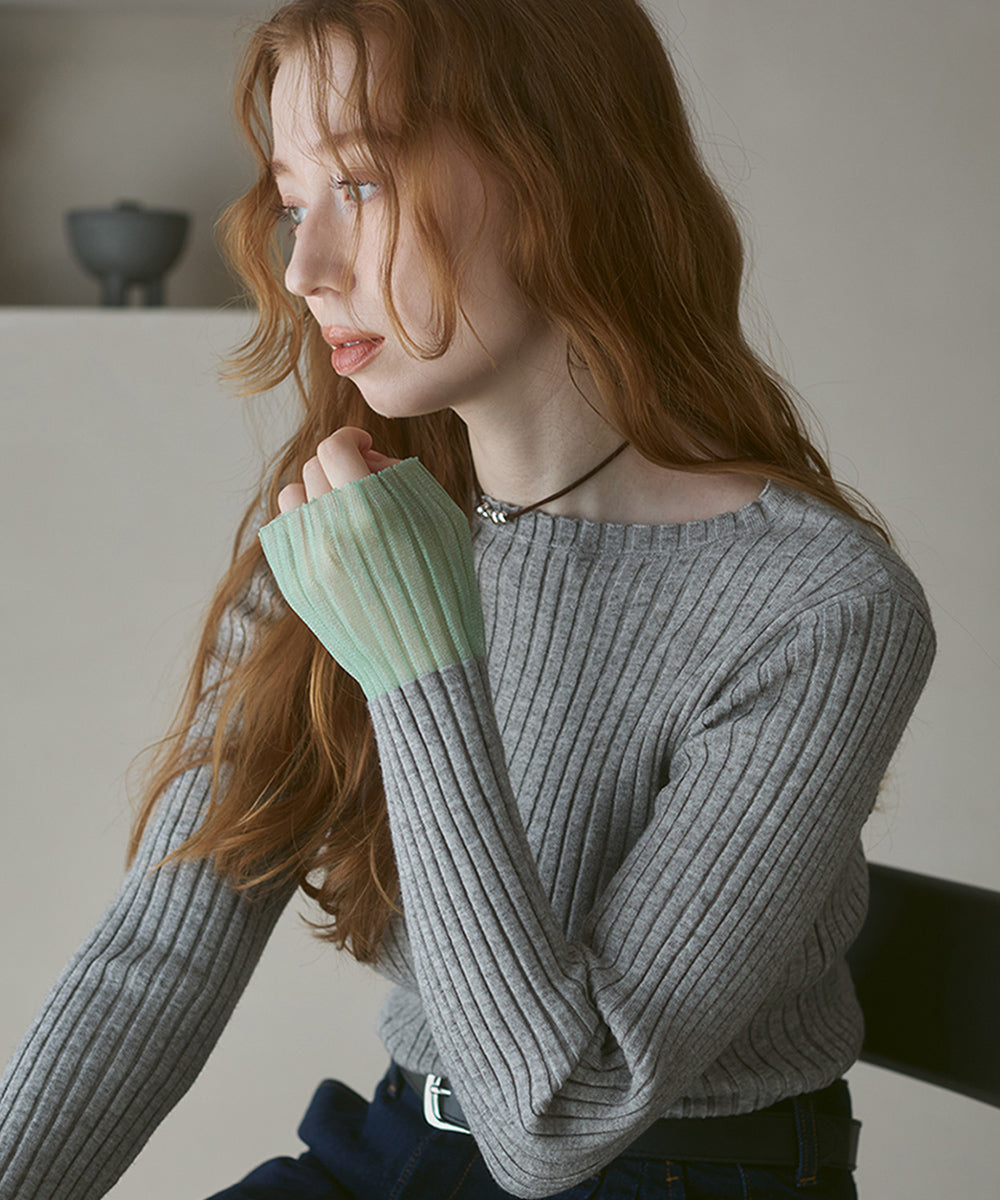 <JP> 拼色ver.! 透明感薄紗拼羅紋針織* 3色入 (圓領/高領) <預購>