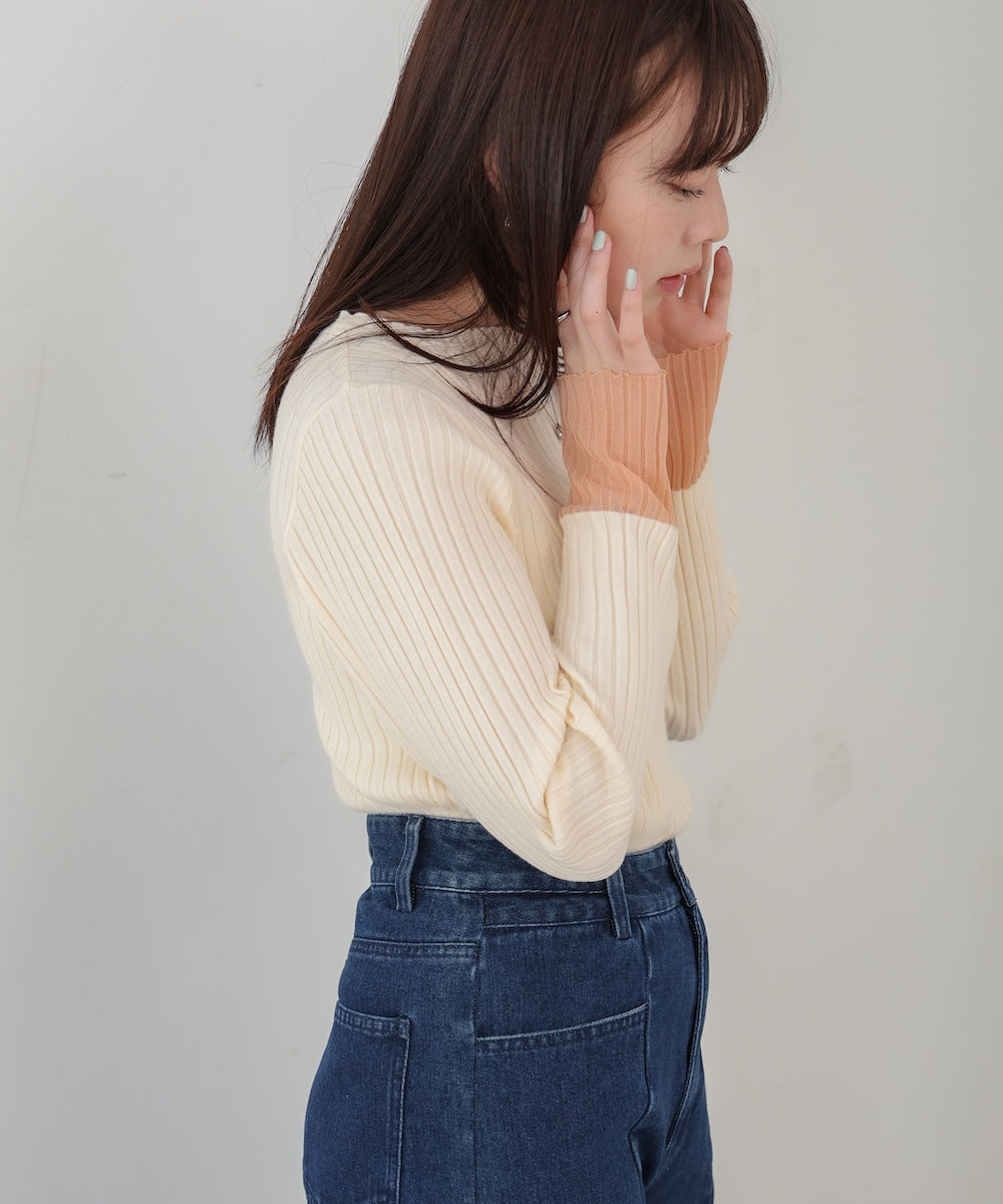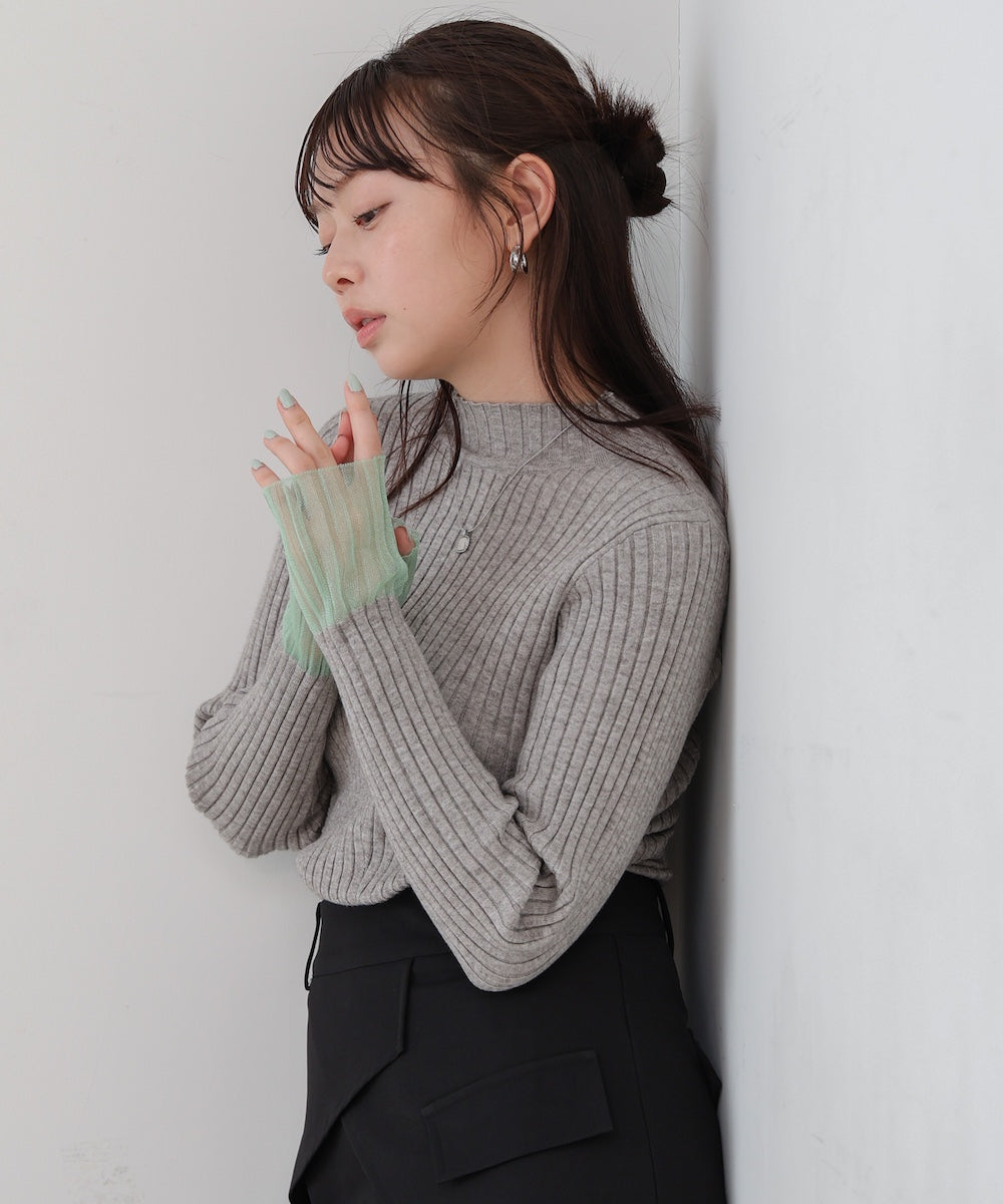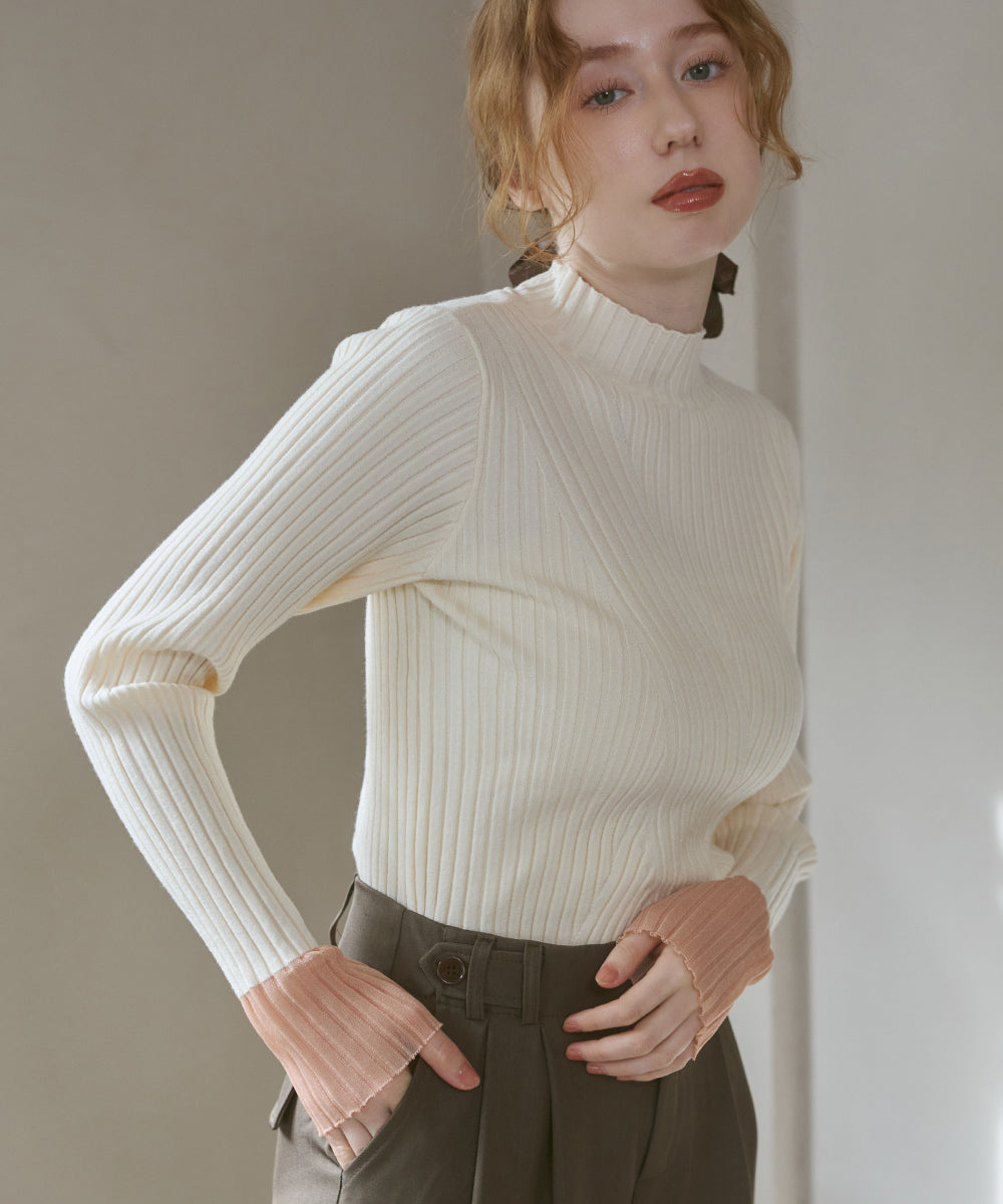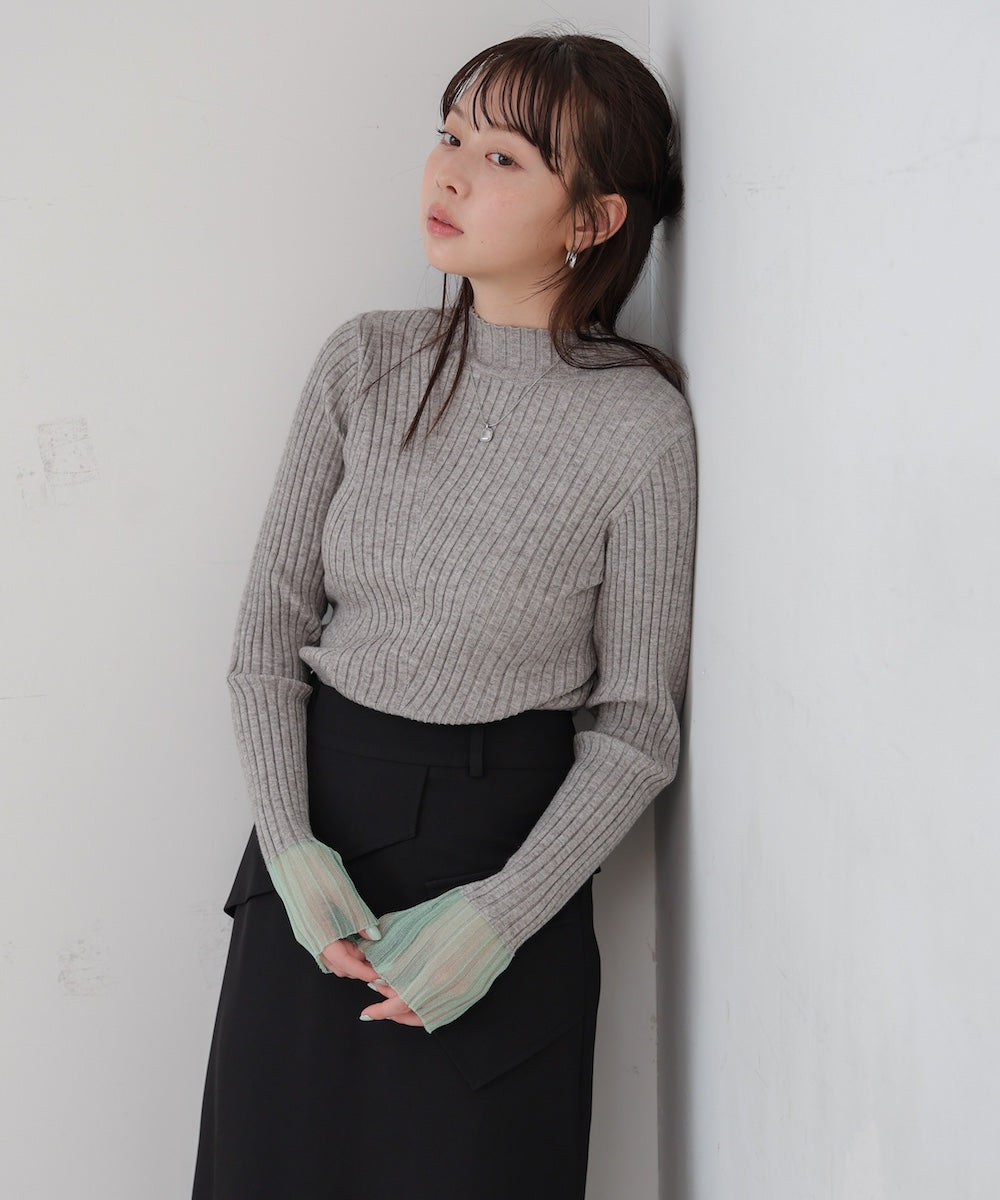 <JP> 拼色ver.! 透明感薄紗拼羅紋針織* 3色入 (圓領/高領) <預購>