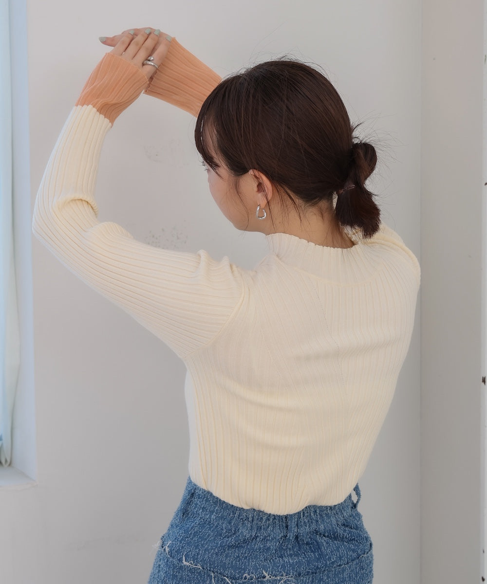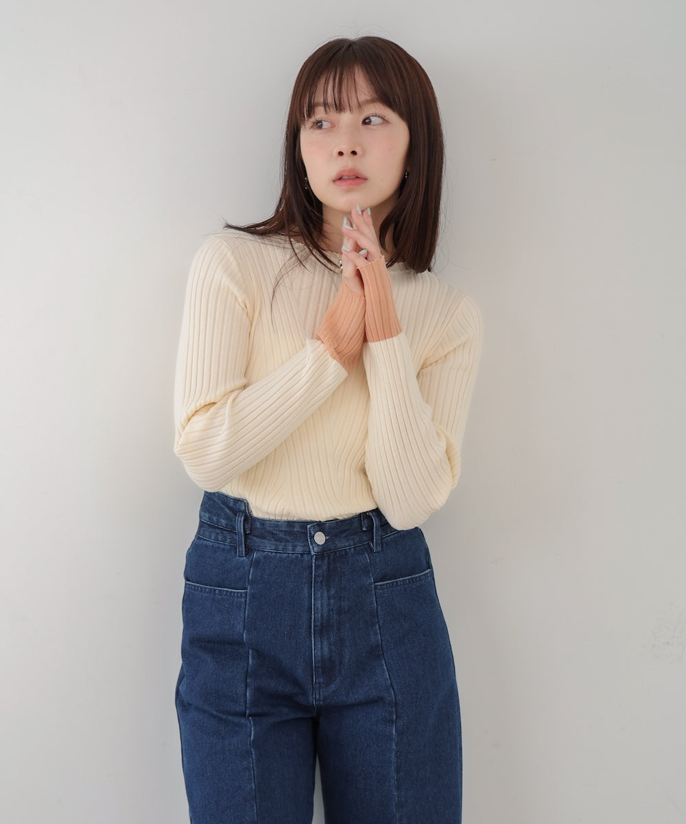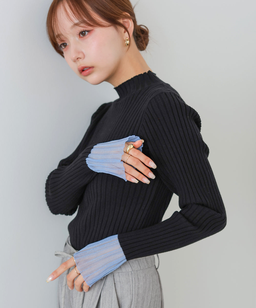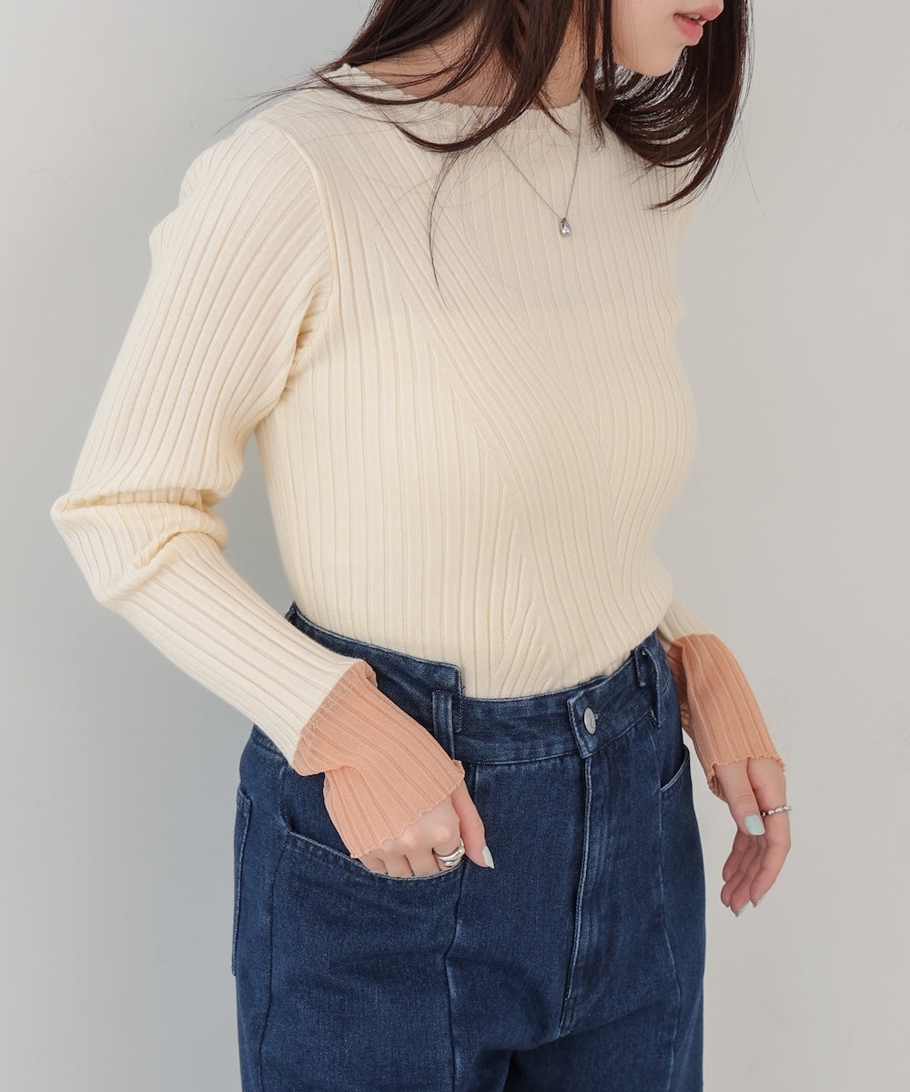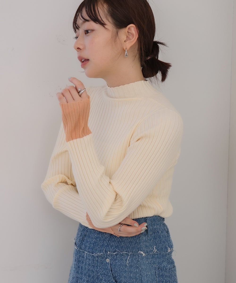 <JP> 拼色ver.! 透明感薄紗拼羅紋針織* 3色入 (圓領/高領) <預購>