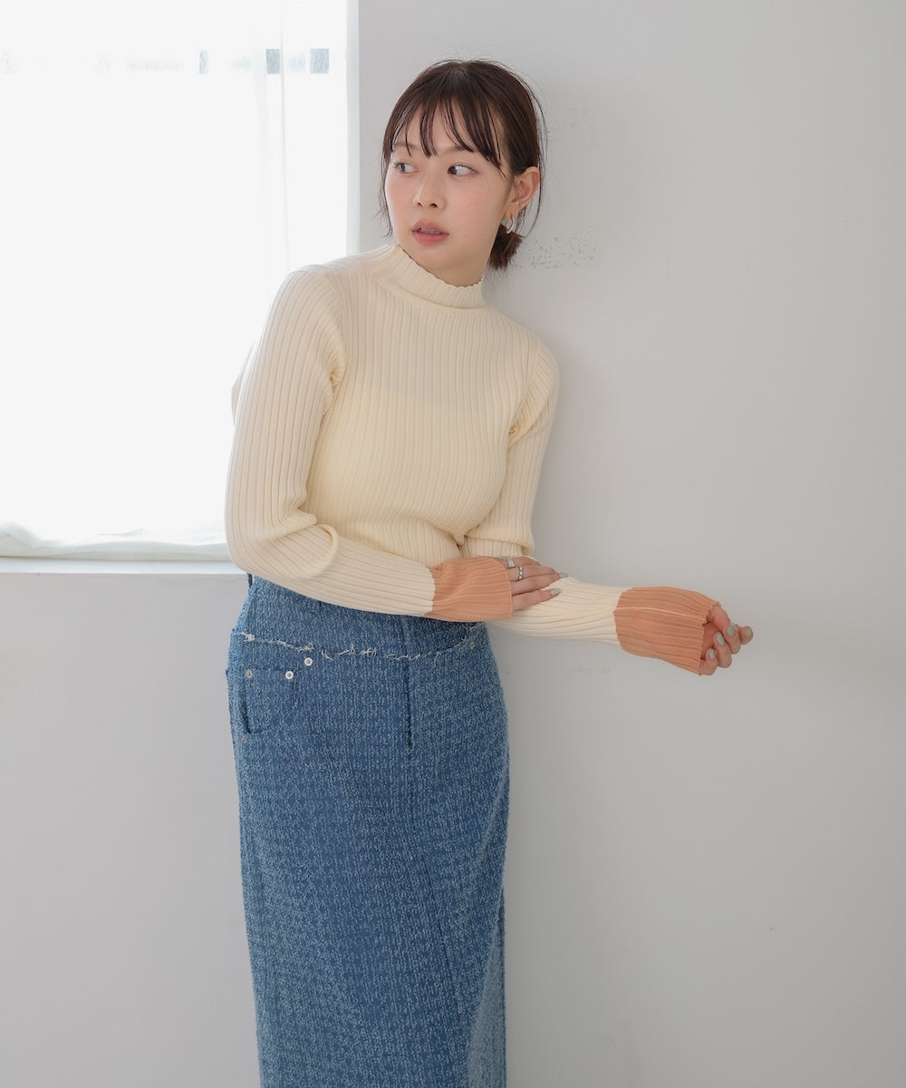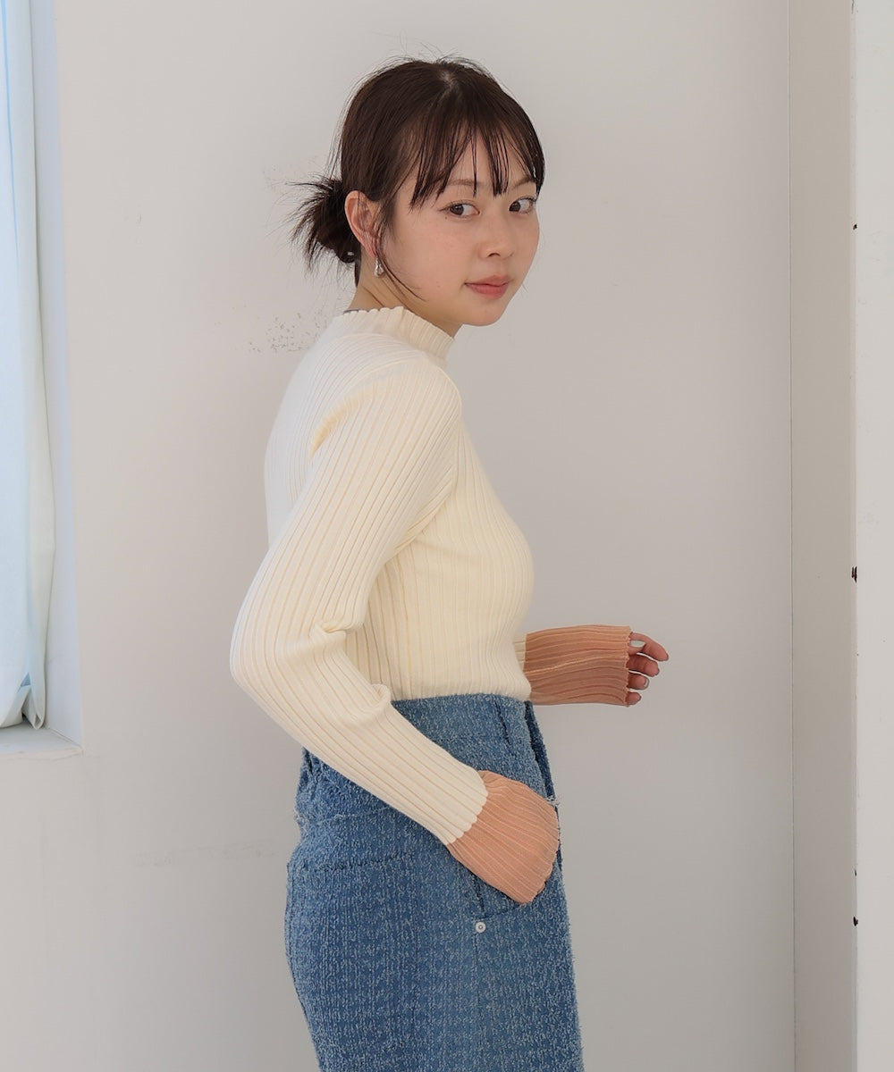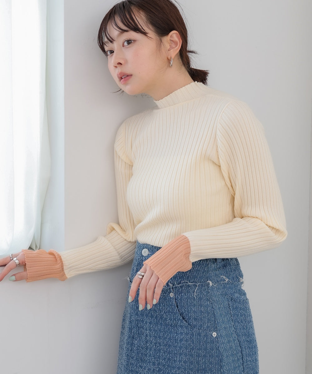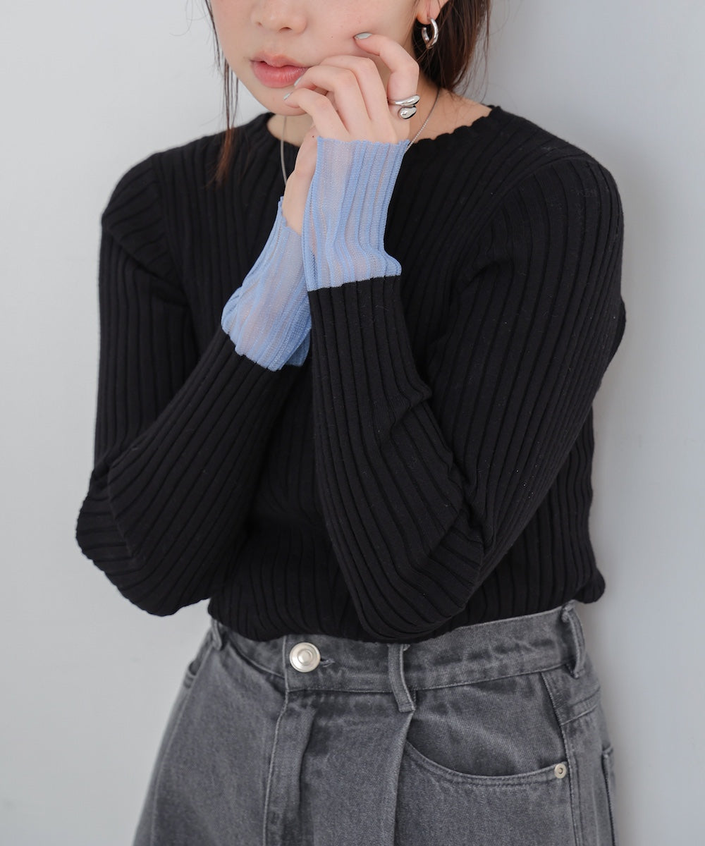 <JP> 拼色ver.! 透明感薄紗拼羅紋針織* 3色入 (圓領/高領) <預購>