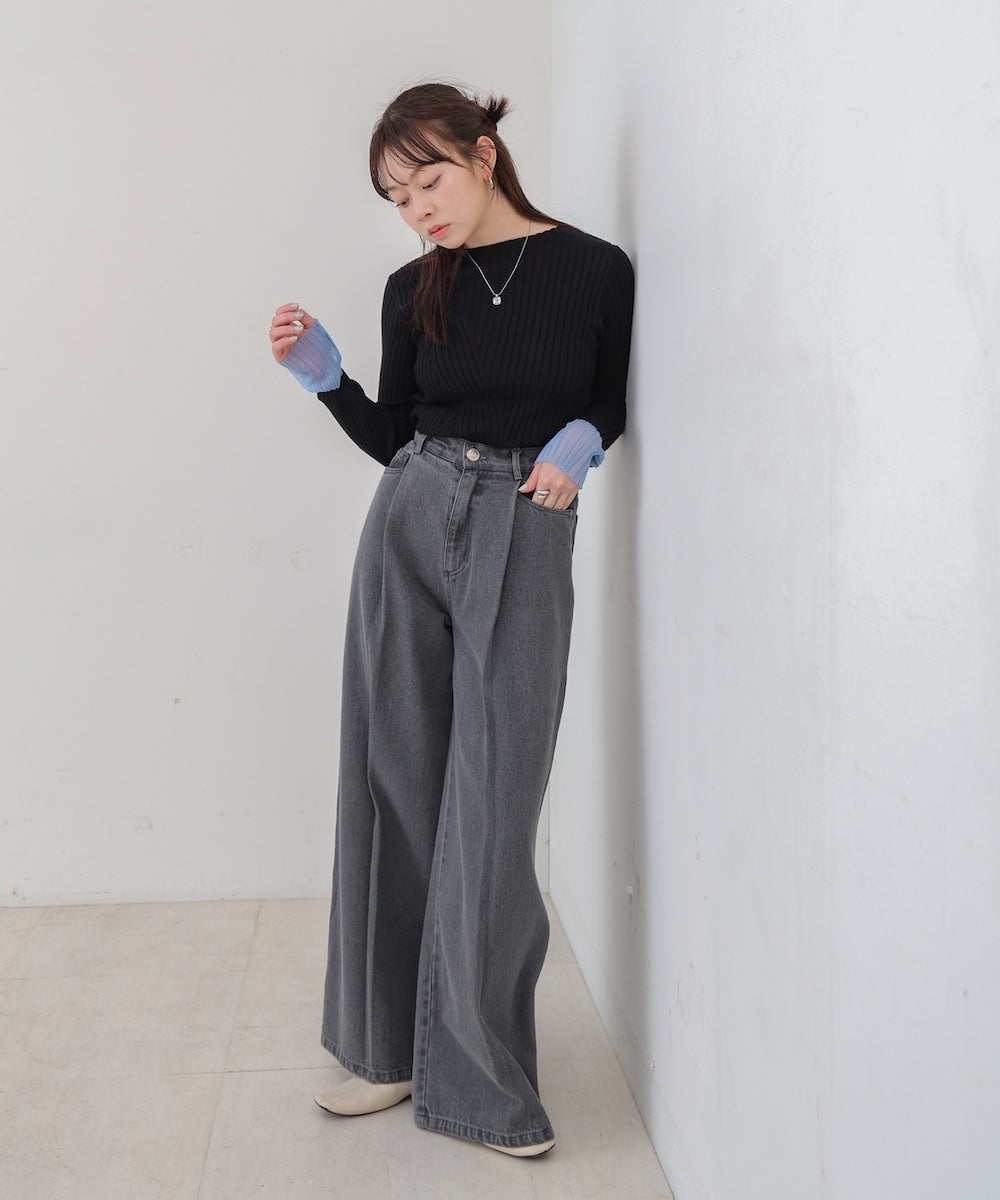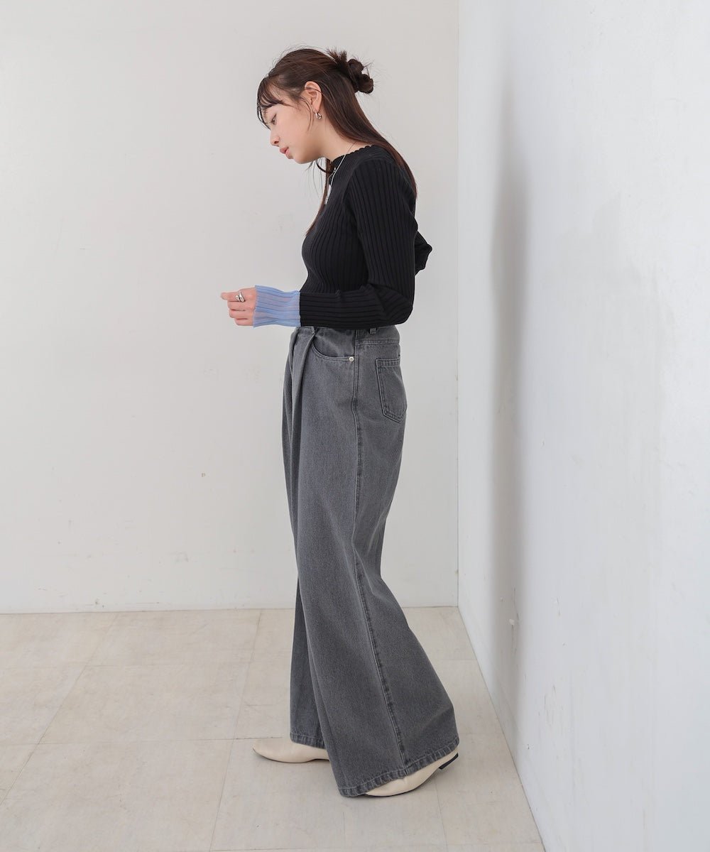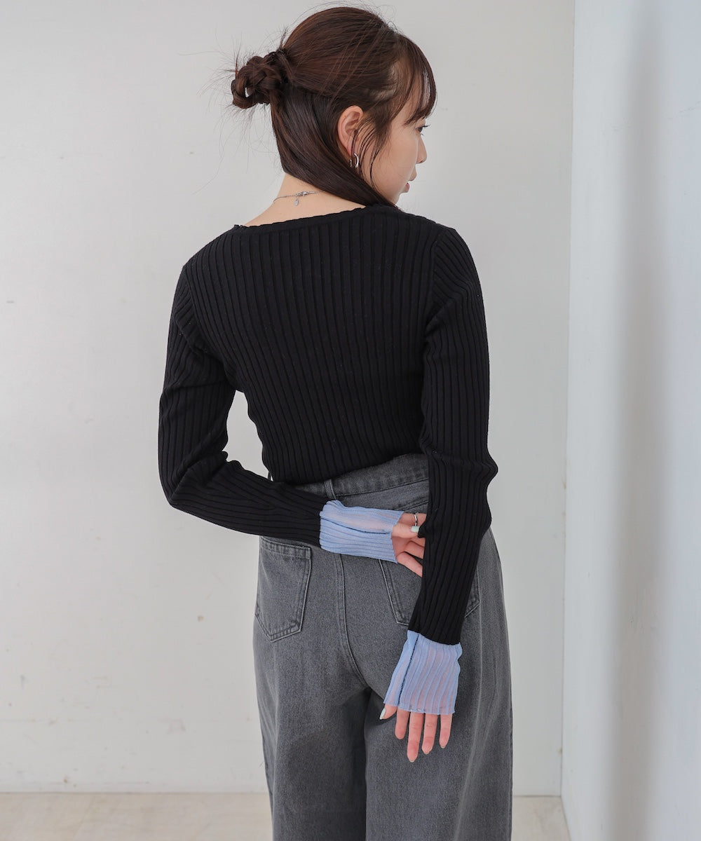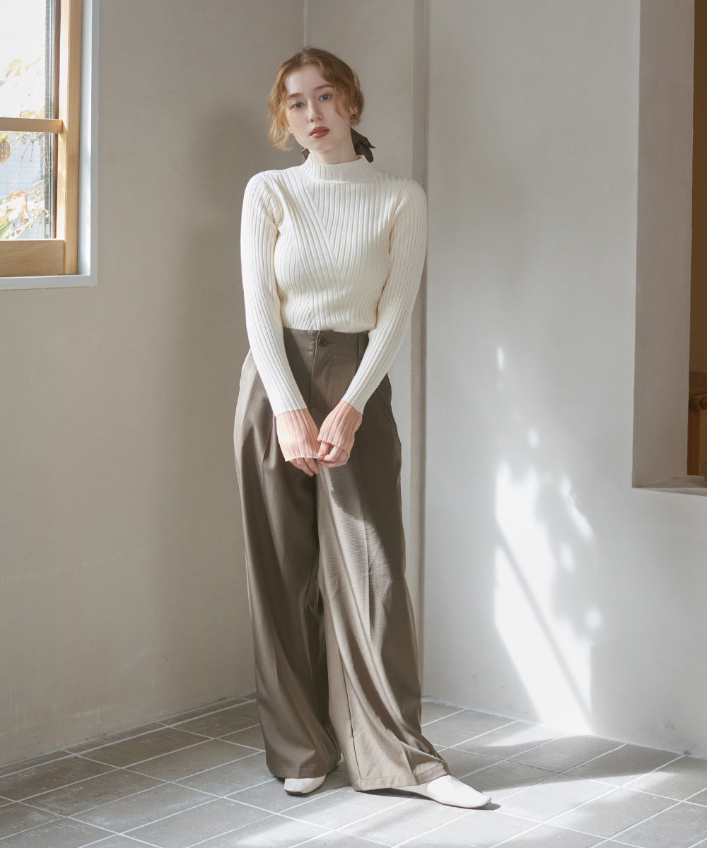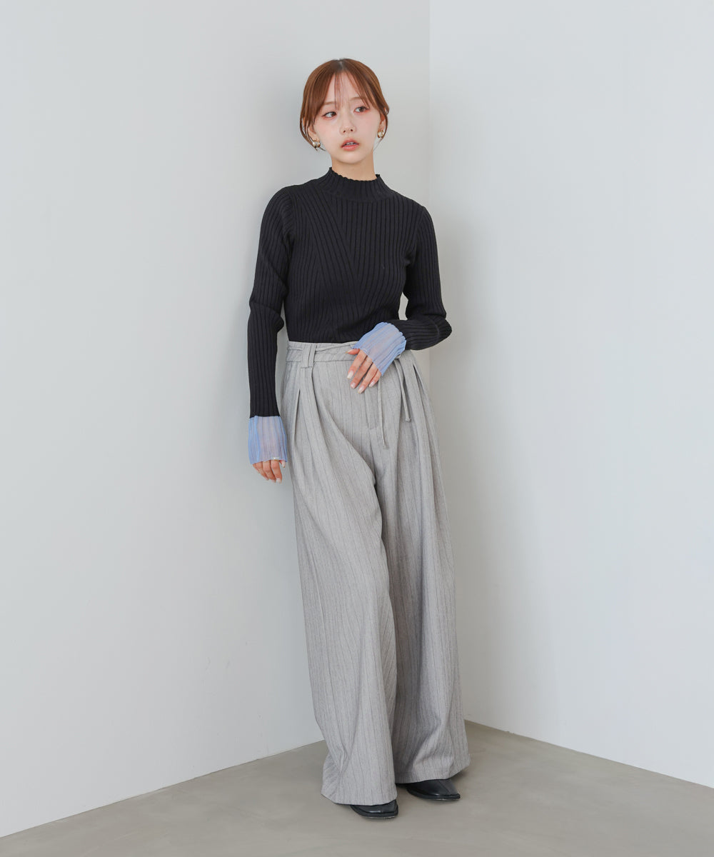 <JP> 拼色ver.! 透明感薄紗拼羅紋針織* 3色入 (圓領/高領) <預購>