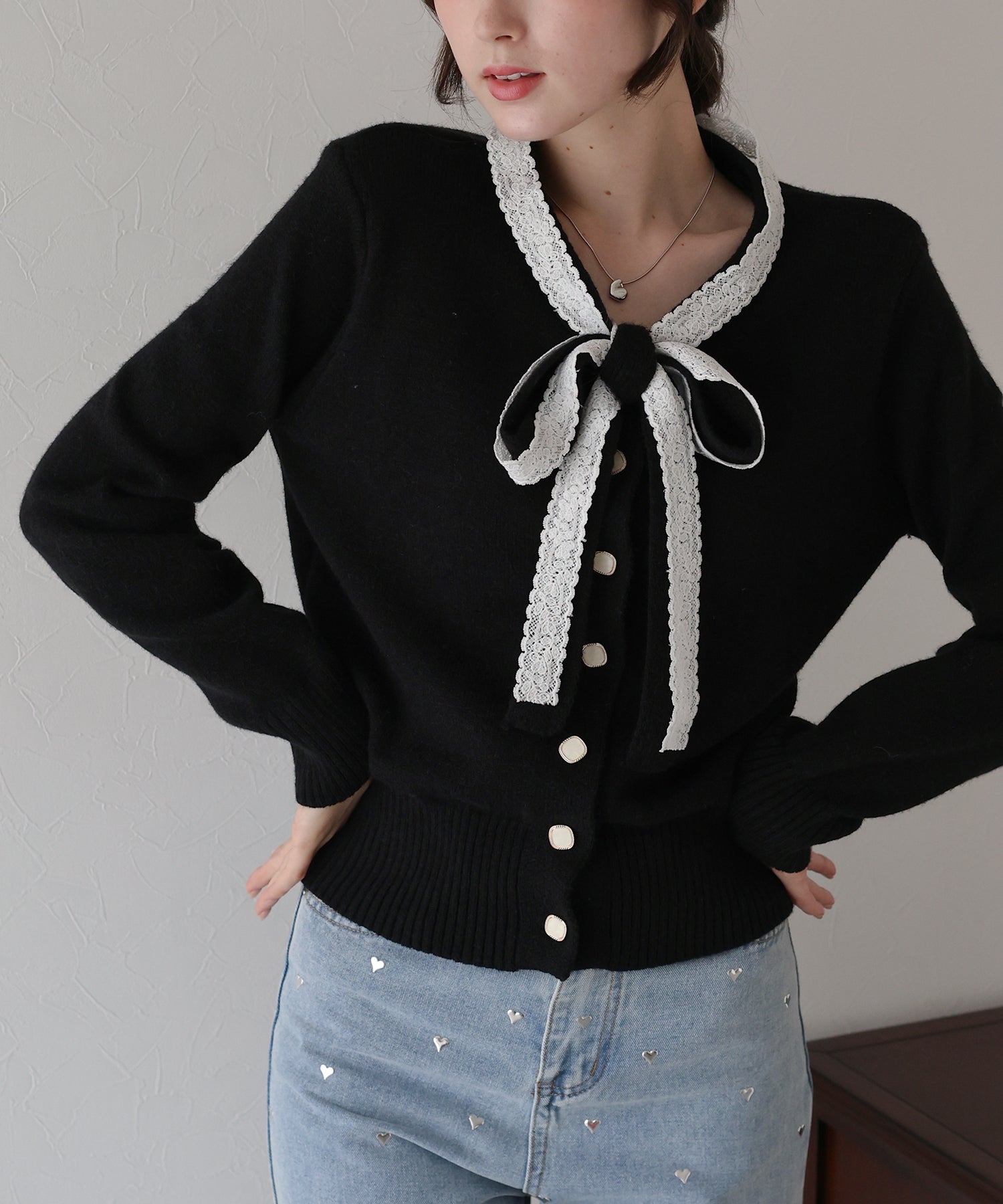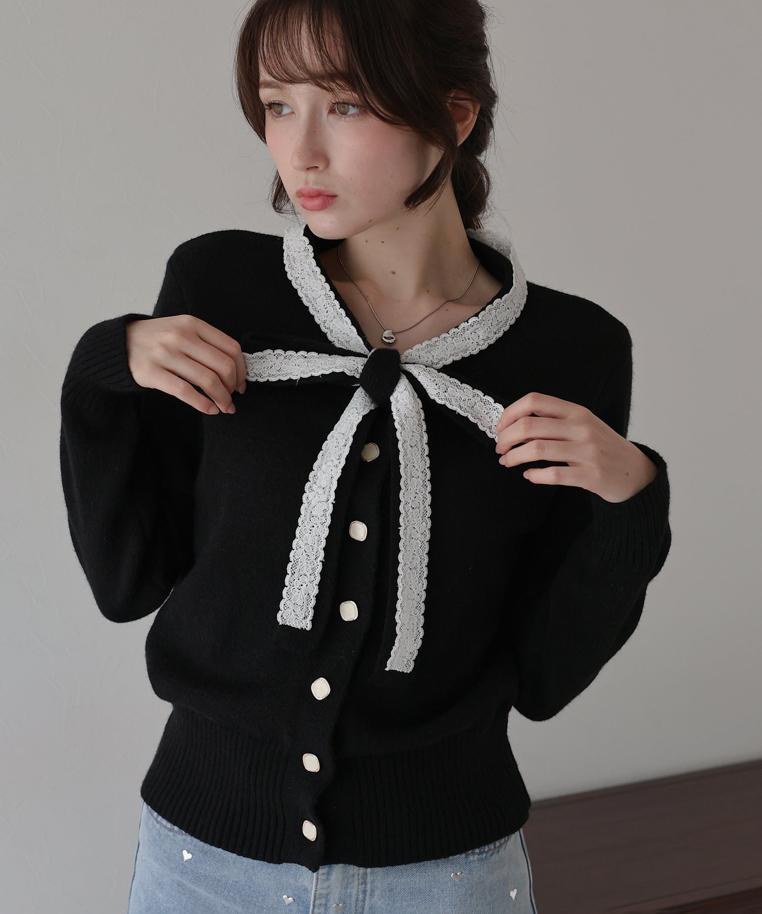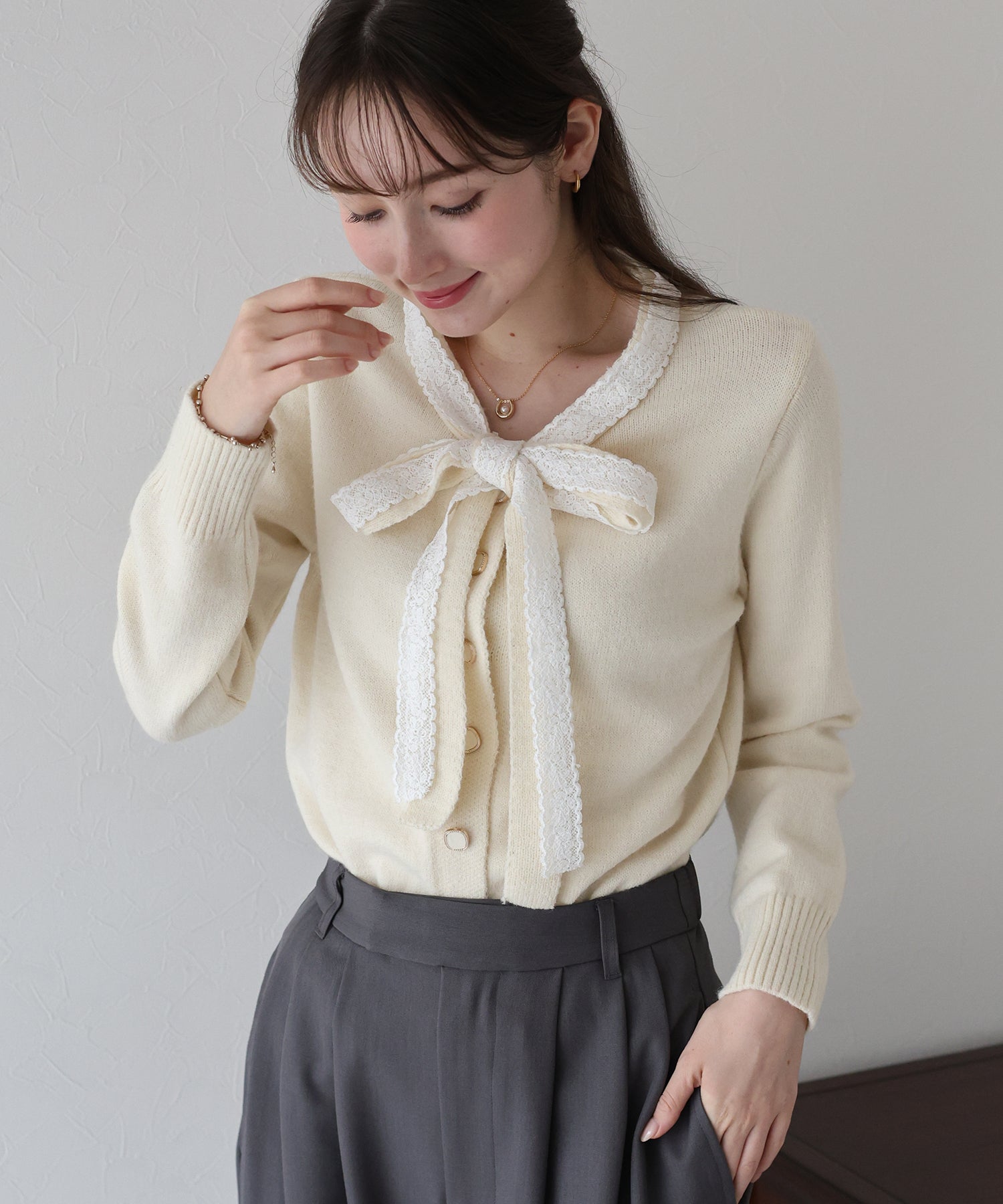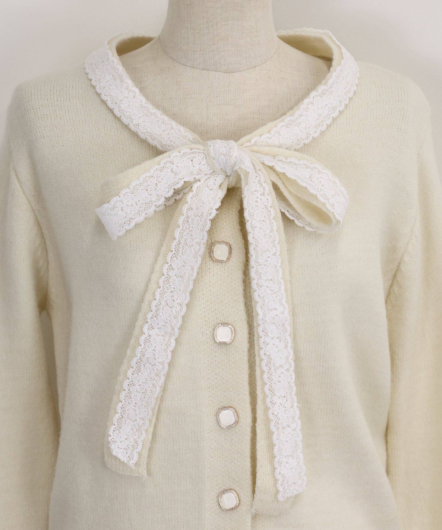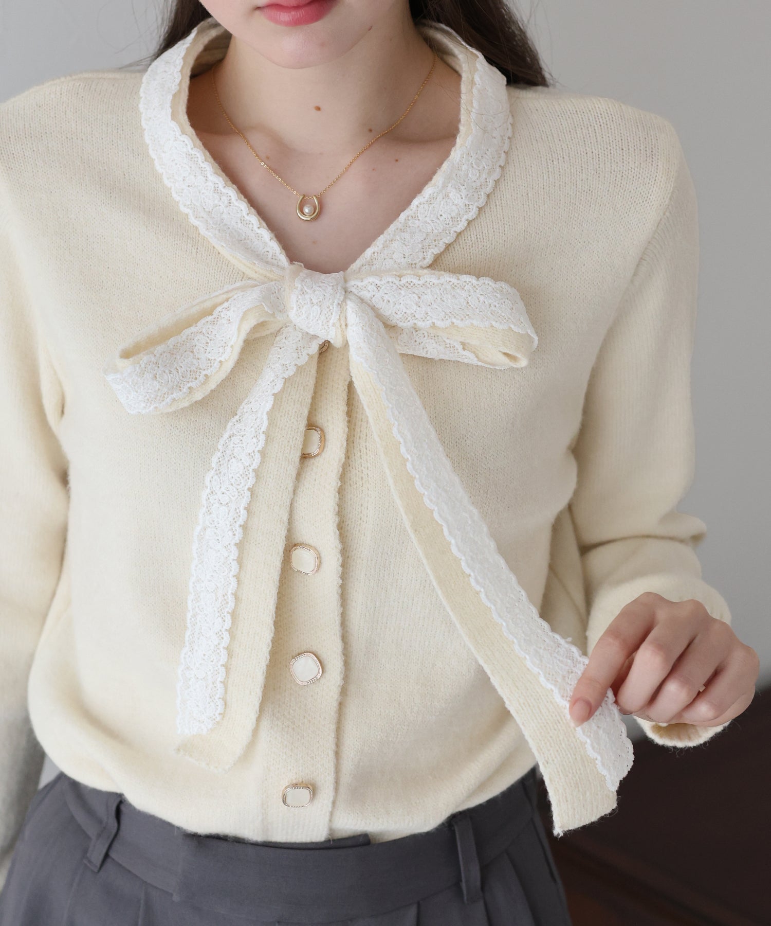 <JP> 日系設計感 Lace Ribbon Knit Cardigan * 3色入 <預購>