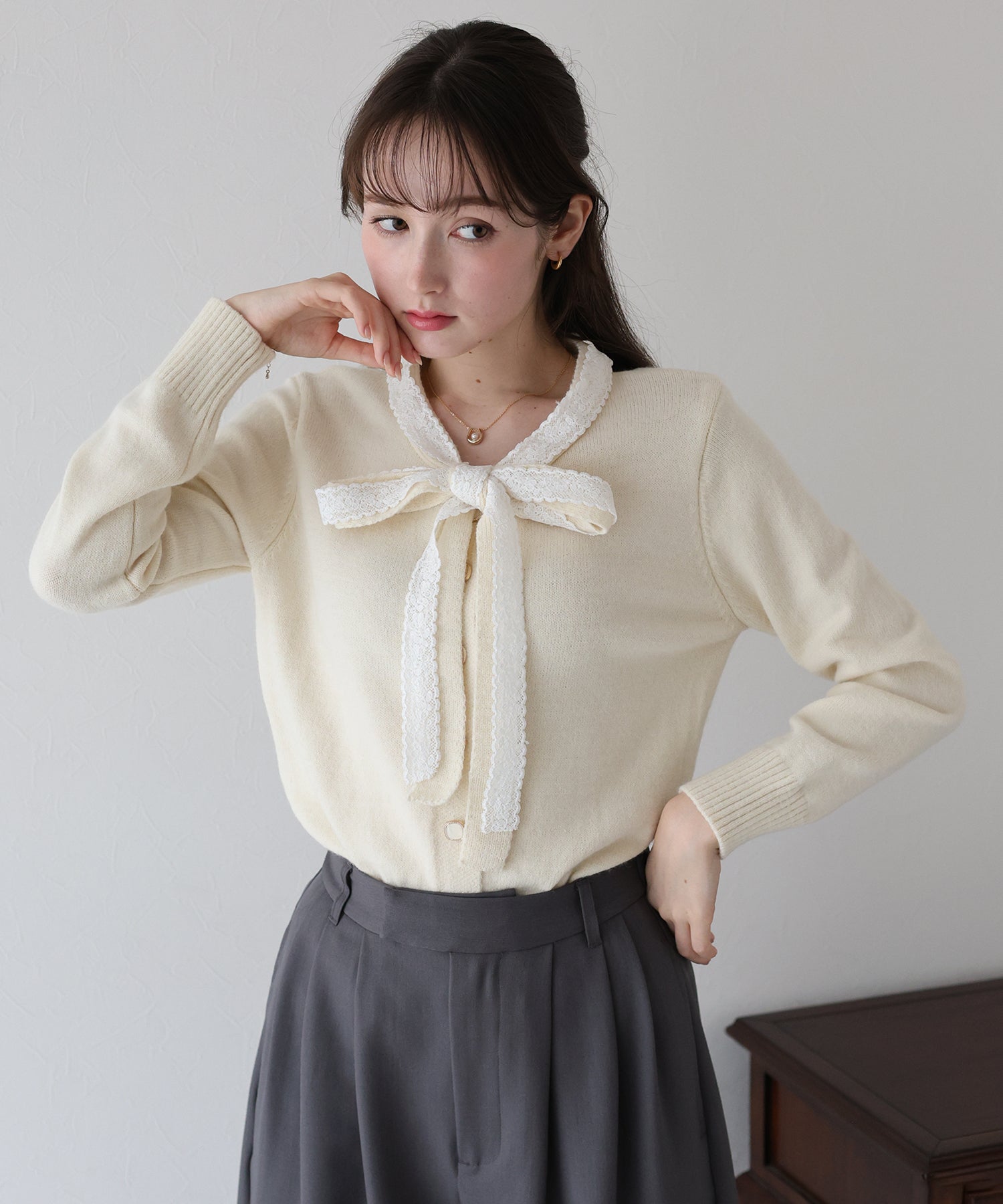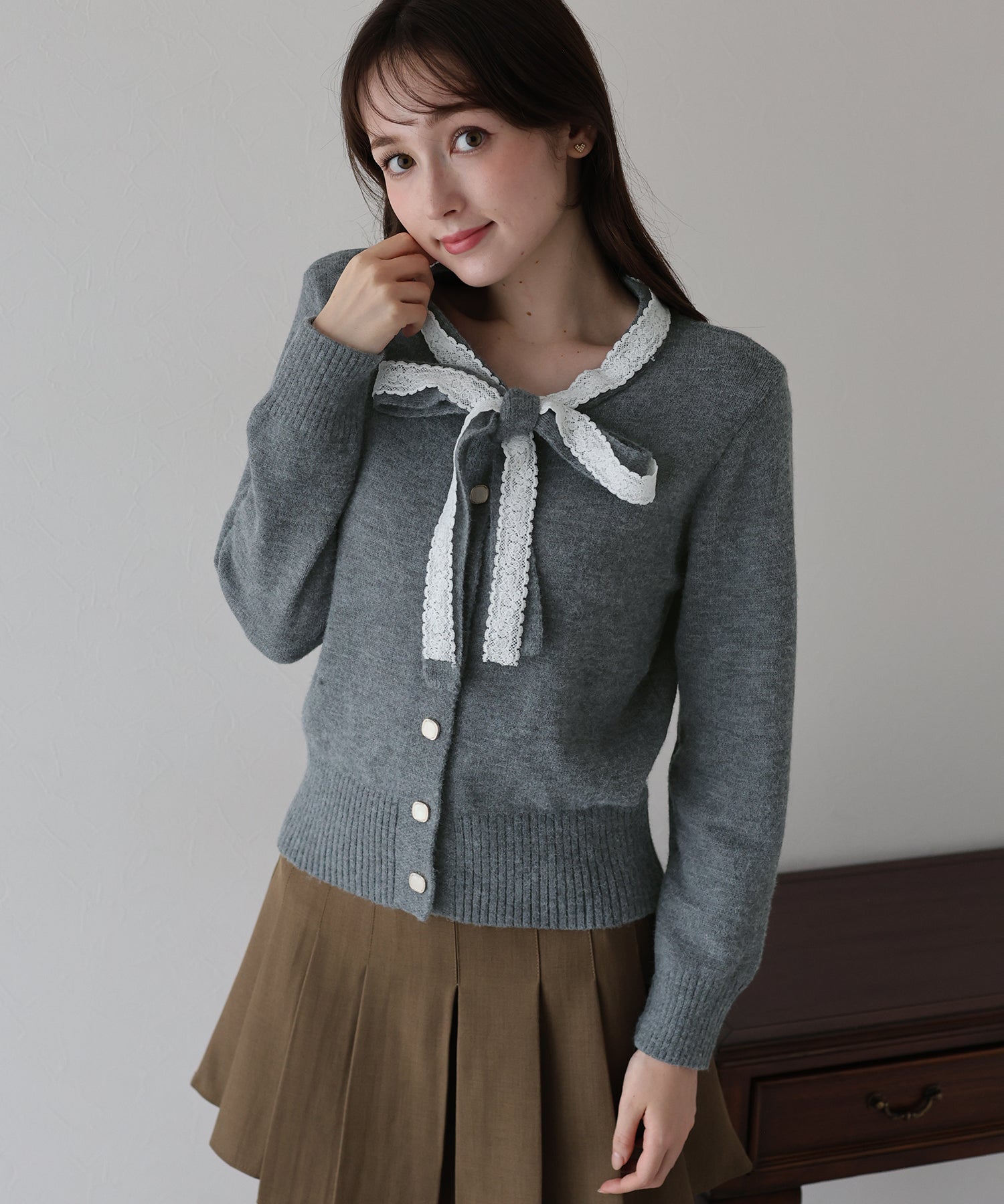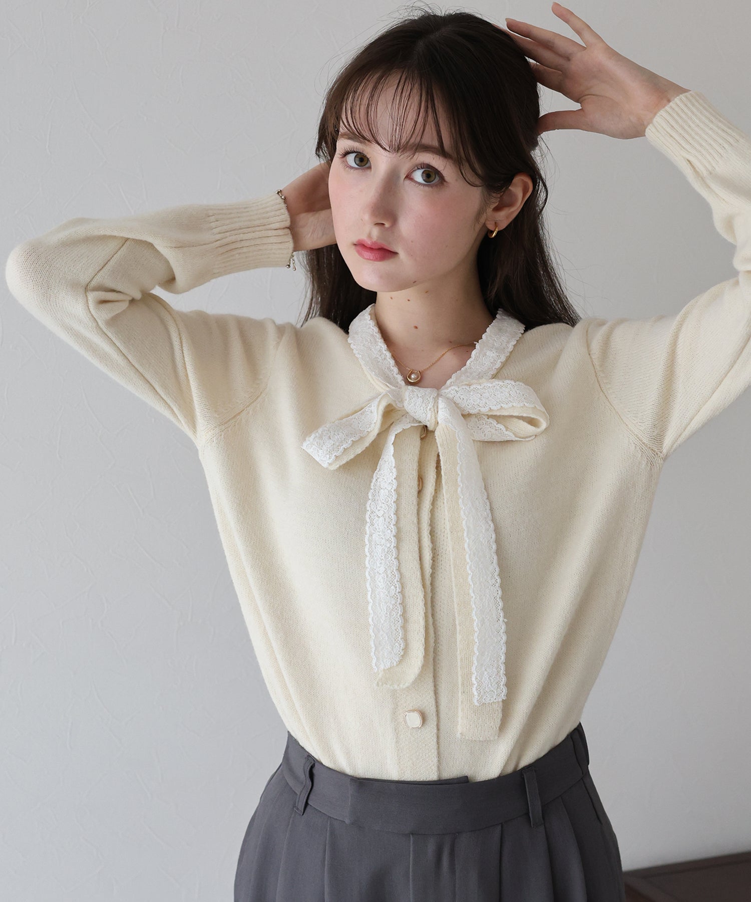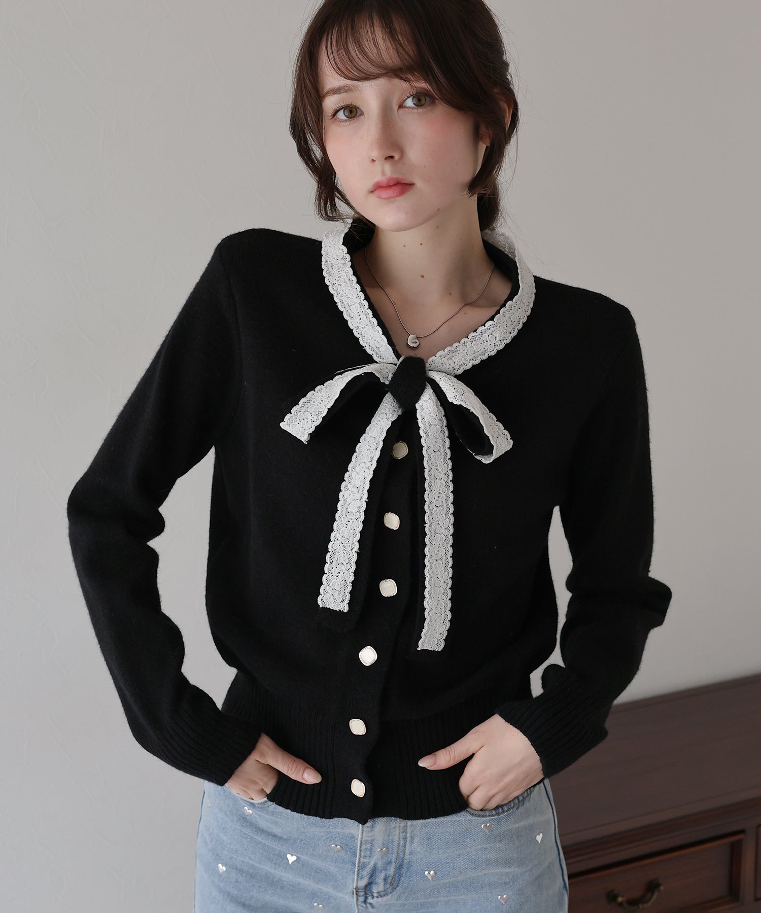 <JP> 日系設計感 Lace Ribbon Knit Cardigan * 3色入 <預購>
