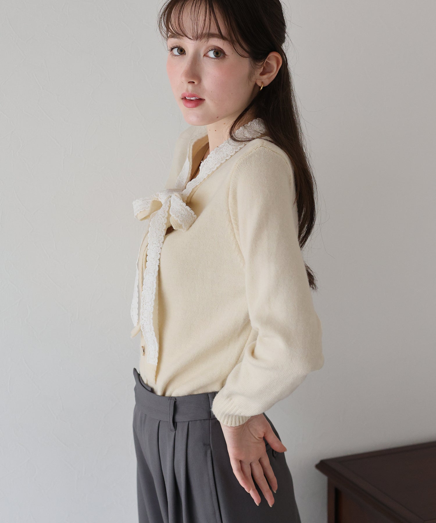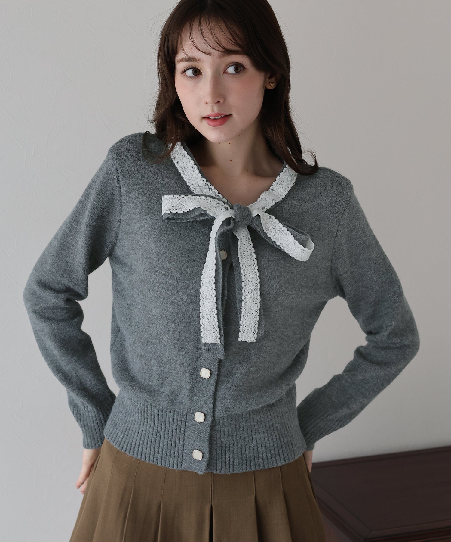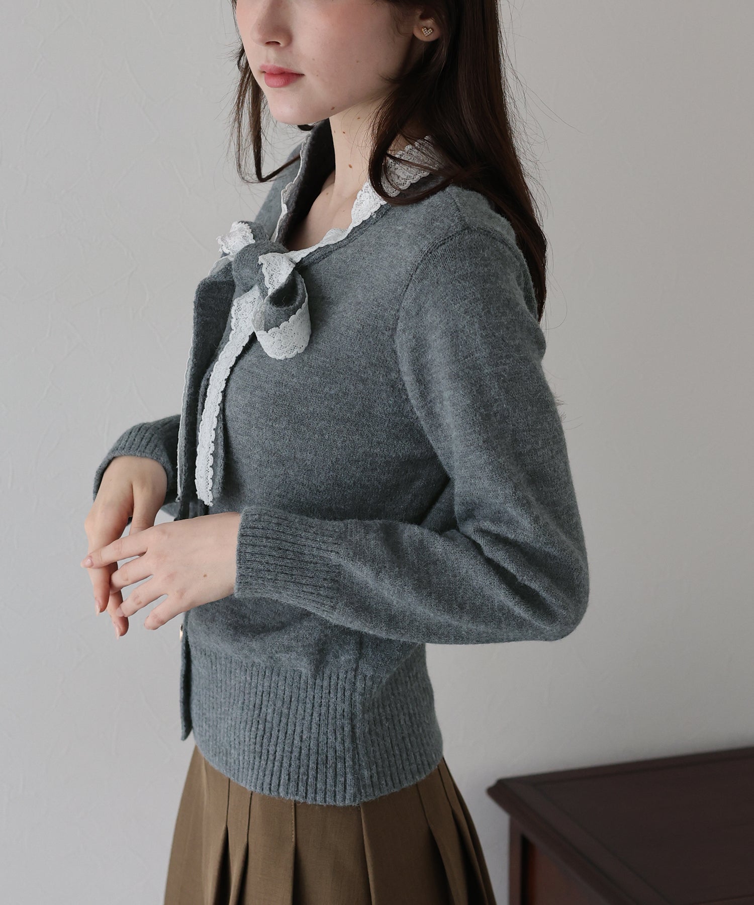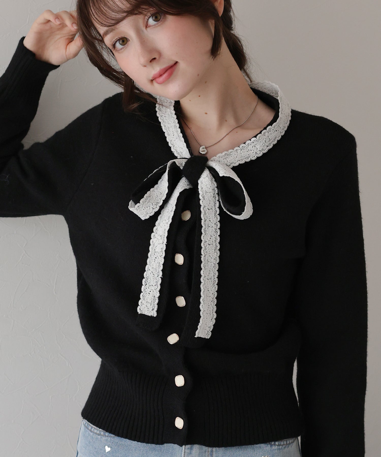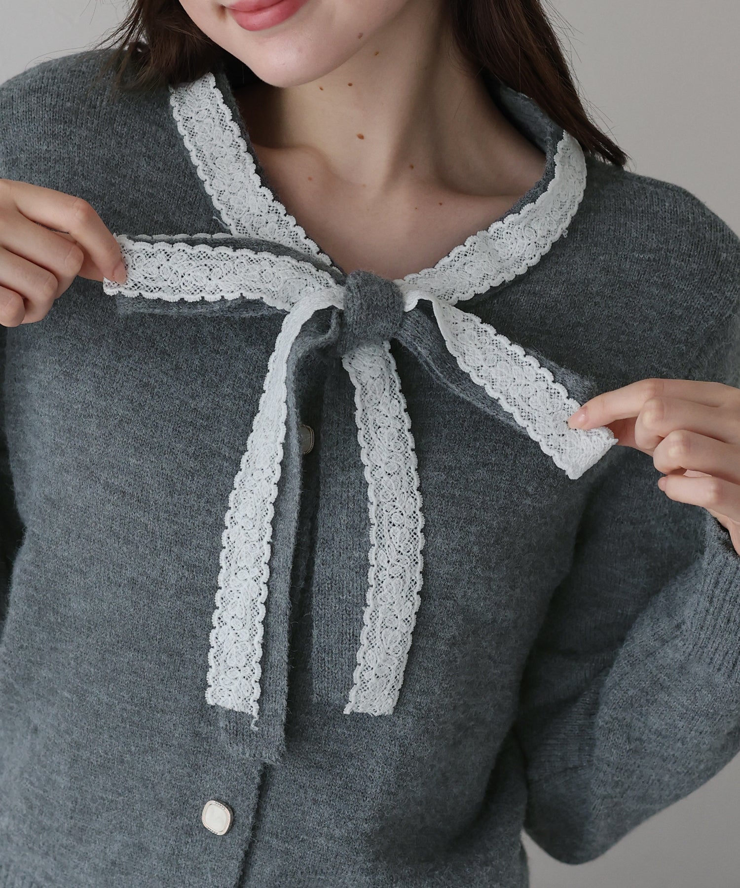 <JP> 日系設計感 Lace Ribbon Knit Cardigan * 3色入 <預購>