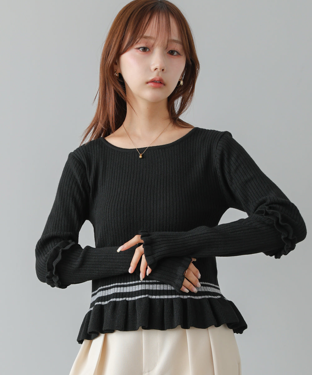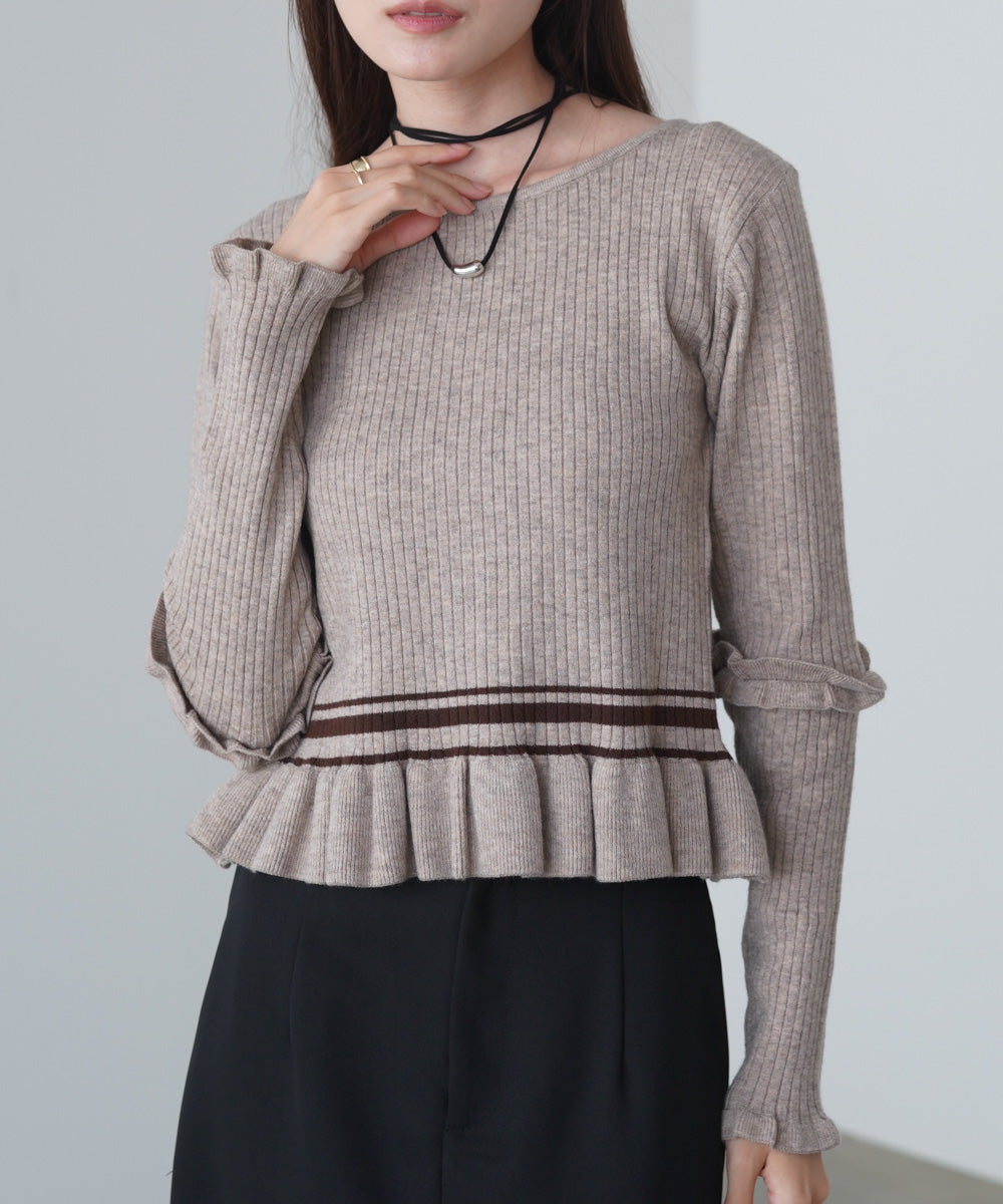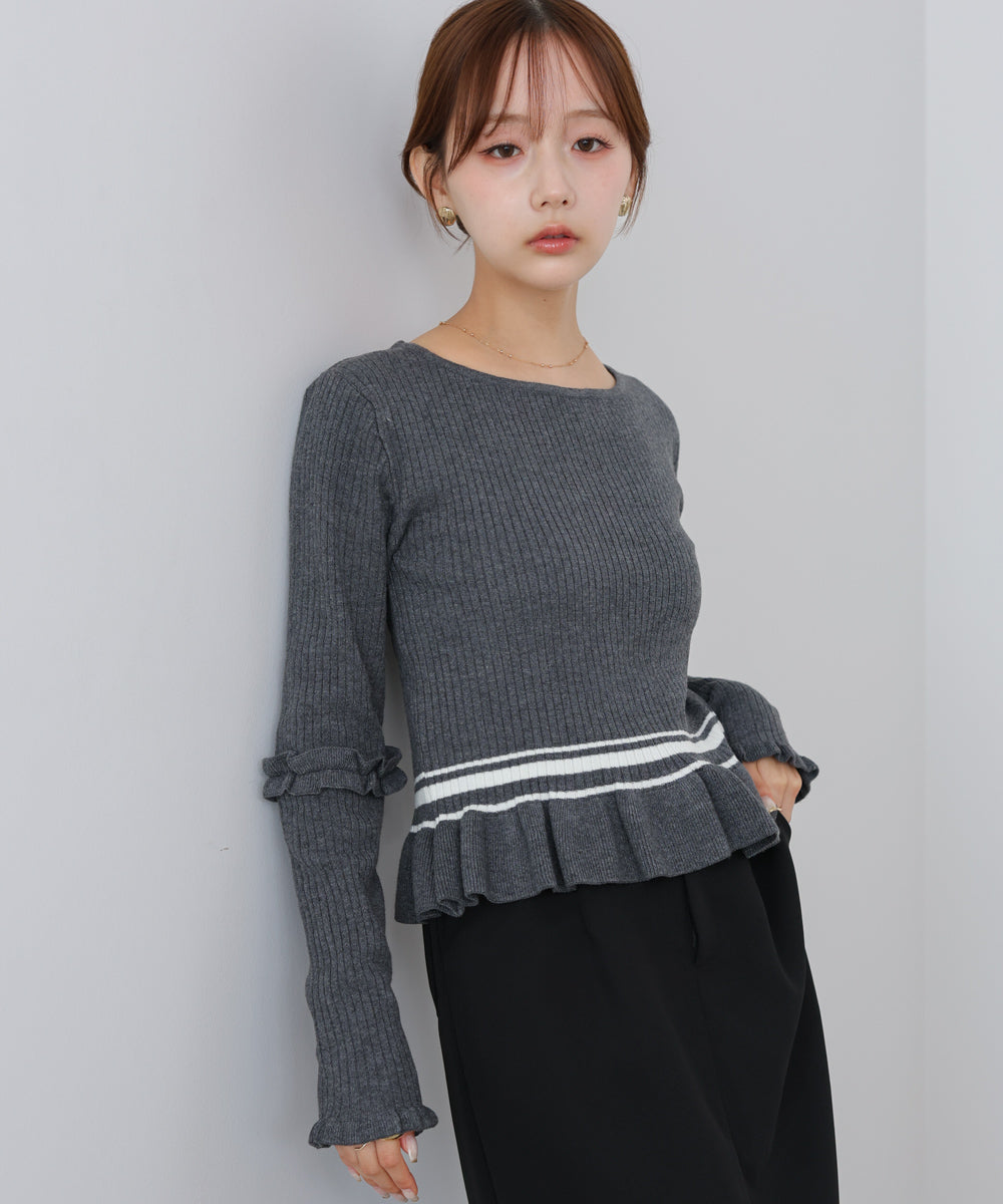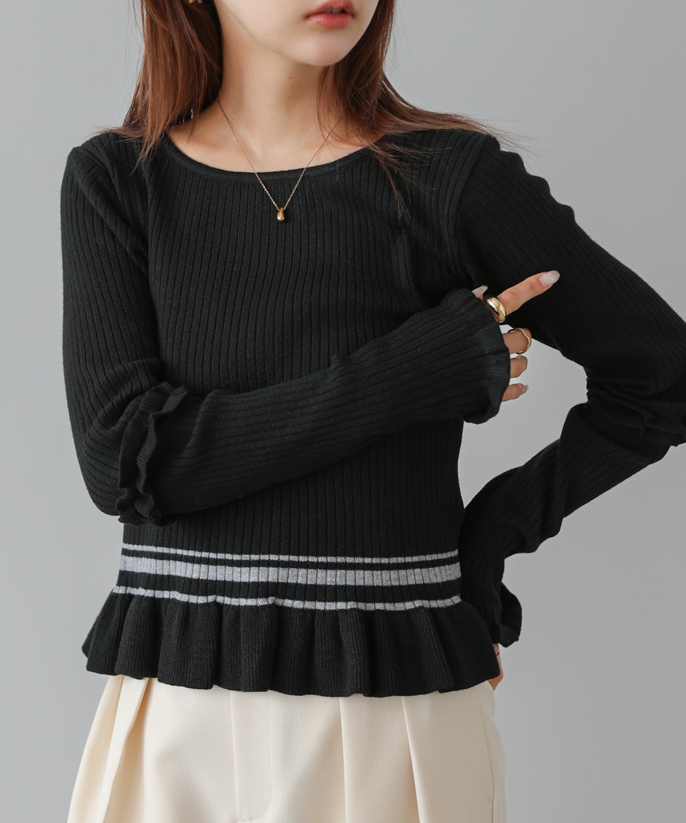 <JP> 荷葉邊修腰併色滾邊 Knit Top* 3色入 <預購>
