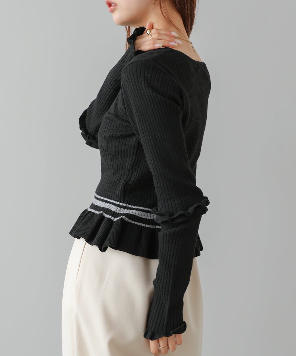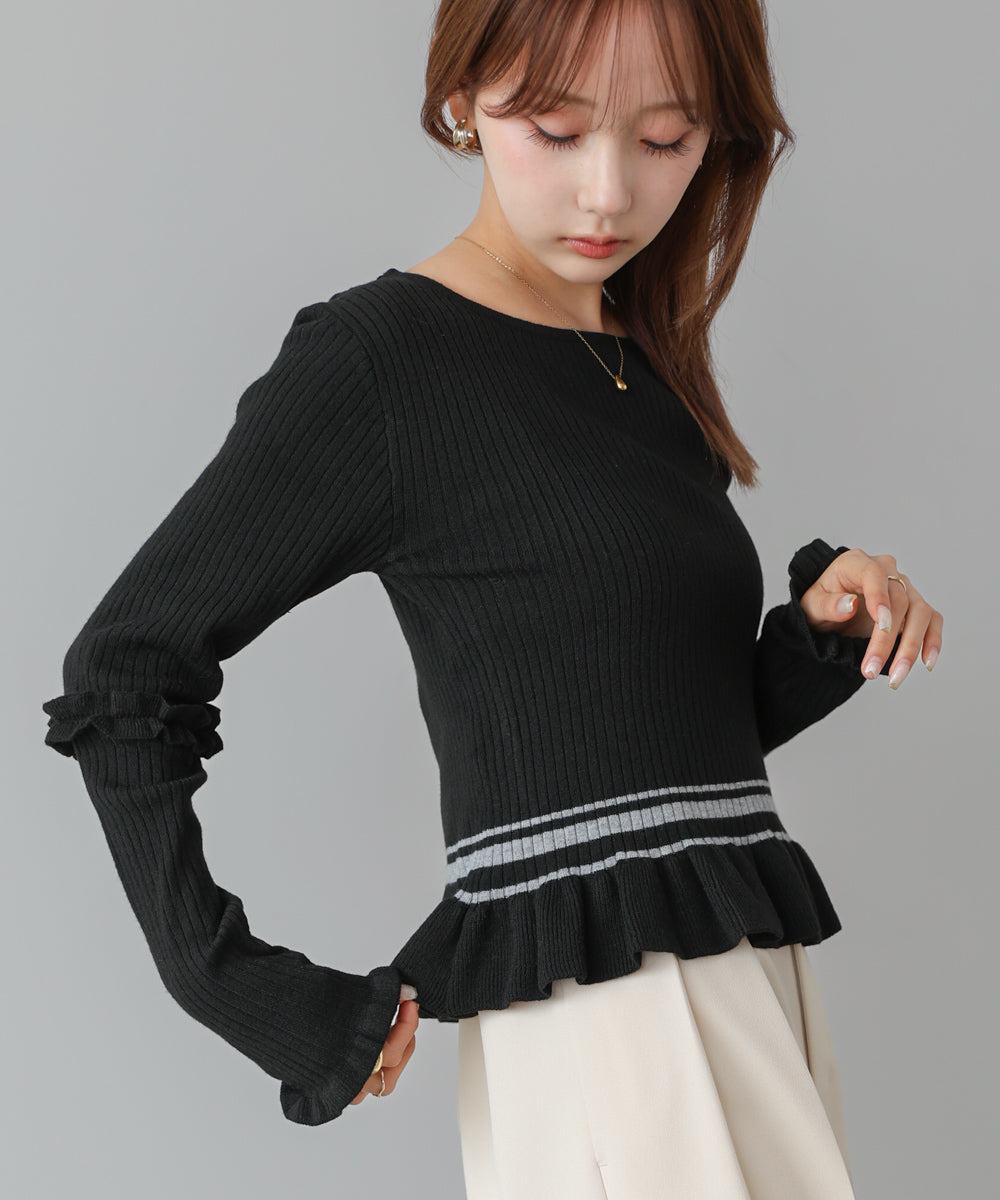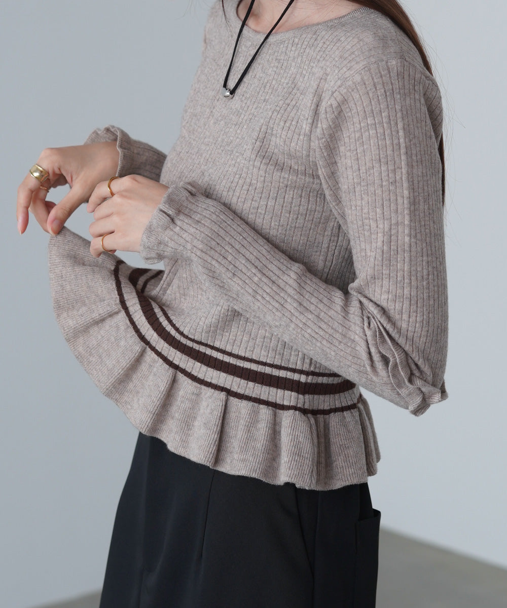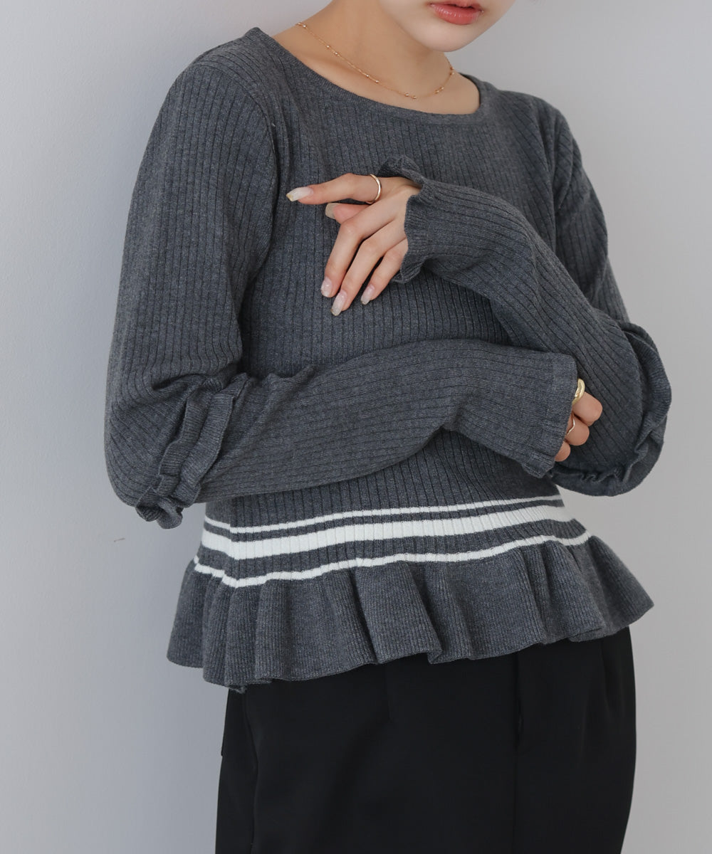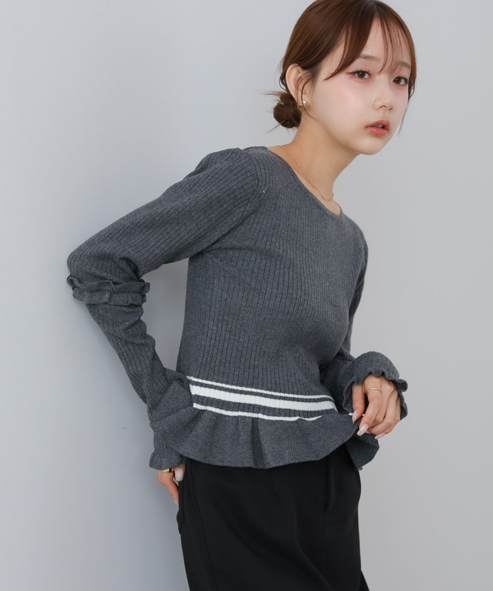 <JP> 荷葉邊修腰併色滾邊 Knit Top* 3色入 <預購>