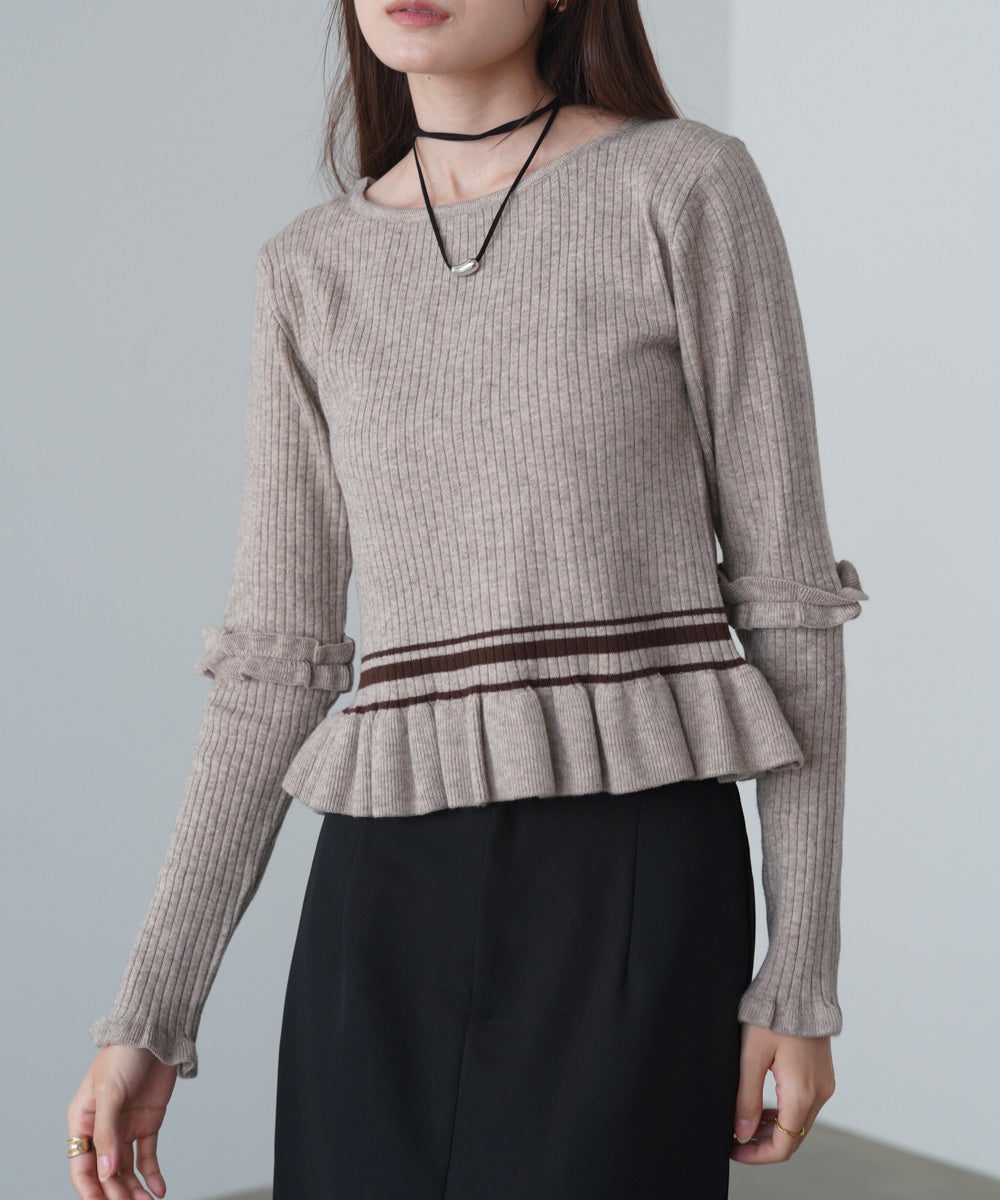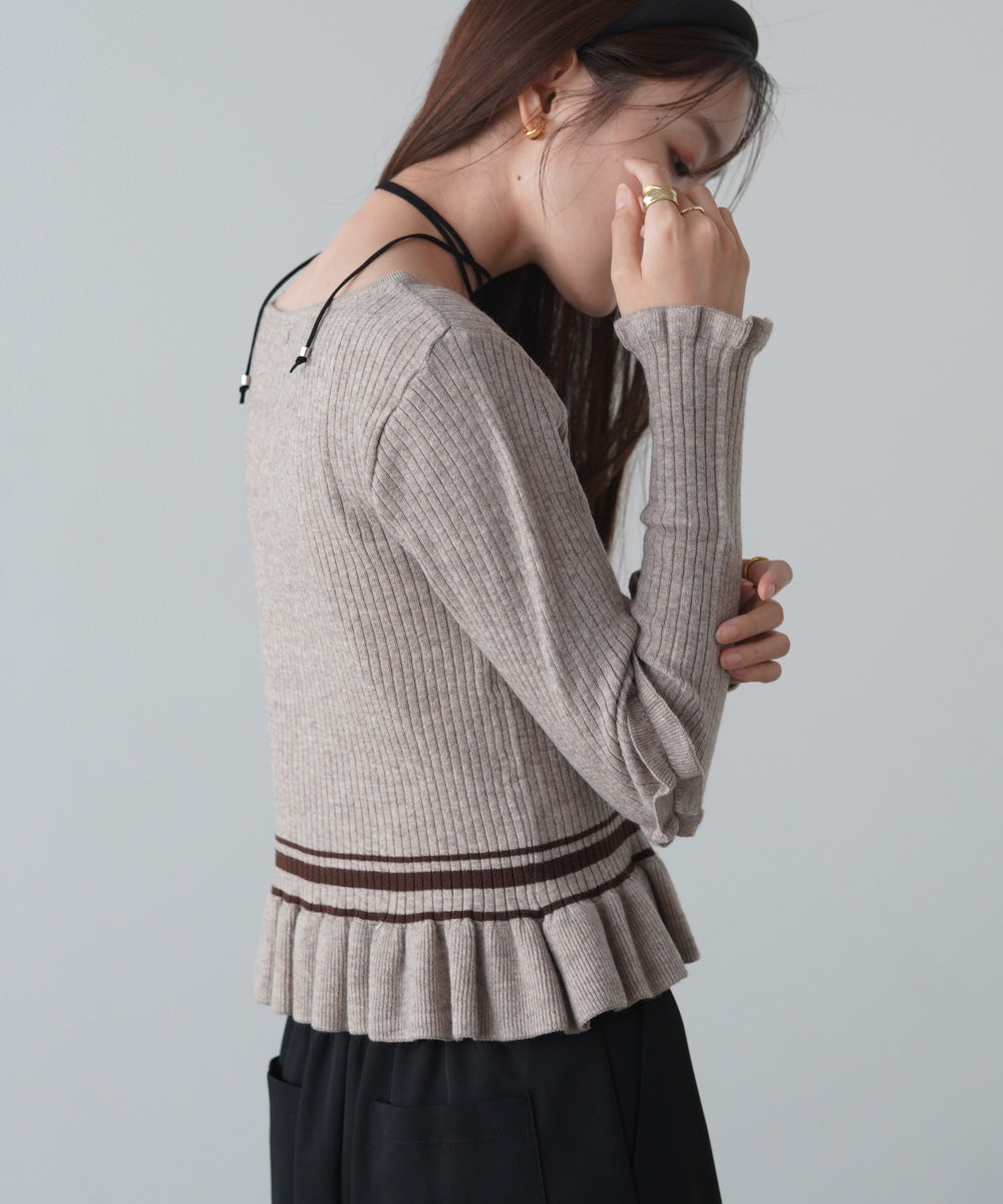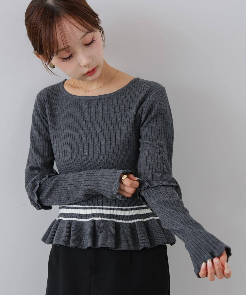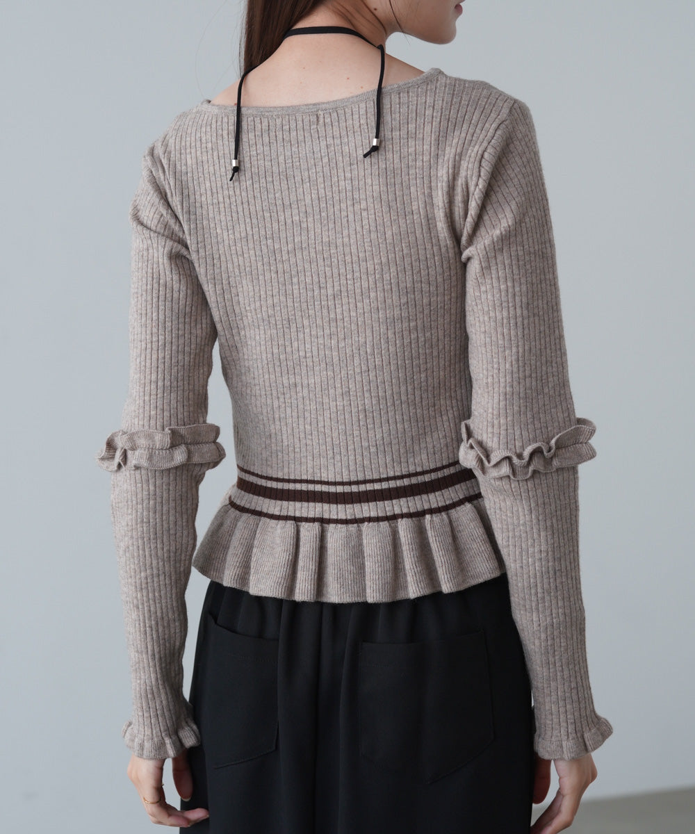 <JP> 荷葉邊修腰併色滾邊 Knit Top* 3色入 <預購>