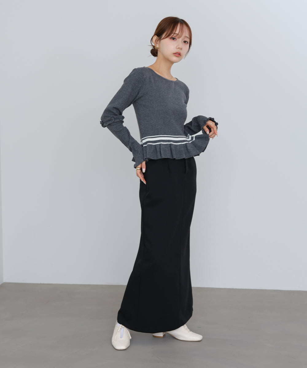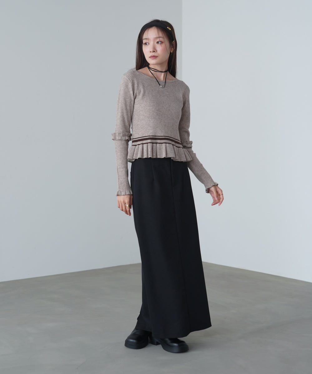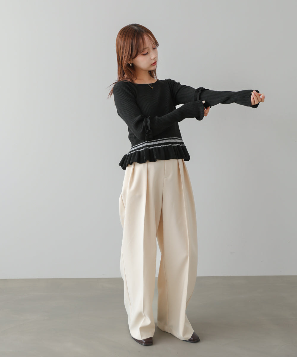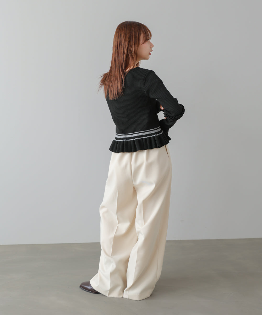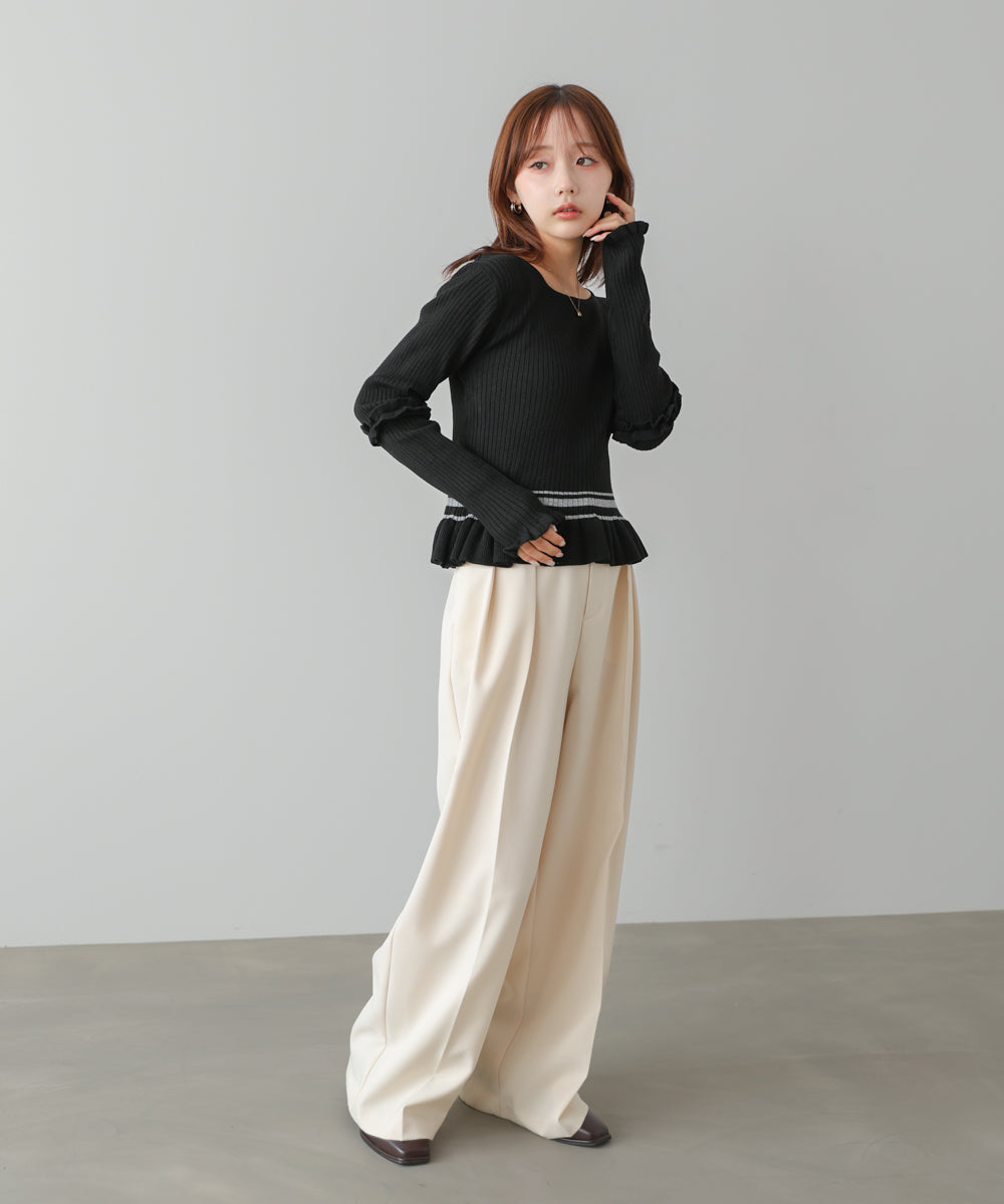<JP> 荷葉邊修腰併色滾邊 Knit Top* 3色入 <預購>
