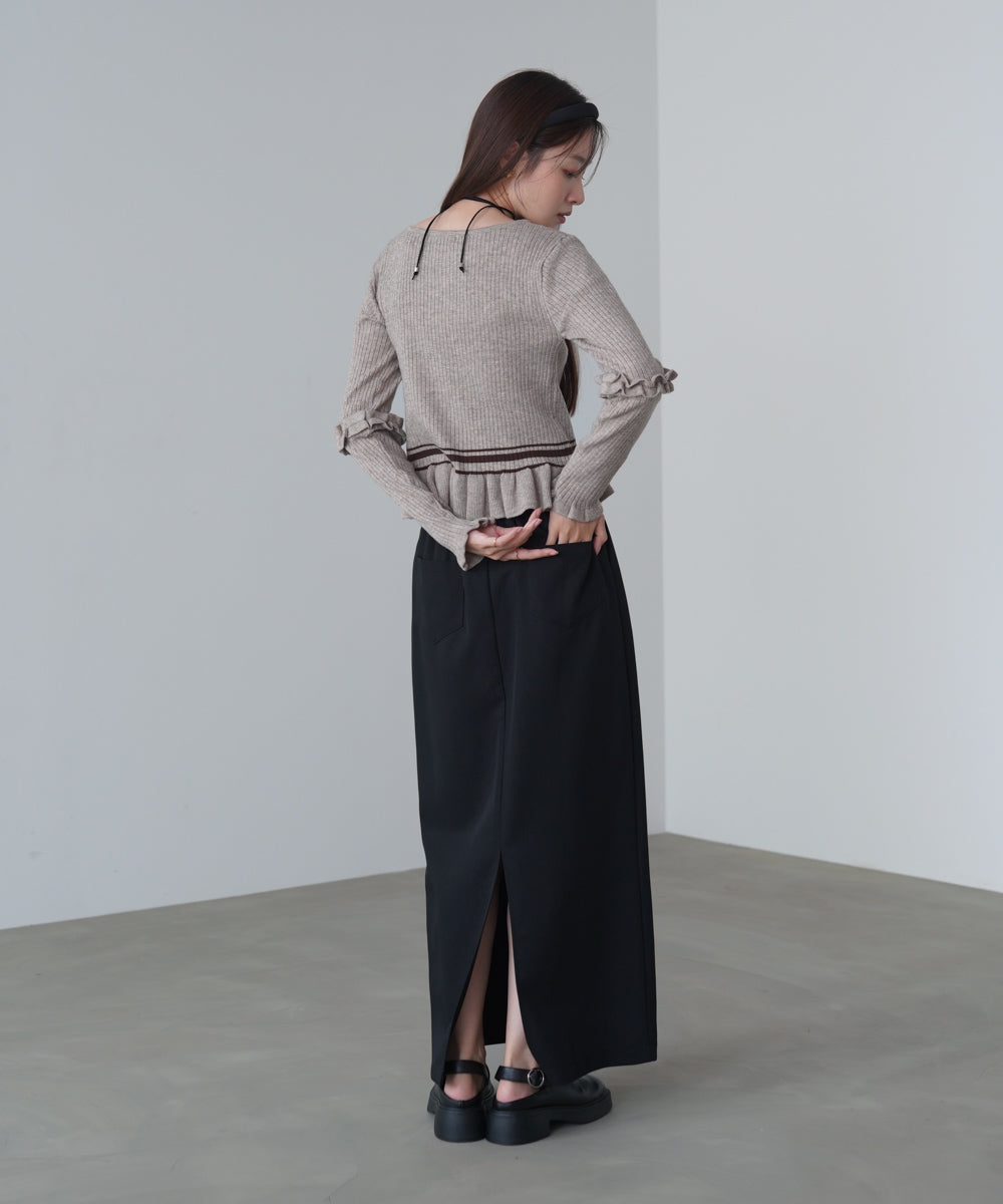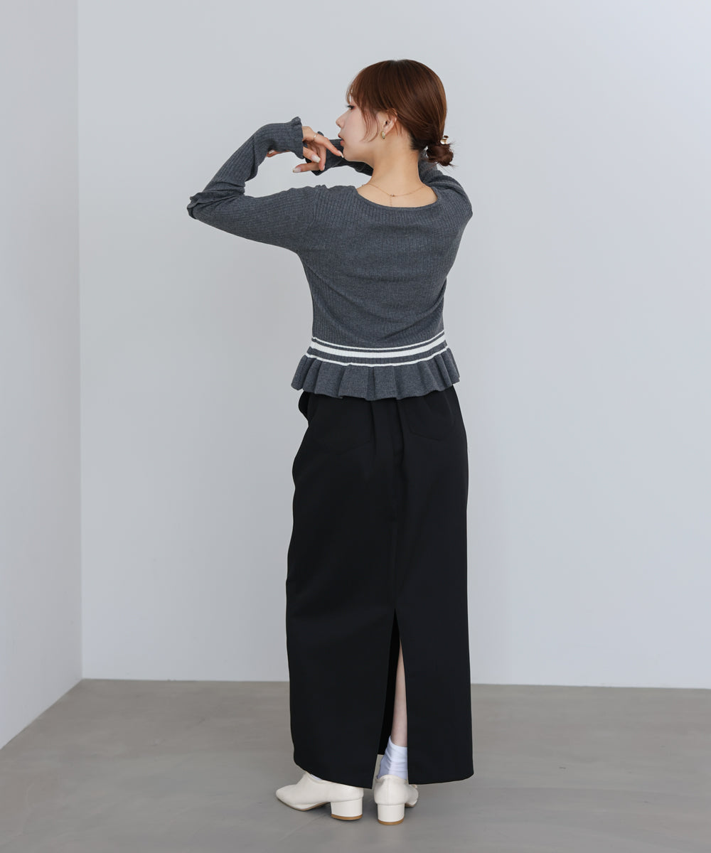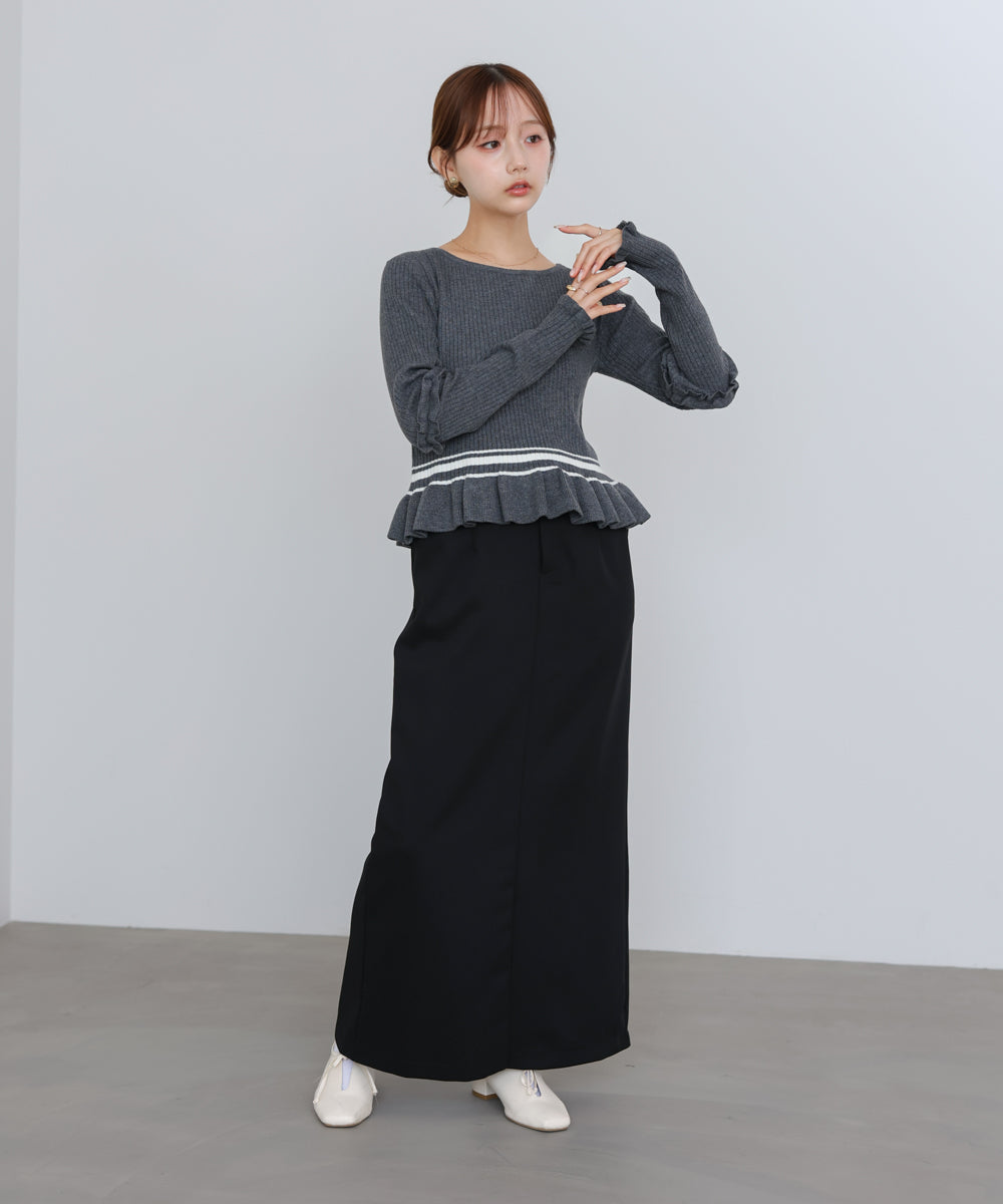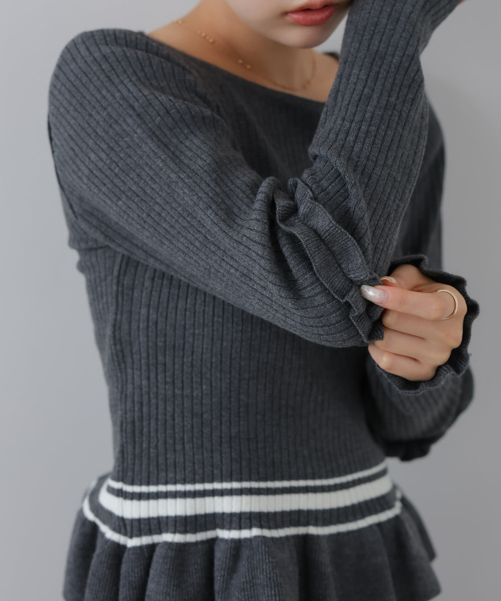 <JP> 荷葉邊修腰併色滾邊 Knit Top* 3色入 <預購>