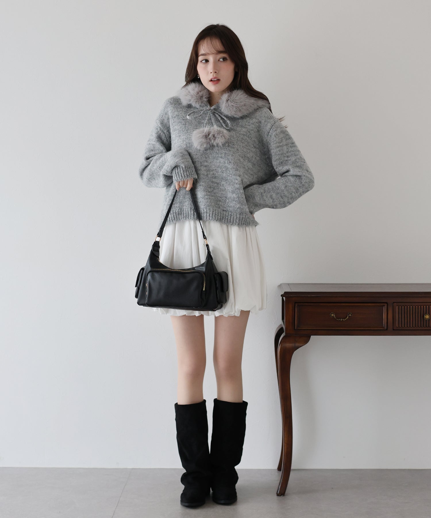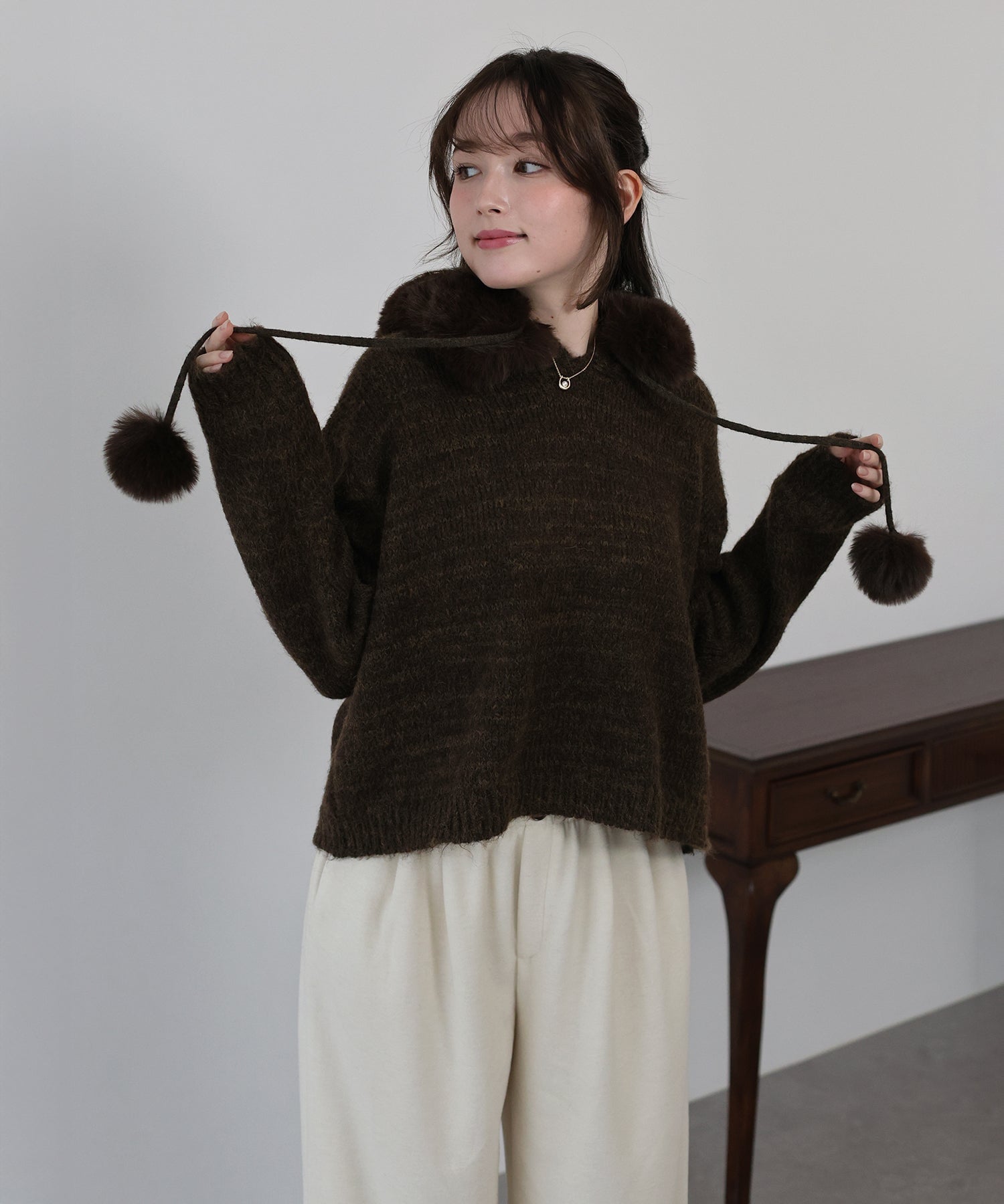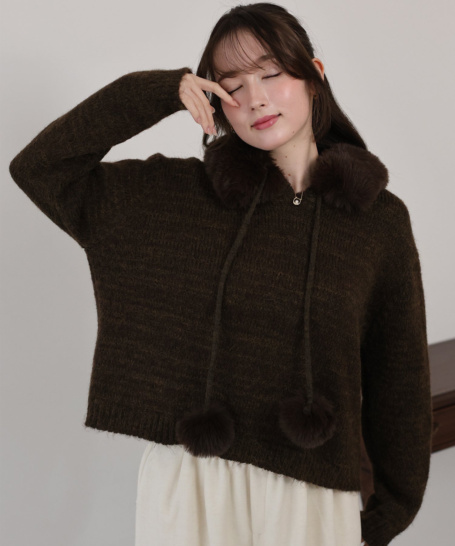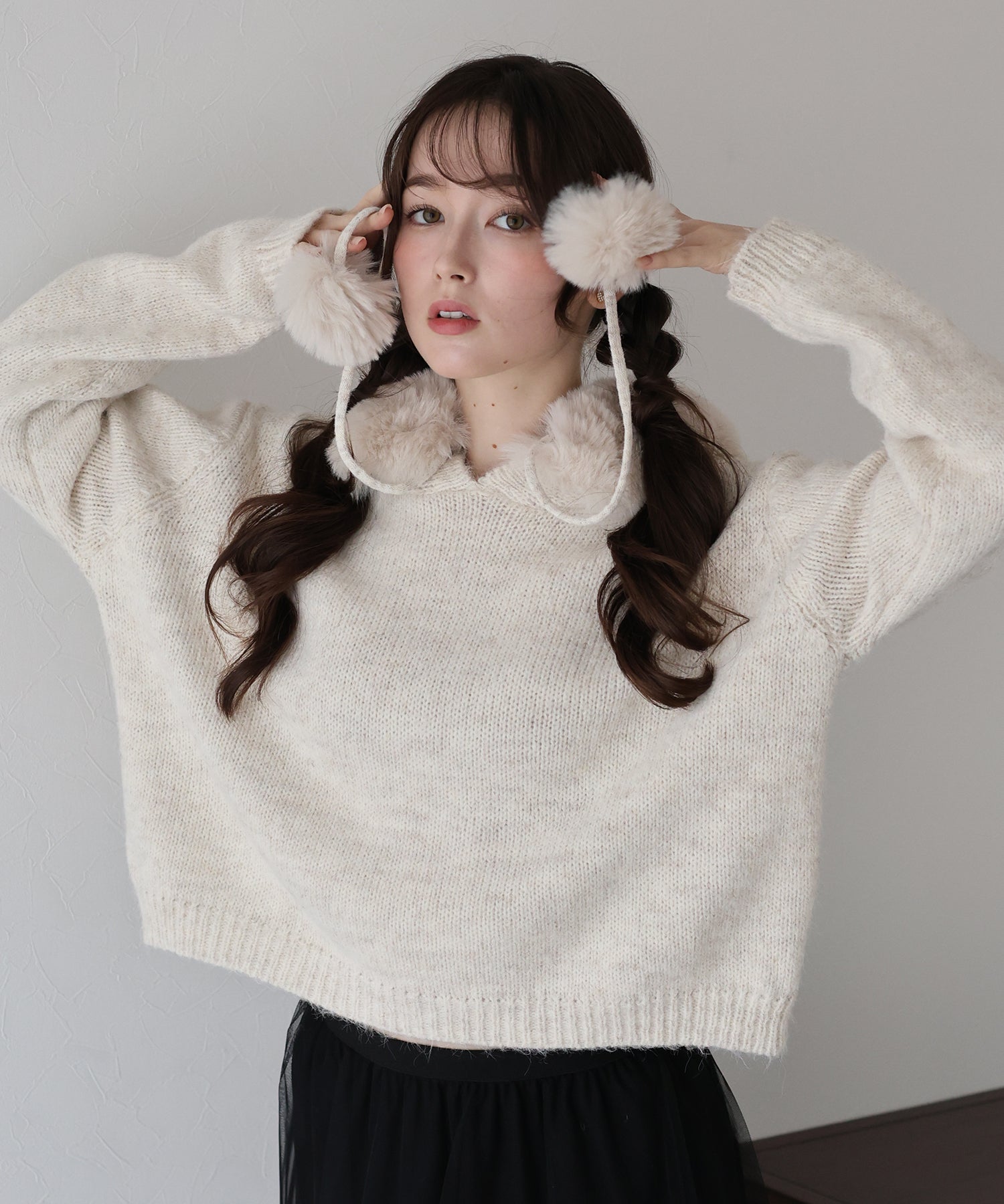 <日本團訂>預購一般於本團截單日起計約3-4週抵港♡ 請到 IG 查看本團截單日♡ \自留推薦,可愛冬日vibe ♪ (*›◡︎‹*)/ ● 連帽細密針織 ● 可愛毛毛領 可折式毛毛 ● 配合毛毛小雪球 更添冬日氣息 ● 觸感柔軟順滑 彈性很好 ● 面料本身好高質 少少混色好有質感 ● 厚薄適中 加毛毛領超級暖! ● 寬鬆落肩版型 休閒舒適 ˚ʚ♡ɞ˚ **數量有限。完售即止** 𝖲𝗂𝗓𝖾 𝖽𝖾𝗍𝖺𝗂𝗅𝗌. 𝖲𝗁𝗈𝗎𝗅𝖽𝖾𝗋: 52𝖼𝗆 𝖢𝗁𝖾𝗌𝗍 𝗐𝗂𝖽𝗍𝗁: 62𝖼𝗆 𝖲𝗅𝖾𝖾𝗏𝖾: 56𝖼𝗆 𝖫𝖾𝗇𝗀𝗍𝗁: 53.5𝖼𝗆 Model’s tall: 162𝖼𝗆 Fabric. 77% polyester, 11% nylon, 8% wool, 4% polyurethane 厚針織布料