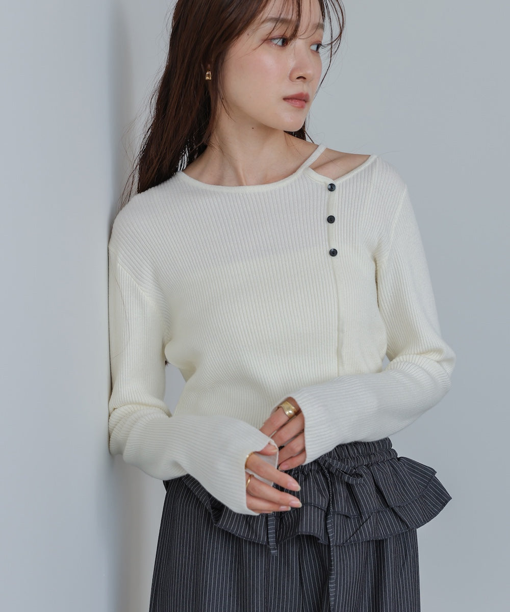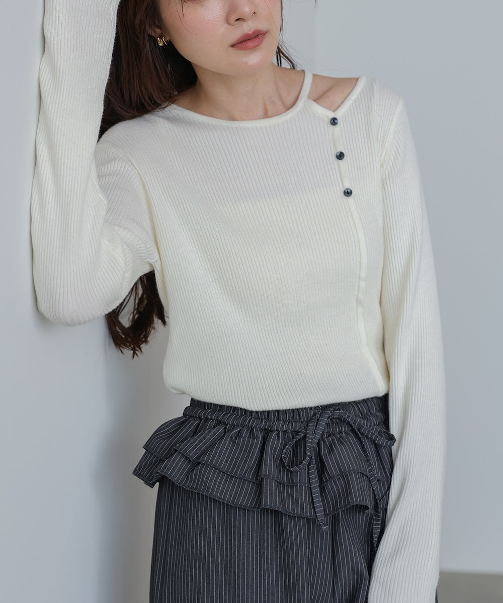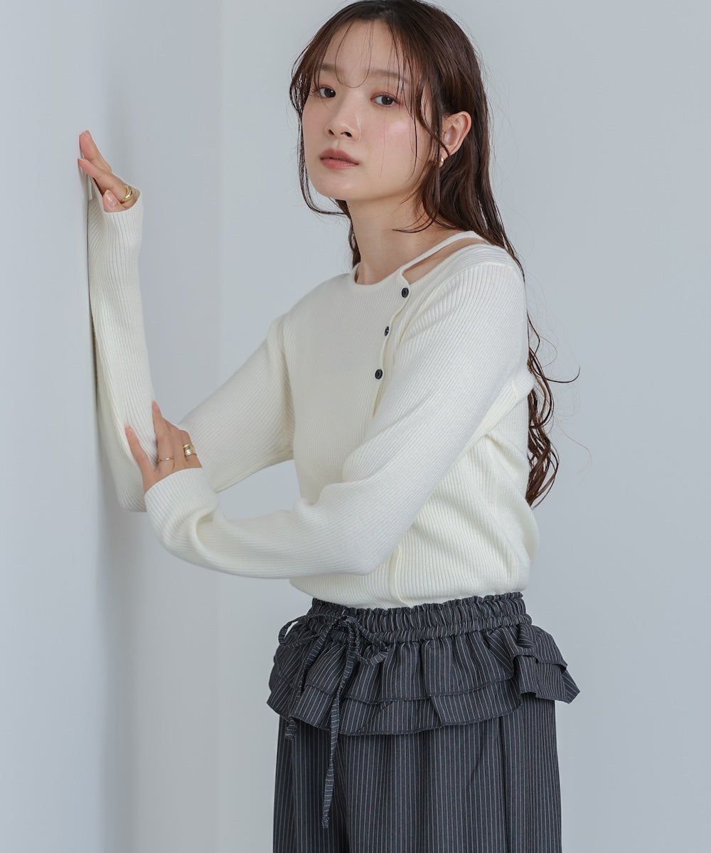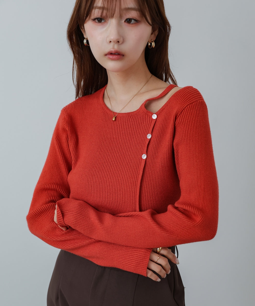 <JP> Shoulder Slit Button Knit Top* 3色入 <預購>