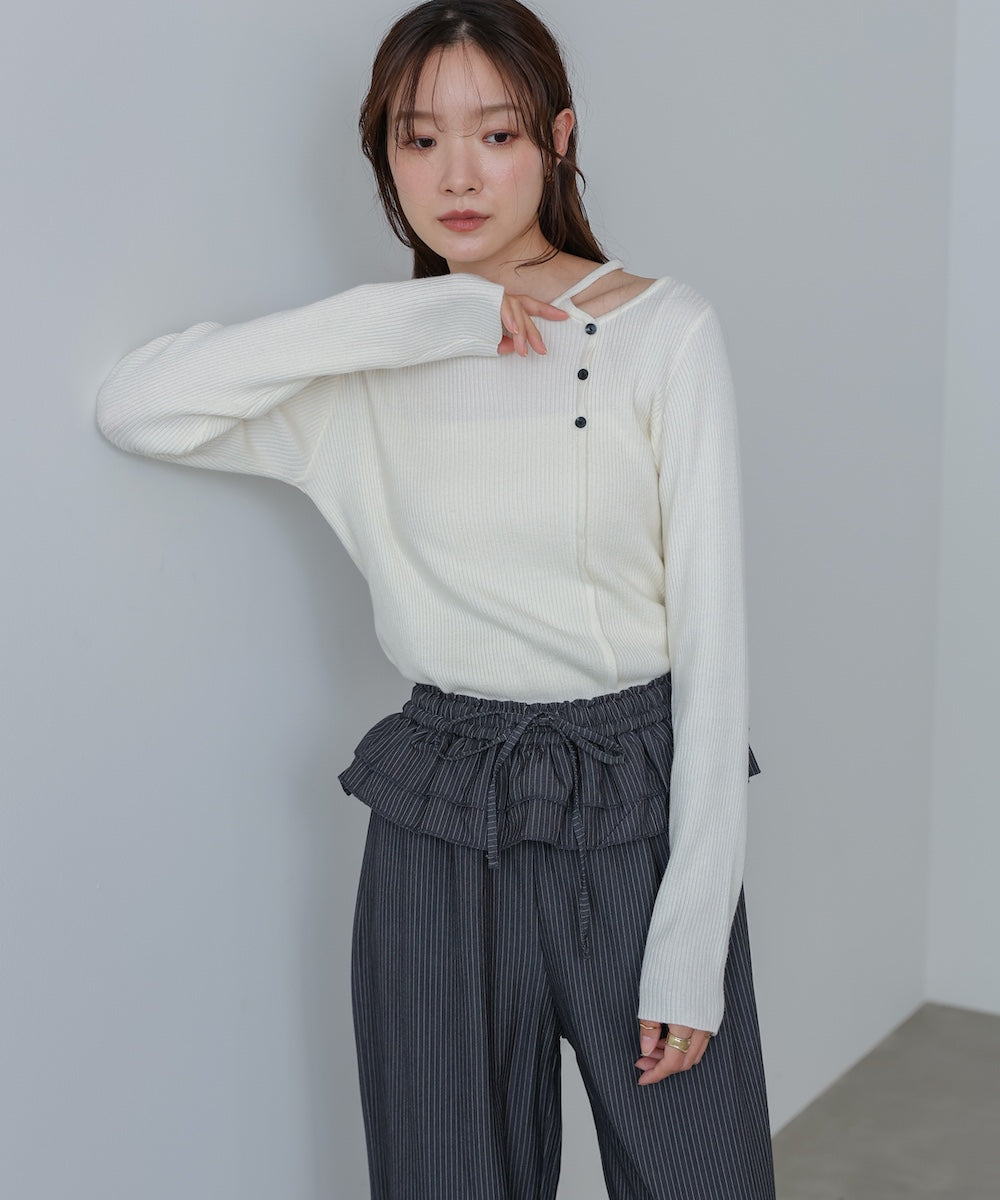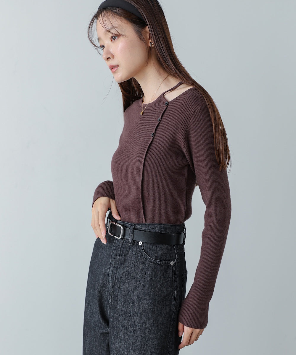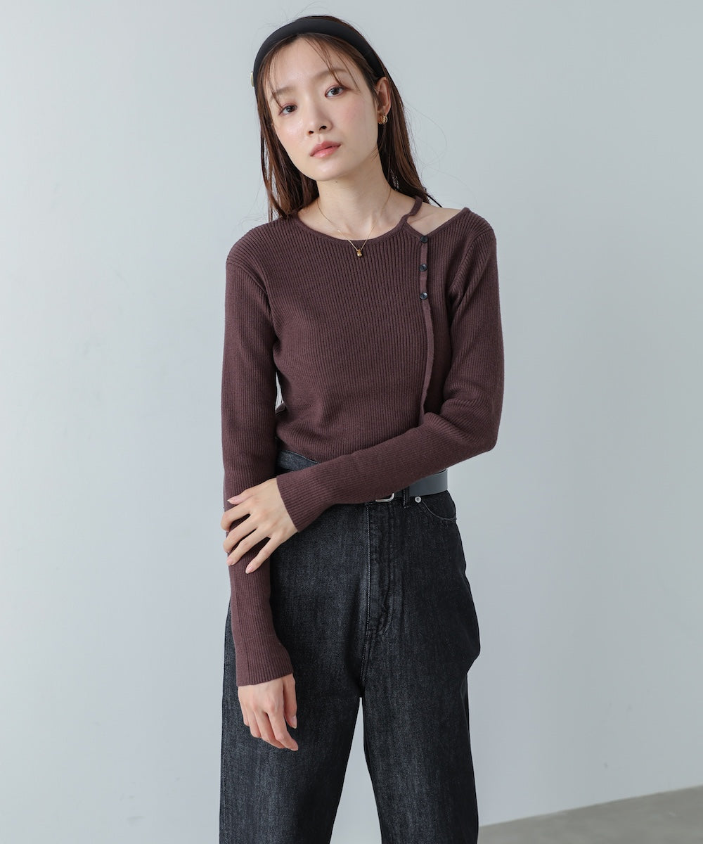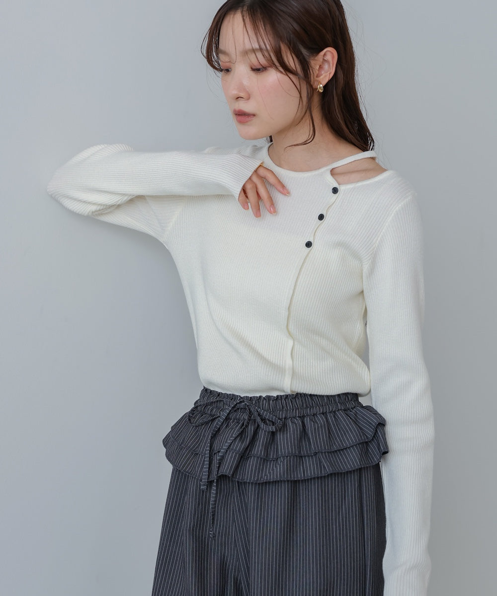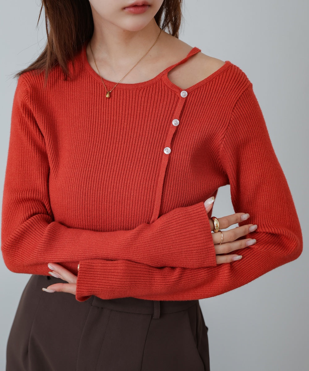 <JP> Shoulder Slit Button Knit Top* 3色入 <預購>