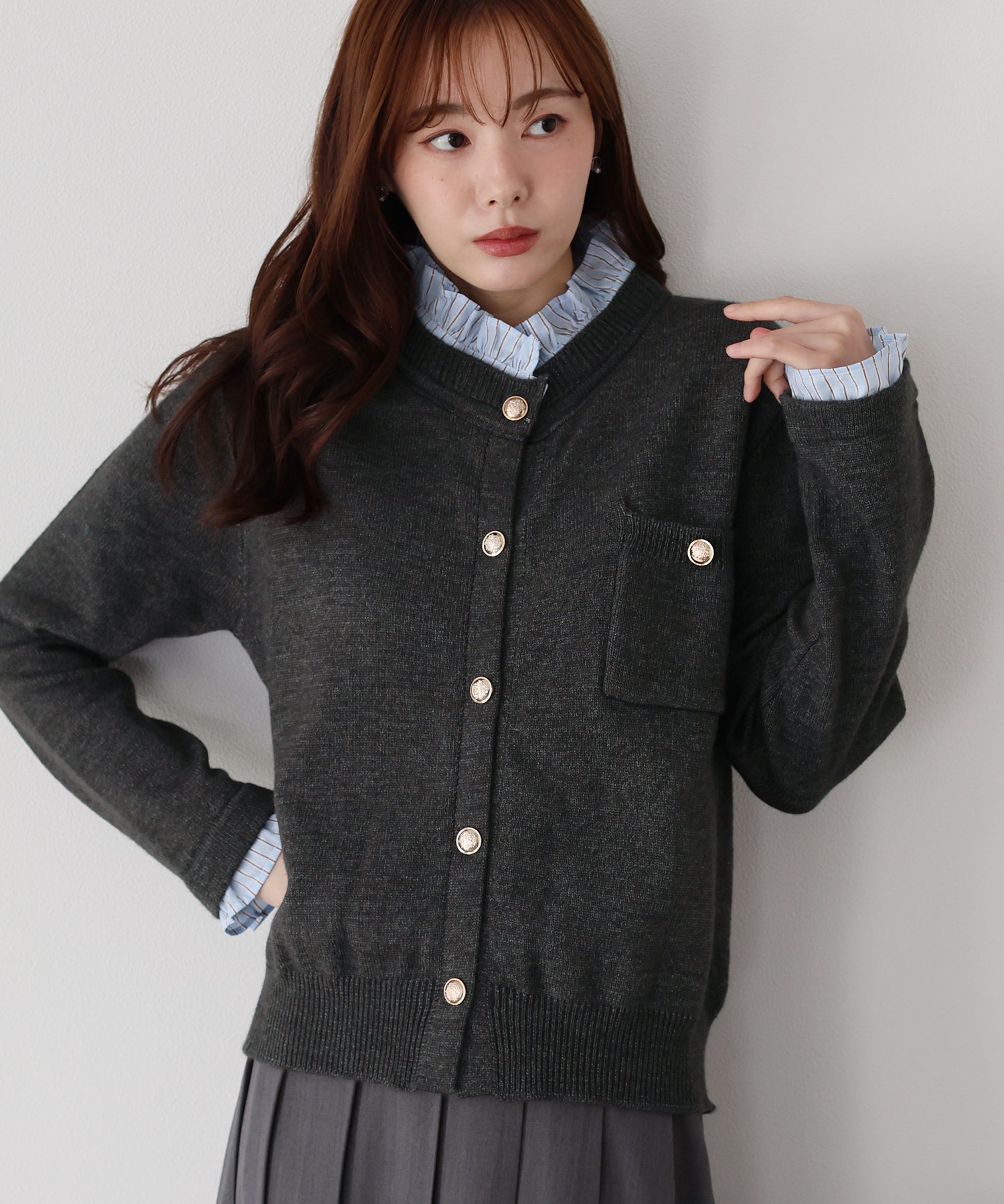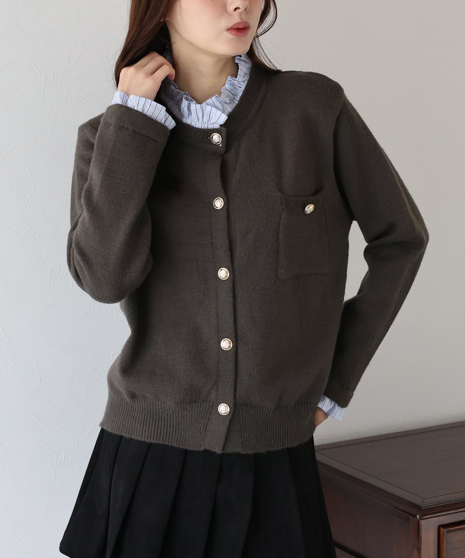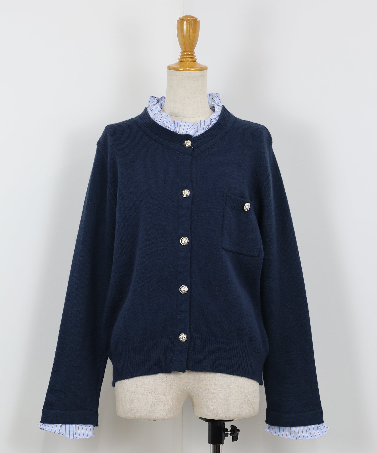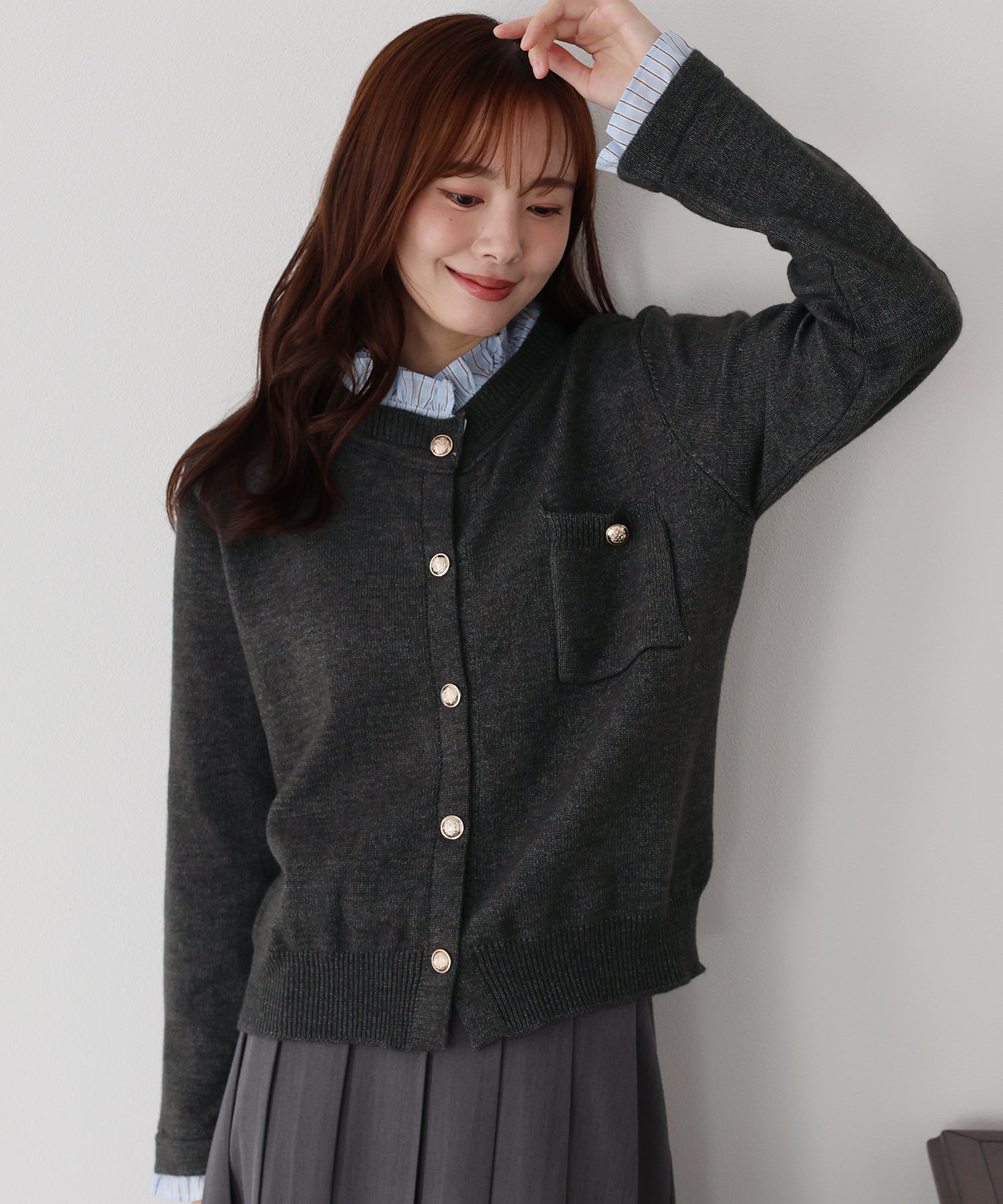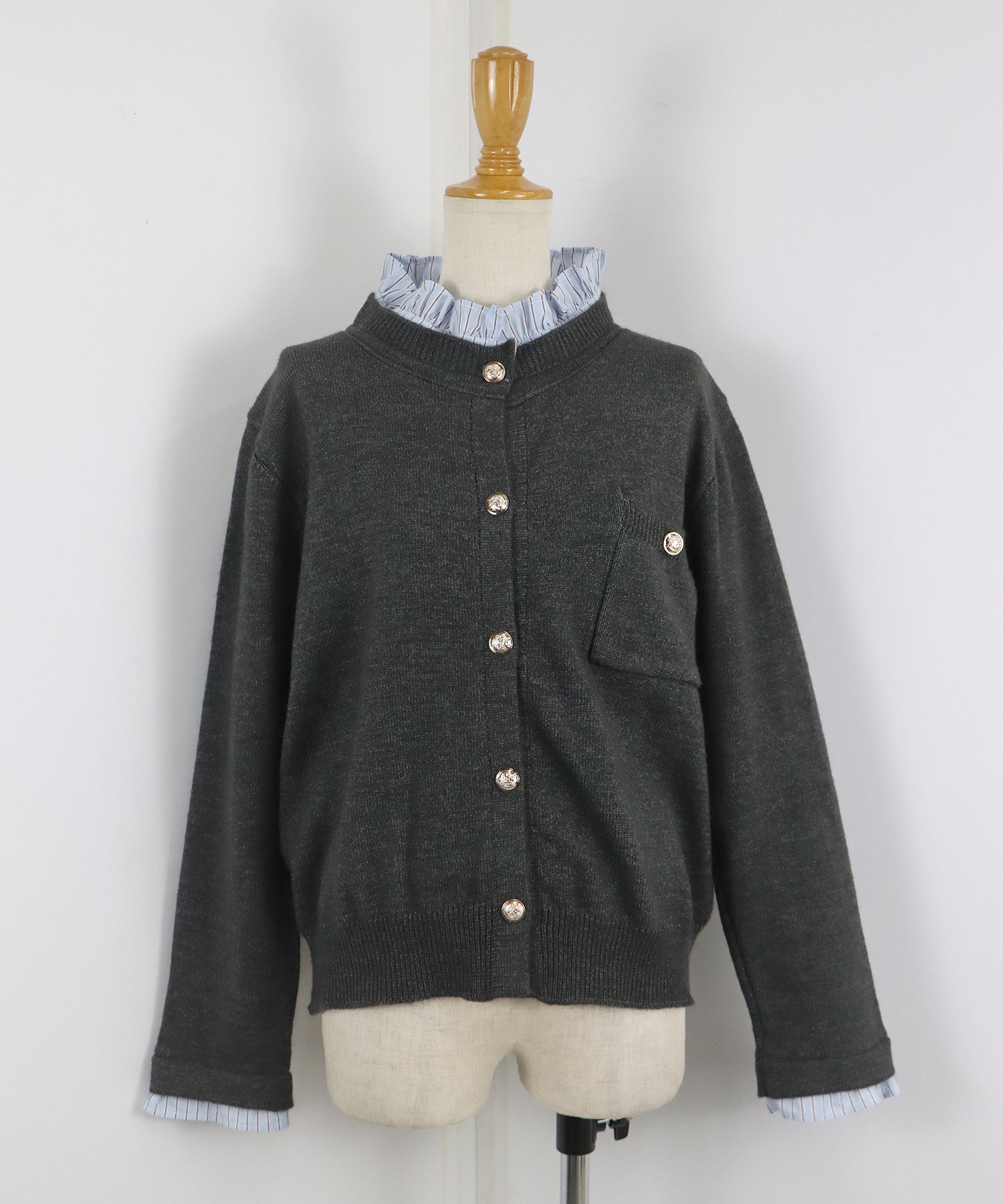 <日本團訂>預購一般於本團截單日起計約3-4週抵港♡ 請到 IG 查看本團截單日♡ 一件過就有搭配了兩件的效果 .ᐟ.ᐟ ⑅◡̈* 巧紗地穿出層次感~ ● 內層似是條紋裇衫 ● 領口與袖口均有條紋褶邊details ● 精緻的立體金鈕扣 ● 突顯了優雅簡潔的氣質 ● 上班式重要場合都好適合 ● 觸感柔軟舒適 𝖲𝗂𝗓𝖾 𝖽𝖾𝗍𝖺𝗂𝗅𝗌. 𝖲𝗁𝗈𝗎𝗅𝖽𝖾𝗋: 43.5𝖼𝗆 𝖢𝗁𝖾𝗌𝗍 𝗐𝗂𝖽𝗍𝗁: 55𝖼𝗆 𝖲𝗅𝖾𝖾𝗏𝖾: 59.5𝖼𝗆 𝖫𝖾𝗇𝗀𝗍𝗁: 61𝖼𝗆 Model’s tall: 167𝖼𝗆 Fabric. 42% acrylic, 30% polyester, 28% nylon 柔軟針織材質