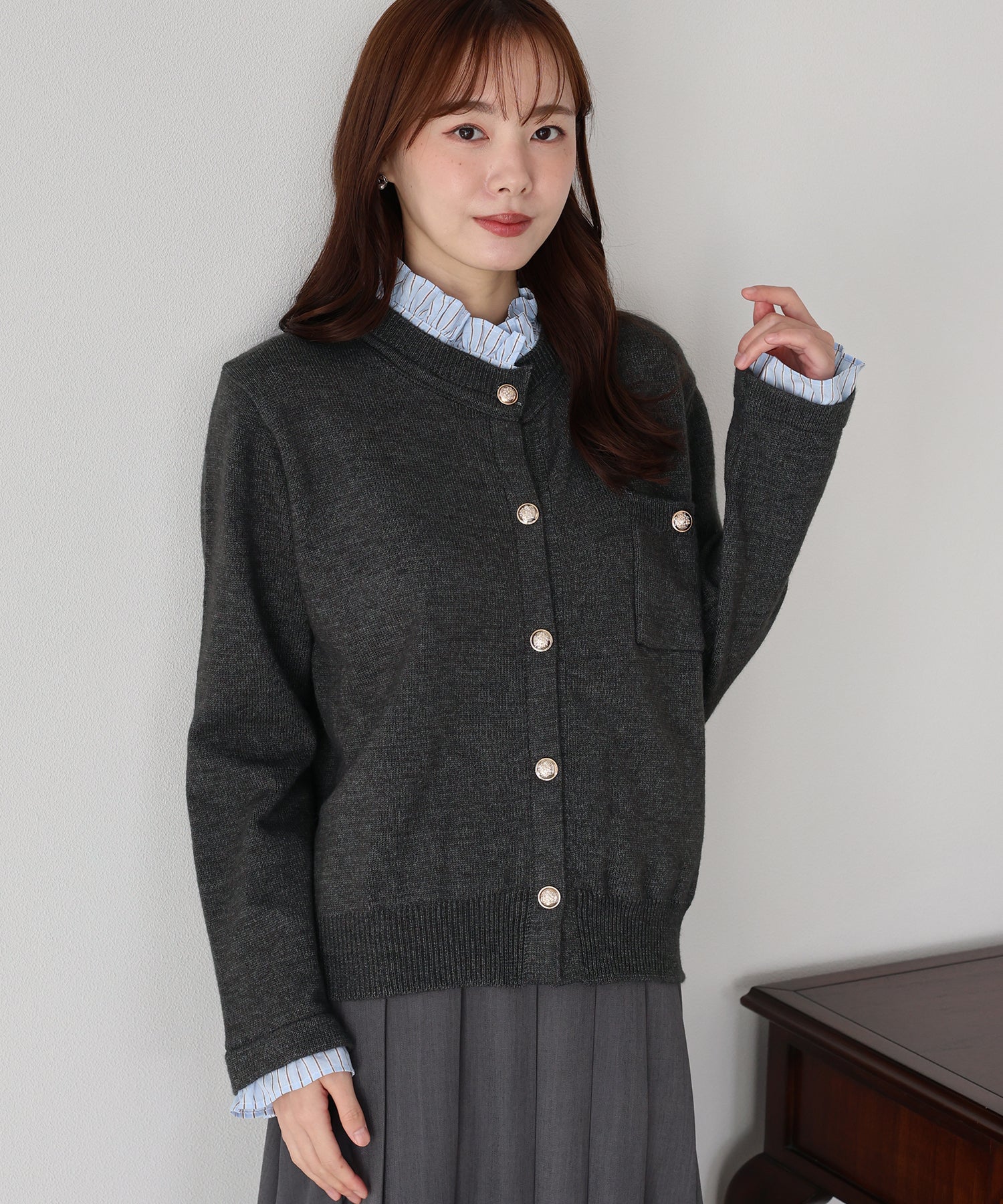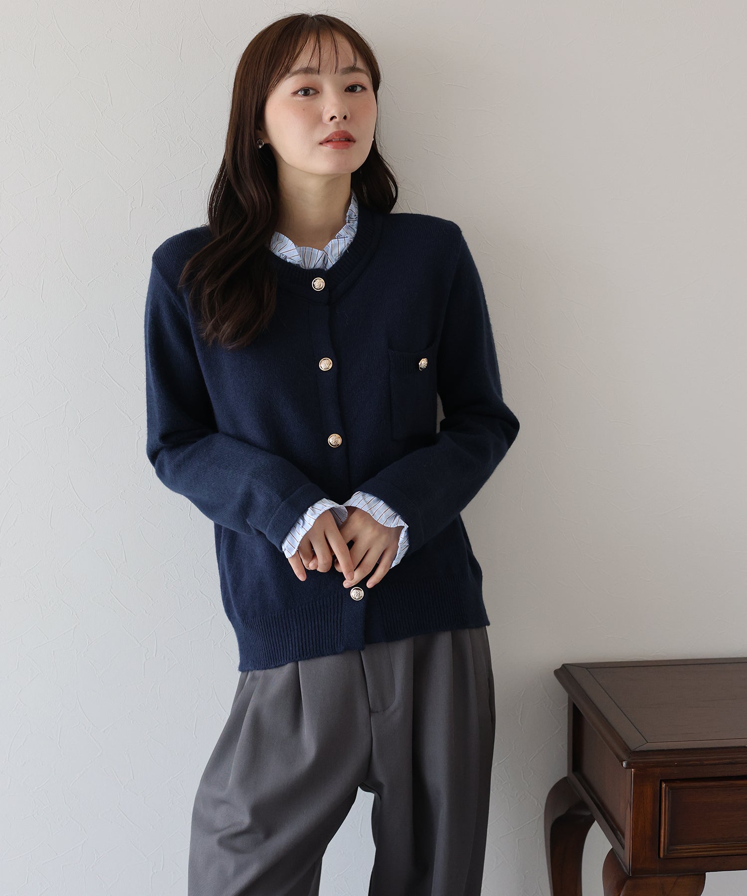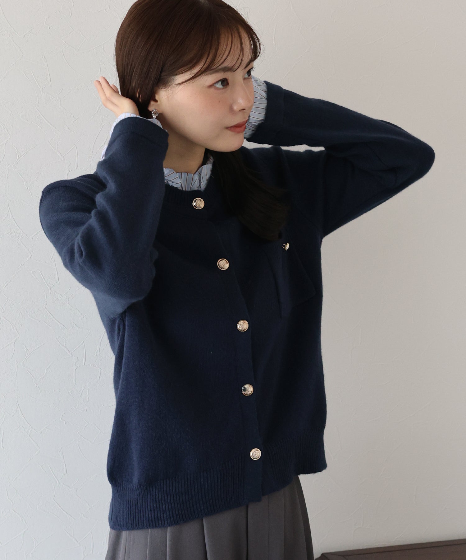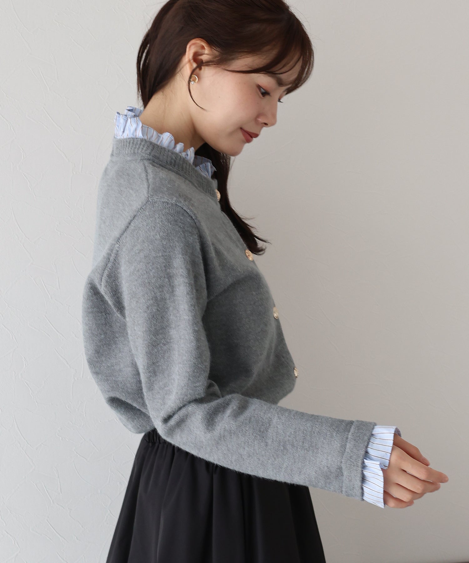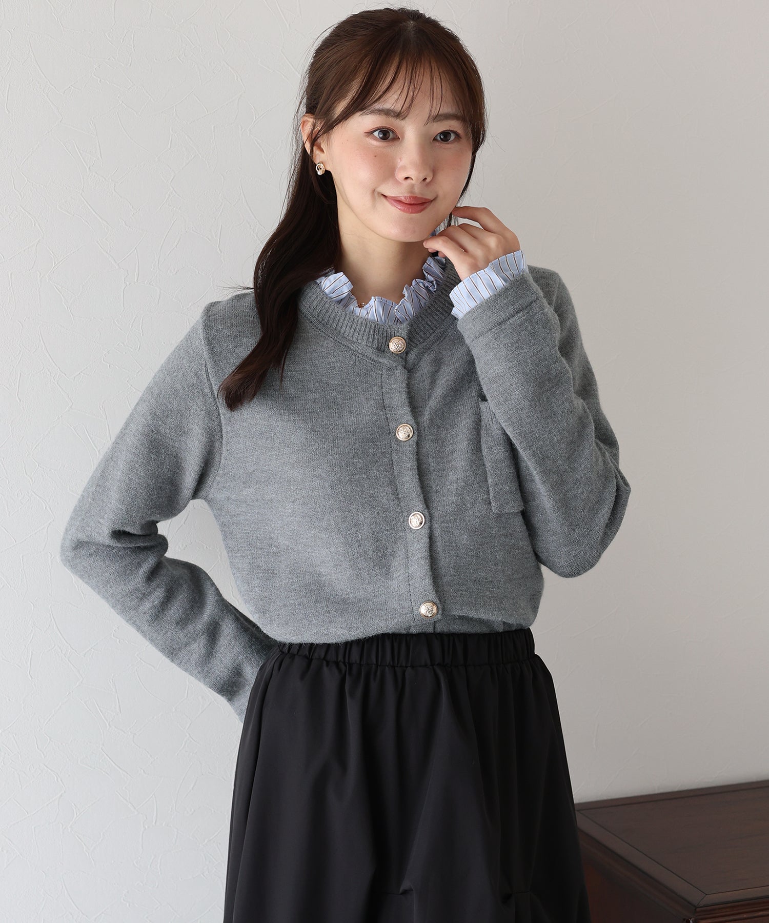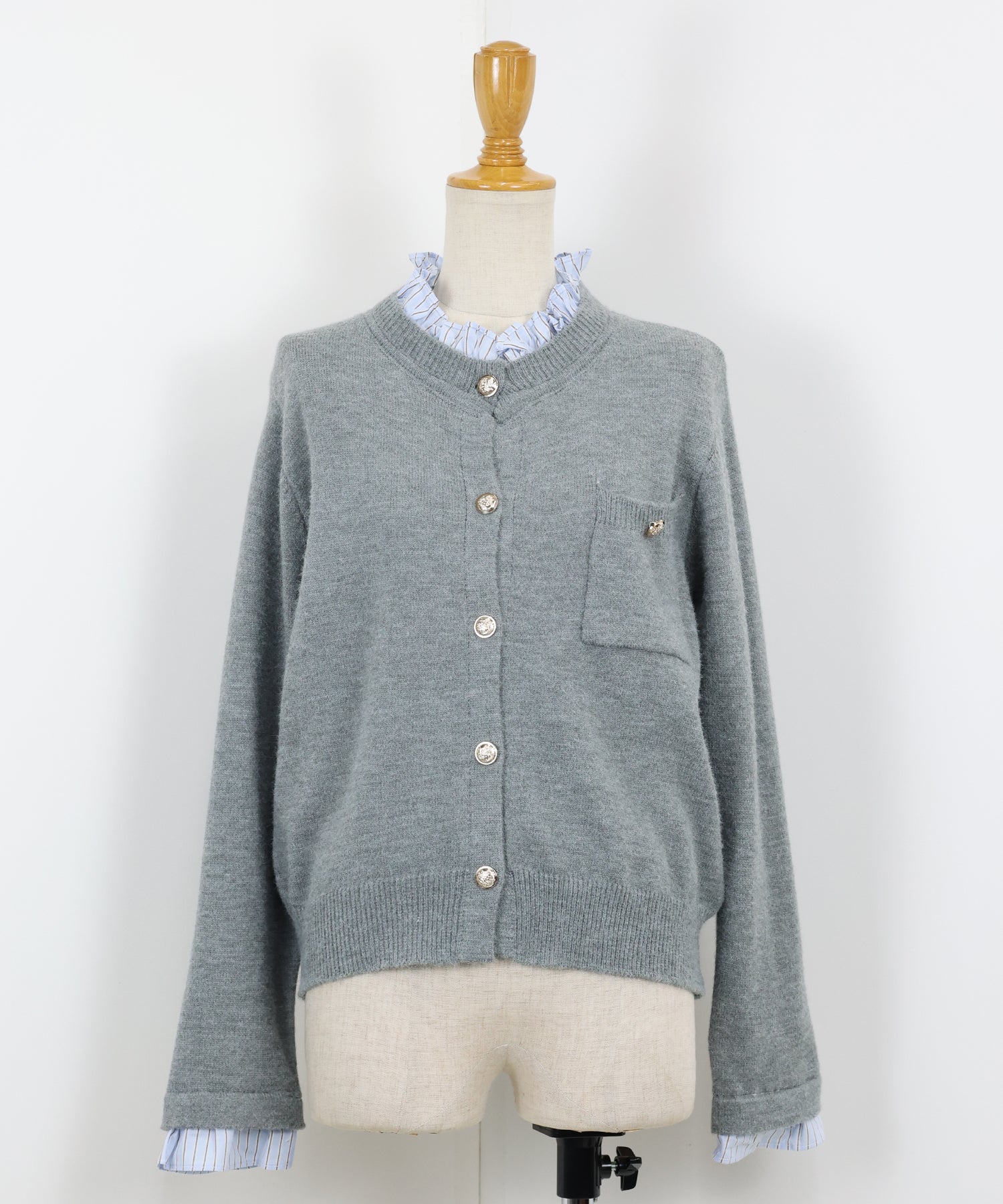 <日本團訂>預購一般於本團截單日起計約3-4週抵港♡ 請到 IG 查看本團截單日♡ 一件過就有搭配了兩件的效果 .ᐟ.ᐟ ⑅◡̈* 巧紗地穿出層次感~ ● 內層似是條紋裇衫 ● 領口與袖口均有條紋褶邊details ● 精緻的立體金鈕扣 ● 突顯了優雅簡潔的氣質 ● 上班式重要場合都好適合 ● 觸感柔軟舒適 𝖲𝗂𝗓𝖾 𝖽𝖾𝗍𝖺𝗂𝗅𝗌. 𝖲𝗁𝗈𝗎𝗅𝖽𝖾𝗋: 43.5𝖼𝗆 𝖢𝗁𝖾𝗌𝗍 𝗐𝗂𝖽𝗍𝗁: 55𝖼𝗆 𝖲𝗅𝖾𝖾𝗏𝖾: 59.5𝖼𝗆 𝖫𝖾𝗇𝗀𝗍𝗁: 61𝖼𝗆 Model’s tall: 167𝖼𝗆 Fabric. 42% acrylic, 30% polyester, 28% nylon 柔軟針織材質
