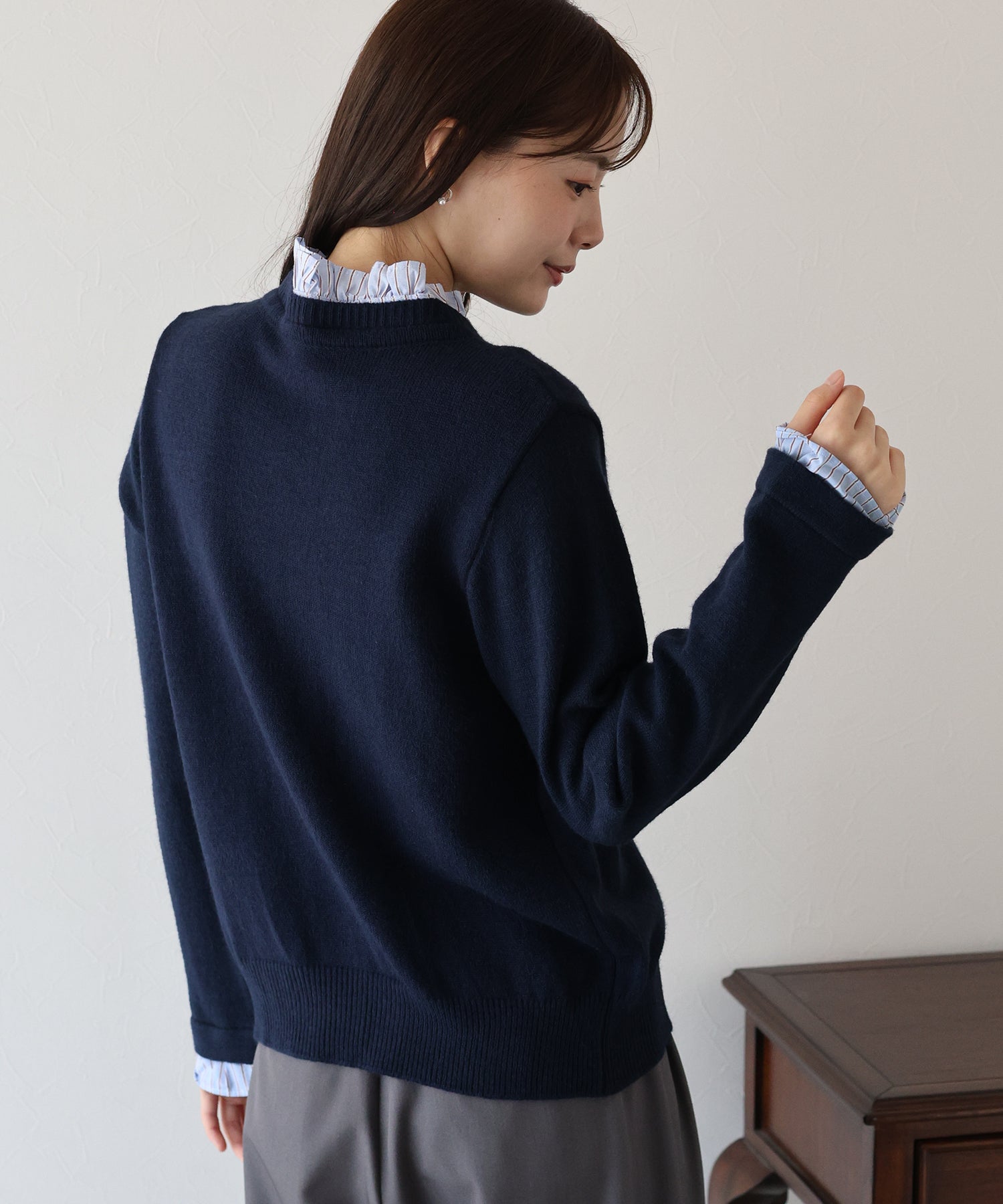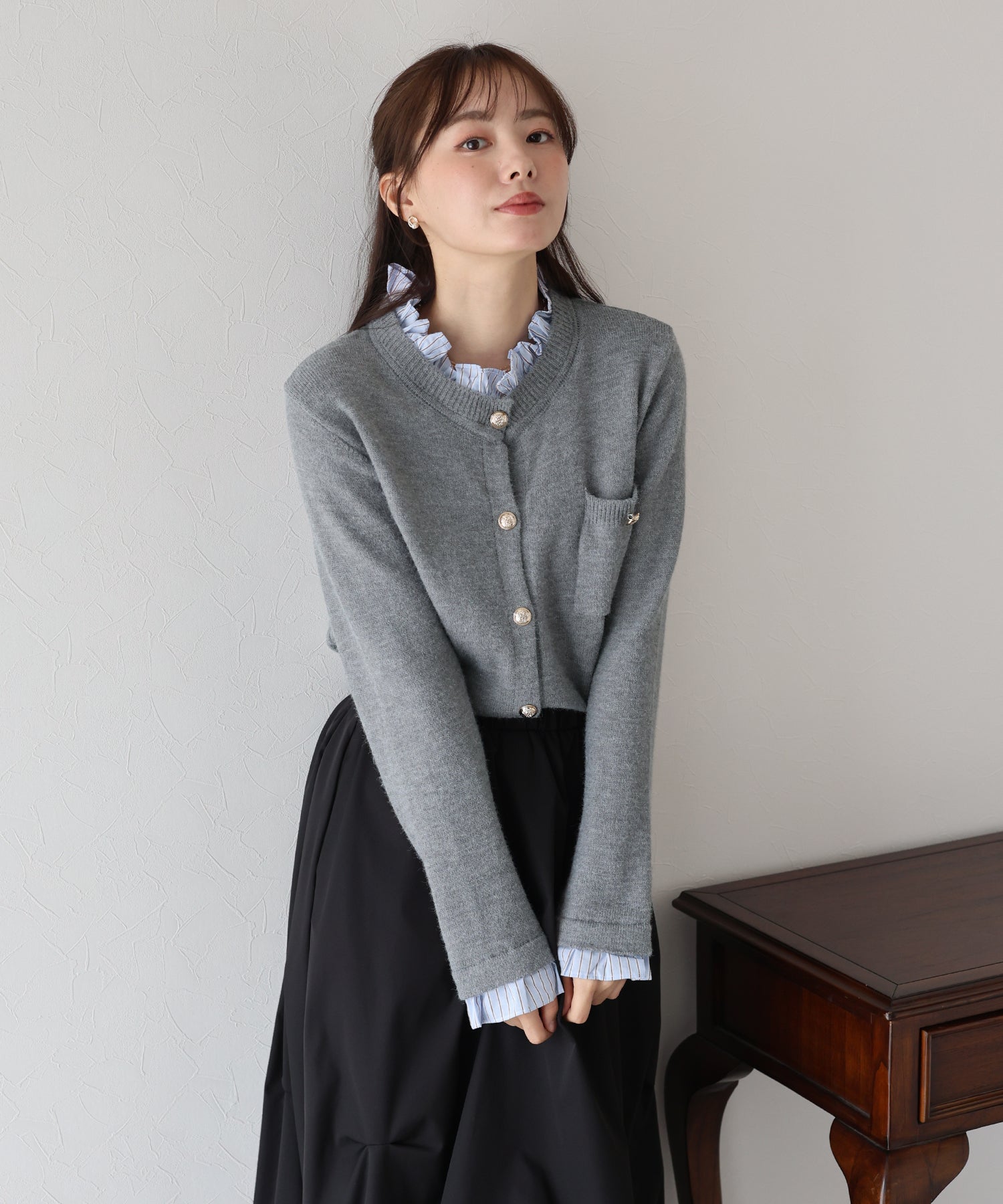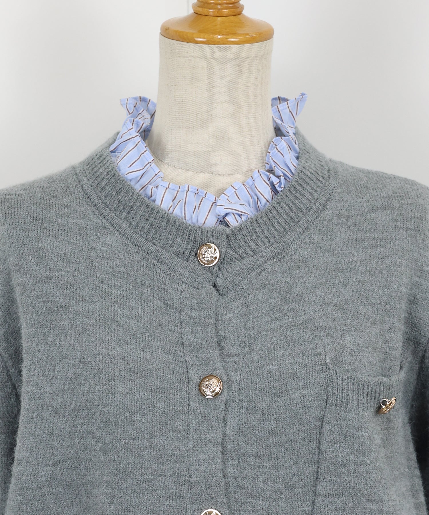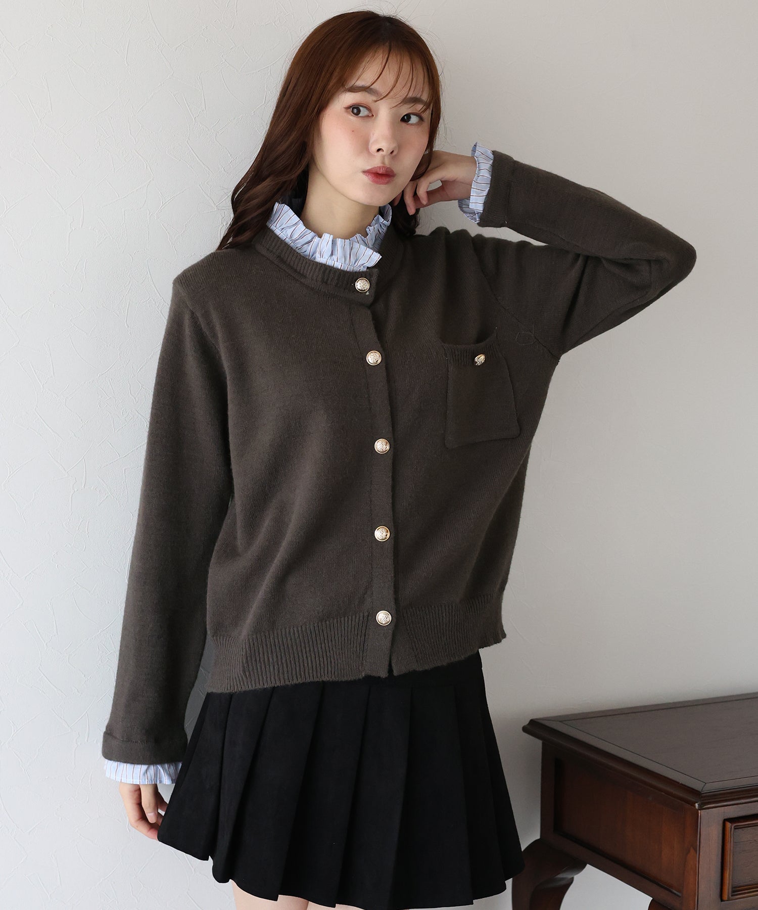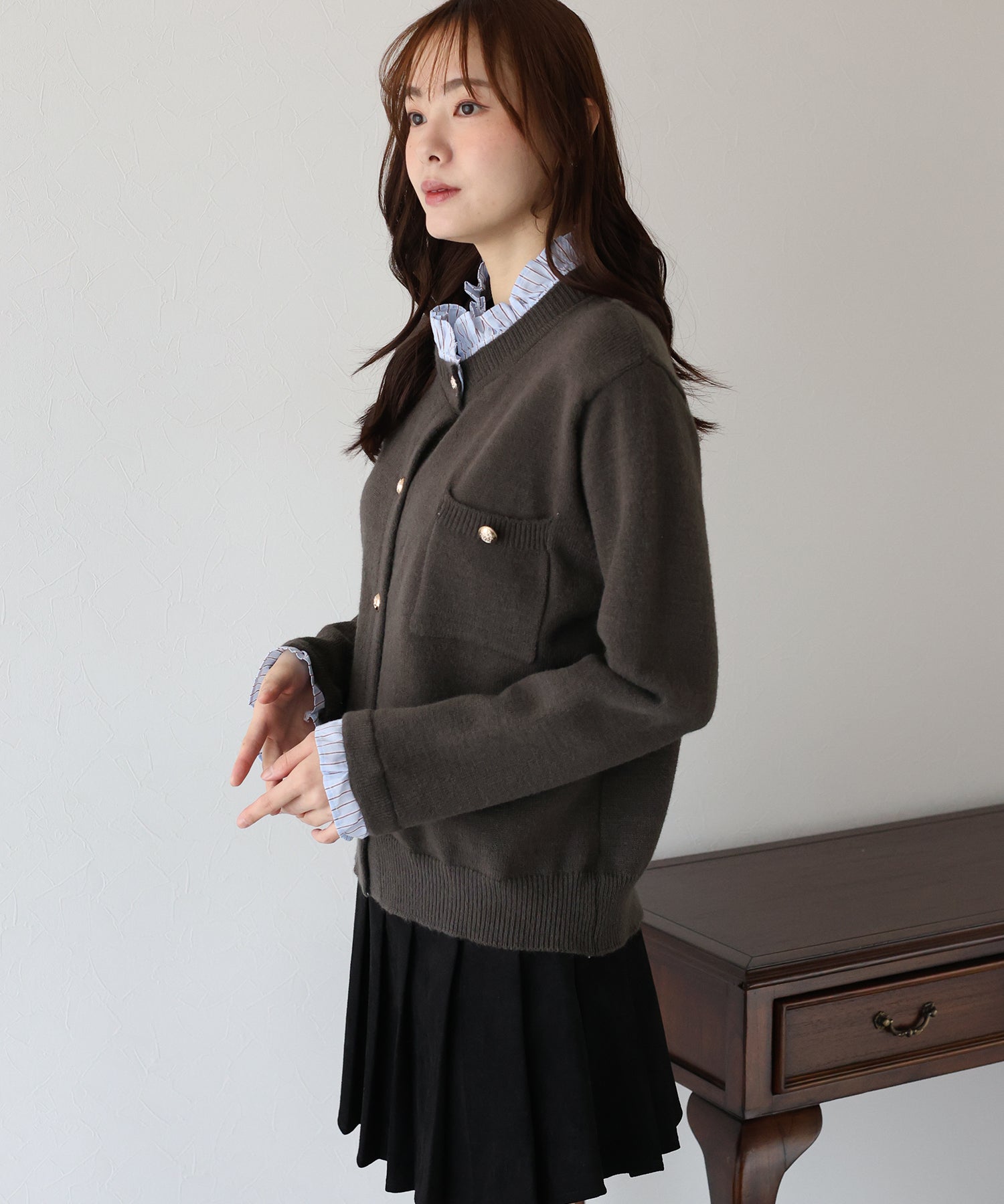 <日本團訂>預購一般於本團截單日起計約3-4週抵港♡ 請到 IG 查看本團截單日♡ 一件過就有搭配了兩件的效果 .ᐟ.ᐟ ⑅◡̈* 巧紗地穿出層次感~ ● 內層似是條紋裇衫 ● 領口與袖口均有條紋褶邊details ● 精緻的立體金鈕扣 ● 突顯了優雅簡潔的氣質 ● 上班式重要場合都好適合 ● 觸感柔軟舒適 𝖲𝗂𝗓𝖾 𝖽𝖾𝗍𝖺𝗂𝗅𝗌. 𝖲𝗁𝗈𝗎𝗅𝖽𝖾𝗋: 43.5𝖼𝗆 𝖢𝗁𝖾𝗌𝗍 𝗐𝗂𝖽𝗍𝗁: 55𝖼𝗆 𝖲𝗅𝖾𝖾𝗏𝖾: 59.5𝖼𝗆 𝖫𝖾𝗇𝗀𝗍𝗁: 61𝖼𝗆 Model’s tall: 167𝖼𝗆 Fabric. 42% acrylic, 30% polyester, 28% nylon 柔軟針織材質