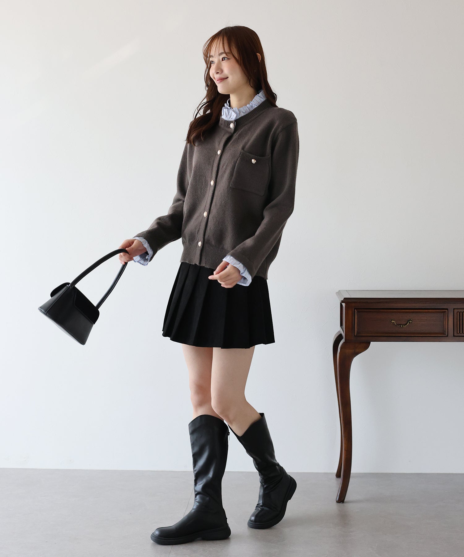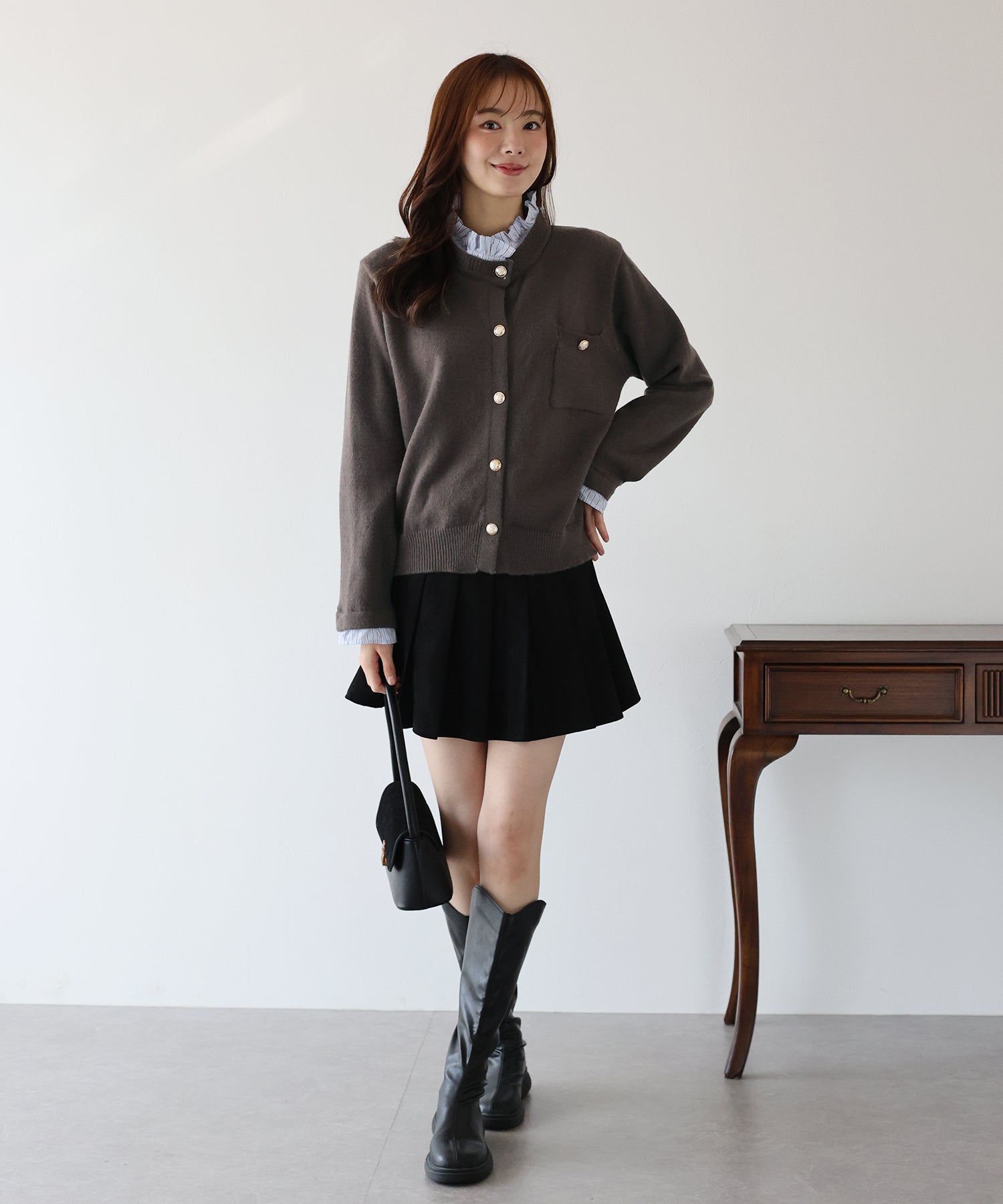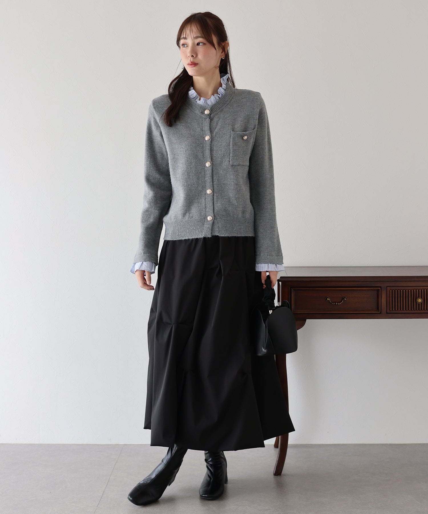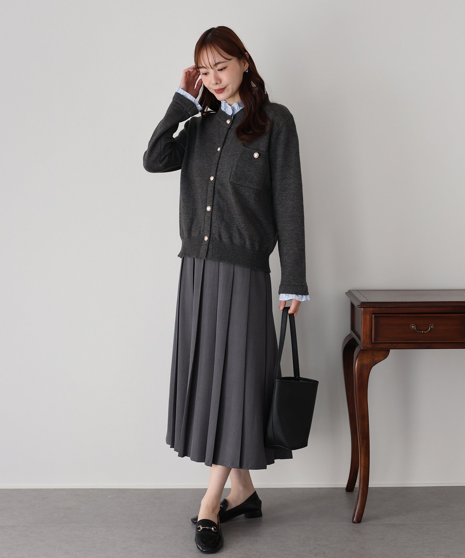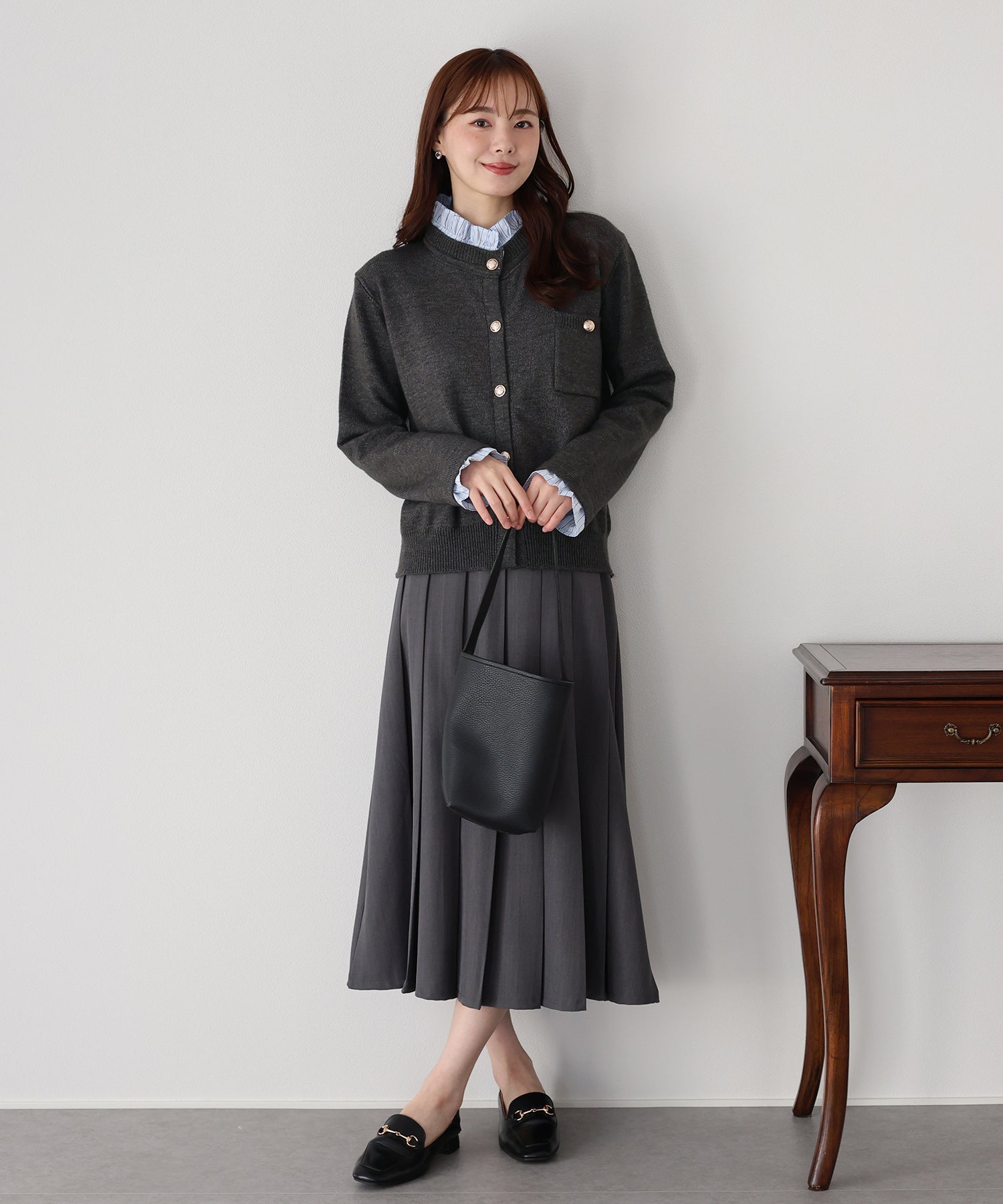 <日本團訂>預購一般於本團截單日起計約3-4週抵港♡ 請到 IG 查看本團截單日♡ 一件過就有搭配了兩件的效果 .ᐟ.ᐟ ⑅◡̈* 巧紗地穿出層次感~ ● 內層似是條紋裇衫 ● 領口與袖口均有條紋褶邊details ● 精緻的立體金鈕扣 ● 突顯了優雅簡潔的氣質 ● 上班式重要場合都好適合 ● 觸感柔軟舒適 𝖲𝗂𝗓𝖾 𝖽𝖾𝗍𝖺𝗂𝗅𝗌. 𝖲𝗁𝗈𝗎𝗅𝖽𝖾𝗋: 43.5𝖼𝗆 𝖢𝗁𝖾𝗌𝗍 𝗐𝗂𝖽𝗍𝗁: 55𝖼𝗆 𝖲𝗅𝖾𝖾𝗏𝖾: 59.5𝖼𝗆 𝖫𝖾𝗇𝗀𝗍𝗁: 61𝖼𝗆 Model’s tall: 167𝖼𝗆 Fabric. 42% acrylic, 30% polyester, 28% nylon 柔軟針織材質